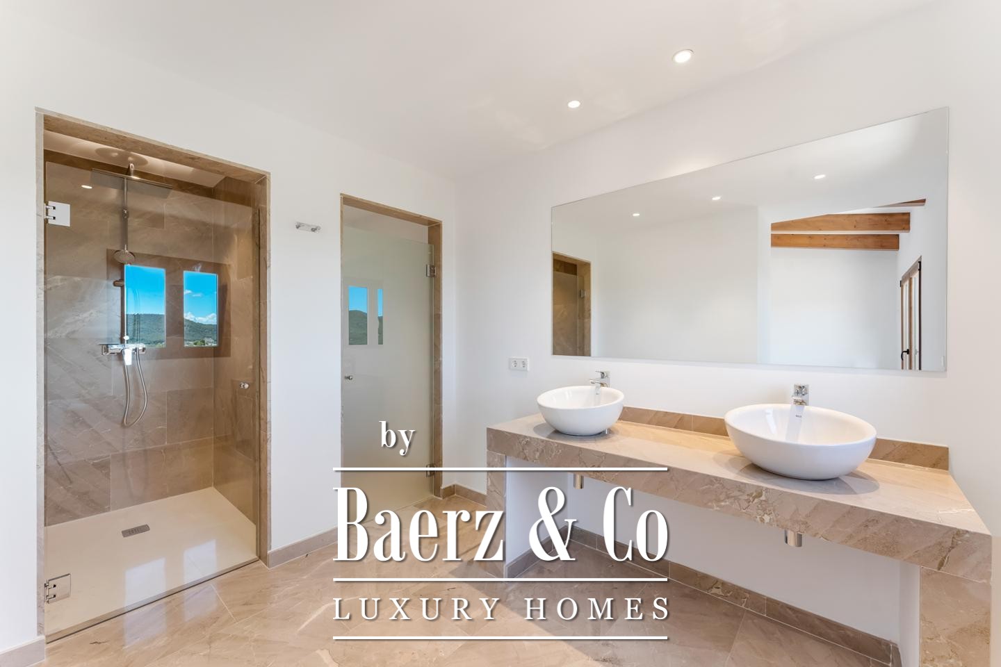 Designed for contemporary living, the 565 m² home presents four generous bedrooms, each with its own bathroom, complemented by an adaptable second living room and an open kitchen that unites seamlessly with living and dining areas. Underfloor heating, full air conditioning, and central heating maintain perfect conditions throughout the seasons. Expansive terraces invite daily life outdoors, while a large pool and gardens frame the dramatic landscape. There is scope to expand to a fifth bedroom, or create bespoke amenities such as a guest apartment, wellness suite, or private cinema.