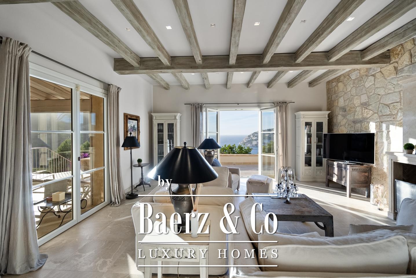 The private quarters provide five bedrooms and five bathrooms, including a vaulted master suite with exposed beams and a secluded balcony. A guest flat in the basement, gym, sauna, and generous storage reflect thoughtful luxury. The garage accommodates two cars, completing this villa in Port d'Andratx. Just moments from the harbour promenade, boutiques, and the Yacht Club, this property is a statement of rare discretion and location. For those seeking a luxury villa for sale in Port d'Andratx, every detail confirms resolute quality, privacy, and Mediterranean sophistication.