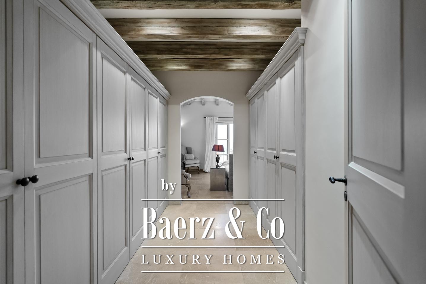 The main floor brings together a luminous living area, a kitchen with pantry, and a formal dining room, all opening onto terraces that seamlessly blend indoor and outdoor experience. From here, one steps into Mediterranean gardens enveloping a pool and entertaining terrace with barbecue. Subtle details such as underfloor heating, air conditioning, central heating, and solar panels ensure effortless comfort. An elevator links all floors for considered convenience.