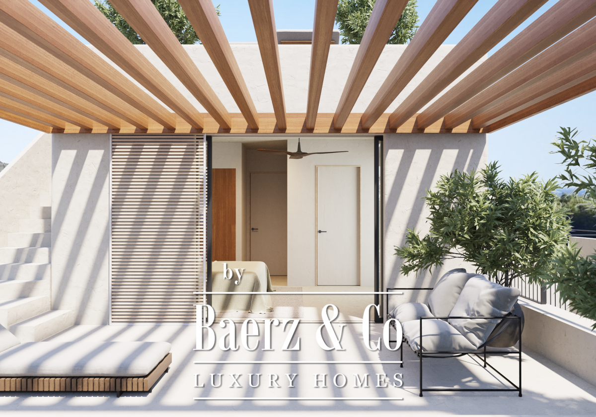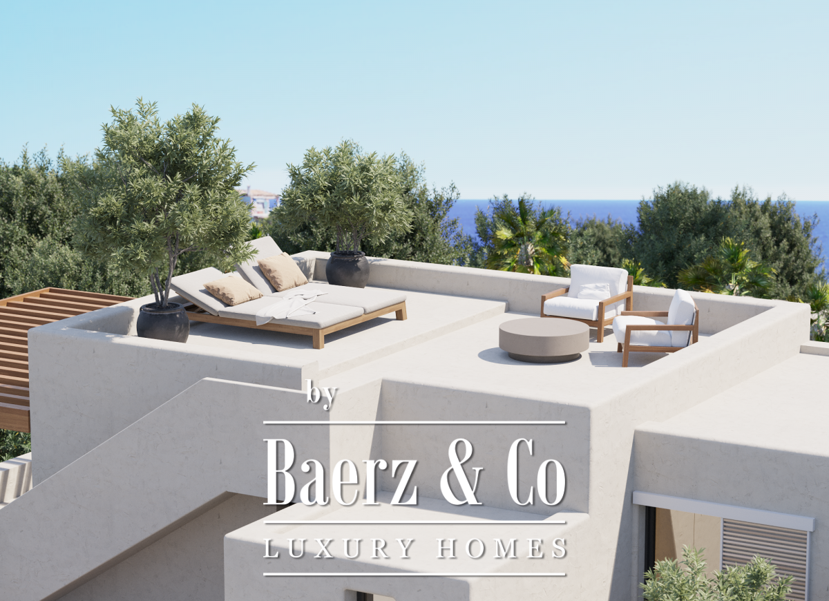 Step outside to private gardens and your own pool, a setting shaped for family gatherings, alfresco meals, and quiet relaxation. The ground-level terrace and a rooftop vantage point offer a shifting panorama from garden tranquility to sweeping sea views—an ideal backdrop for mornings of meditation or intimate evenings. Each bedroom reveals private terrace access, balancing privacy with the openness that defines the Ibizan lifestyle.