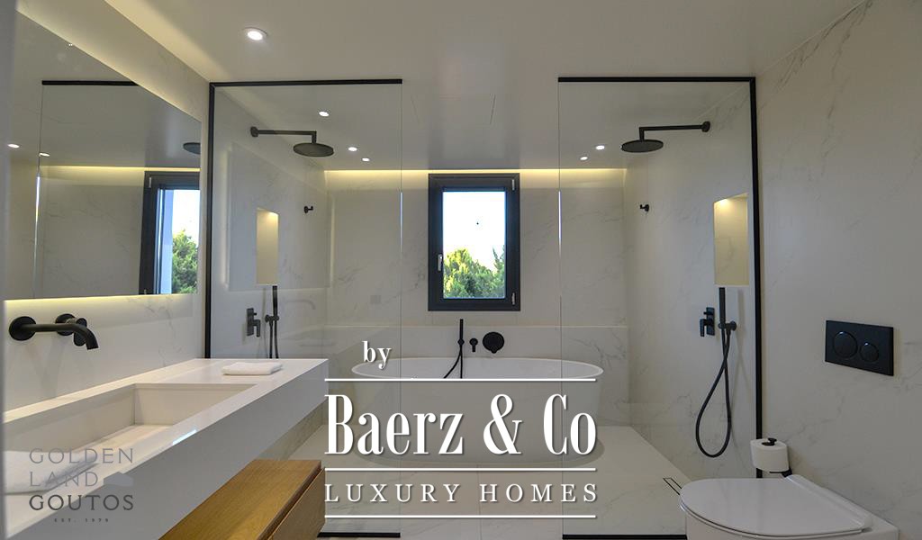 Villa Aerial stands as a testament to exceptional architecture and luxurious living nestled in the prestigious enclave of Petrothalassa. This newly built villa, surrounded by an array of exquisite new residences, commands breathtaking views of the seaway stretching between the enchanting islands of Spetses and Hydra. From every upper bedroom, one can indulge in the serene pillow views of the sparkling sea, making each morning a poetic experience. Architectural Elegance and Superior Craftsmanship Villa Aerial is constructed with an unwavering commitment to quality, featuring interiors adorned with wooden roofs and floors paved with grand, aged marble slabs. These elements coalesce to create an ambiance of timeless elegance, seamlessly blending traditional charm with contemporary sophistication. Each room is a sanctuary, designed to provide comfort and style in equal measure. Enchanting Outdoor Retreats The outdoor spaces of Villa Aerial are as captivating as its interiors. Imposing patios provide expansive areas for both