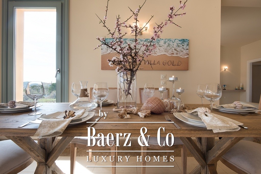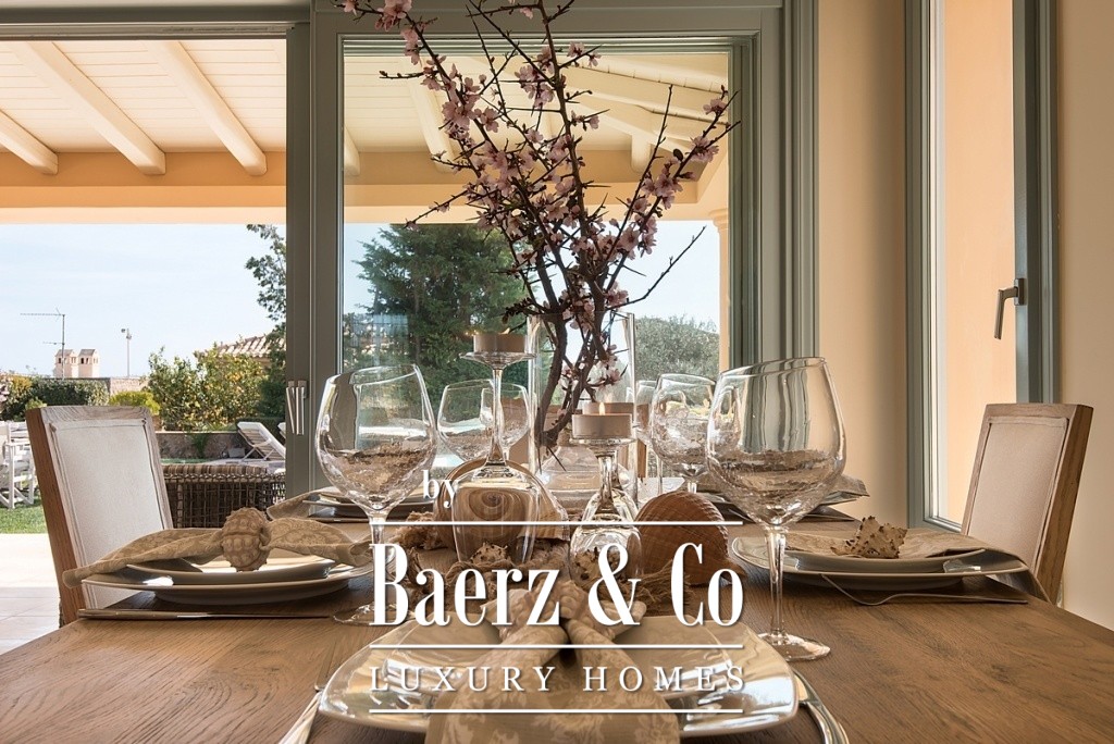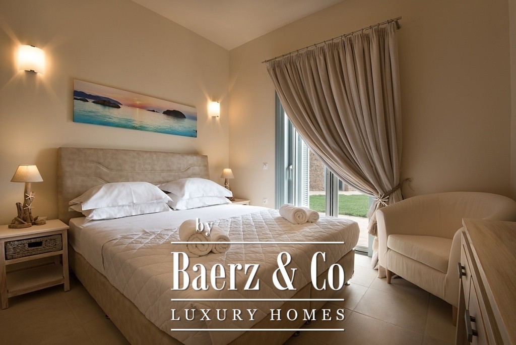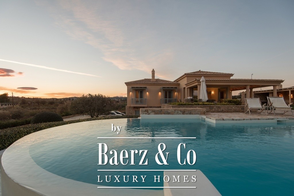 sea view, a shaded relaxation spot with sofas, ideal for enjoying the magical sunset, a lounge covered with a pergola and a bar. During the day, the large covered barbecue next to the outdoor dining and sitting area, can accommodate many guests for traditional Greek dinners. Outside we also find a private parking space and, of course, the perfectly landscaped garden. The pool area has been designed so that guests can host luxurious parties and galas. This villa stands out for its elegance and offers exceptional comfort even to the most demanding guests. This is an excellent retreat, both for families and groups of friends looking for a beautifully decorated estate in Porto Heli. It is conveniently located just a few minutes drive from the town of Portoheli with all the necessary holiday facilities such as shops, restaurants, pharmacies, bakeries, banks, supermarkets etc. It is also easily accessible from the cosmopolitan island of Spetses (5 minutes by water taxi) and very close to the picturesque island of Hydra with its peculiar architecture (30 minutes by water taxi). Other worthy nearby destinations are the ancient amphitheater of Epidaurus at 58 km and the historic city of Nafplion at 80 km.