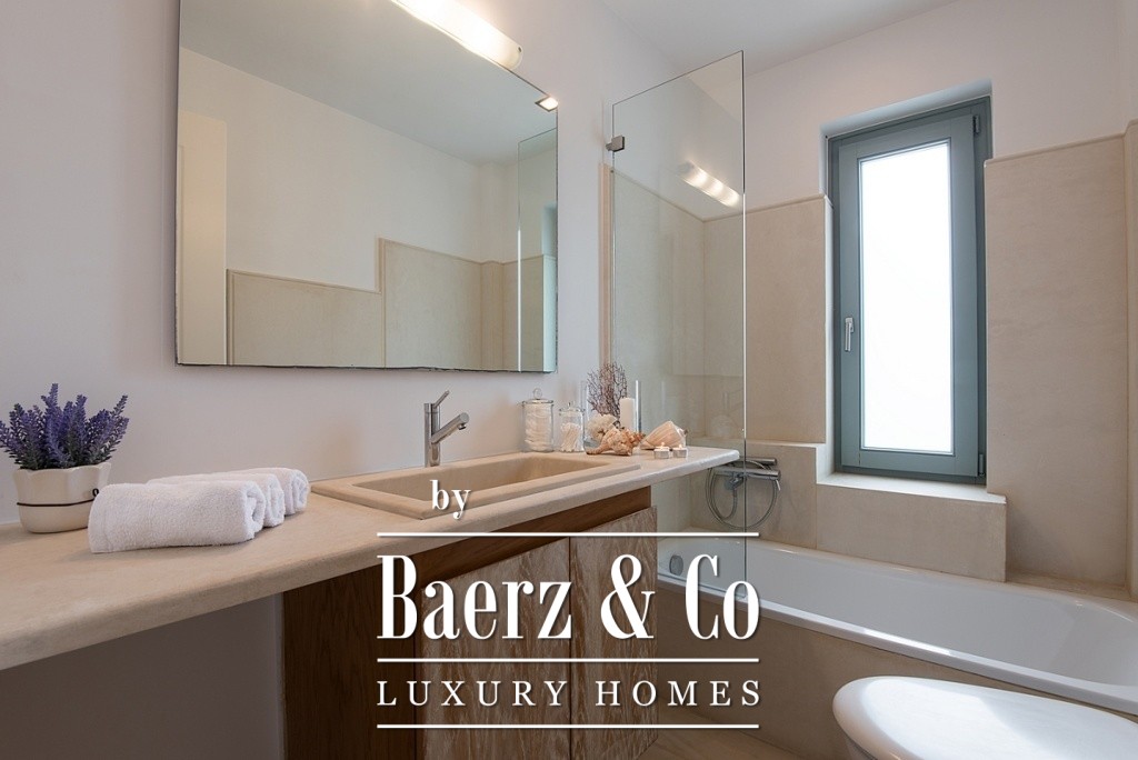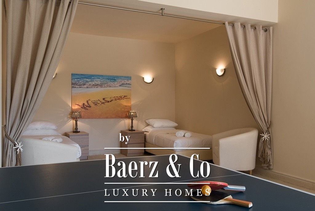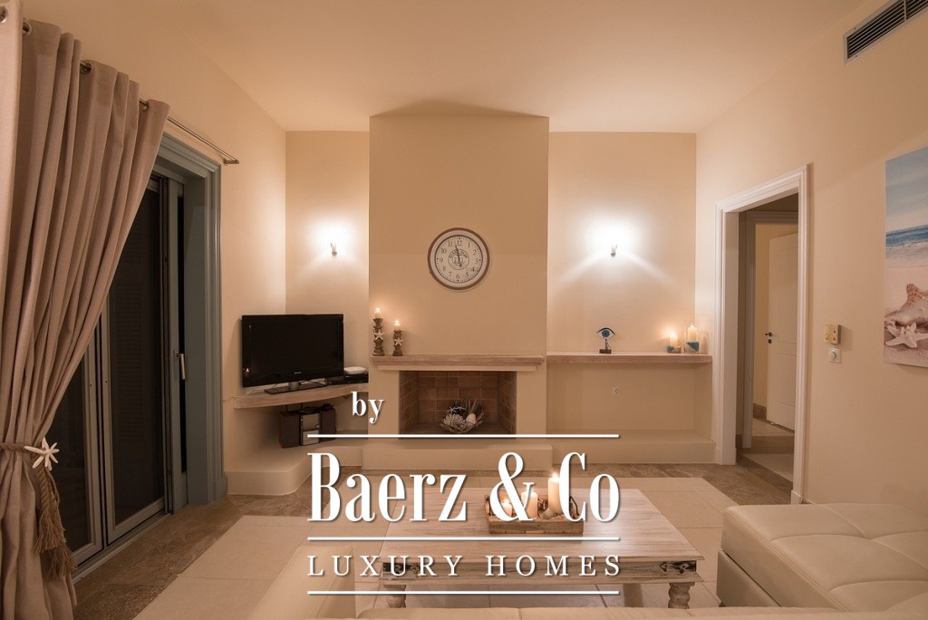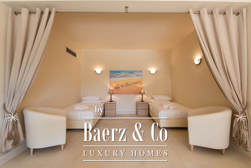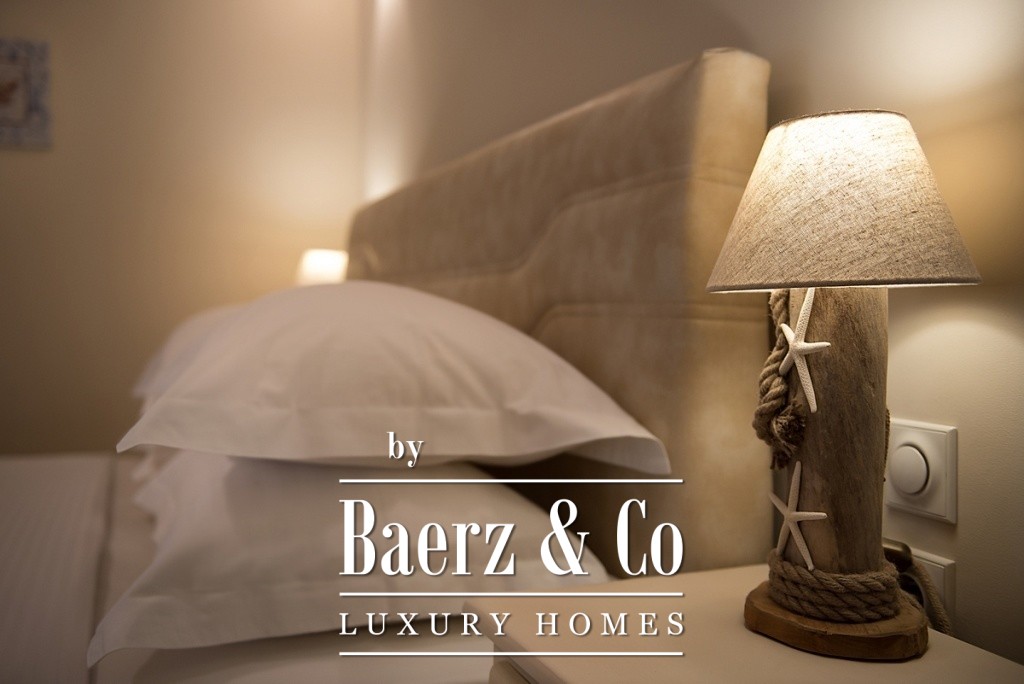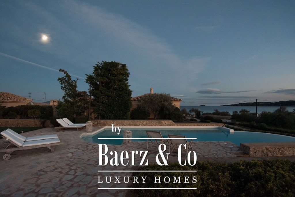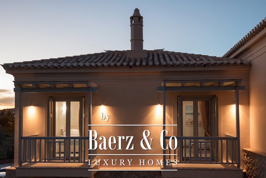This marvelous villa is located on a wonderful plot of 2000 m2, right on the beach of Petrothalassa, with a wonderful view of the sea and the picturesque island of Hydra. The villa is divided into two levels: The upper level consists of a spacious living room and dining room with a fireplace, from where we can enjoy the open sea view. Here, we also find a fully equipped kitchen, a discreet guest w.c, a master bedroom with a private bathroom with a bathtub and a large private terrace of 50 sq.m., where you can enjoy your morning coffee gazing at the calm, emerald waters of the sea. The lower level offers two double bedrooms with en suite bathroom with a bathtub and direct access to the garden, a playroom, a w.c, laundry room, a twin bedroom and an independent guest house, consisting of a double bedroom with its own bathroom and a fully equipped kitchen. The villa has been furnished with great attention to detail and in a way that best highlights the beauty of its design. The interior is very spacious and airy with plenty of light from the large windows. You can also enjoy a sea view from any point of the villa. The spacious outdoor area offers a 55 sq.m. infinity pool. with sunbeds and umbrellas with a stunning