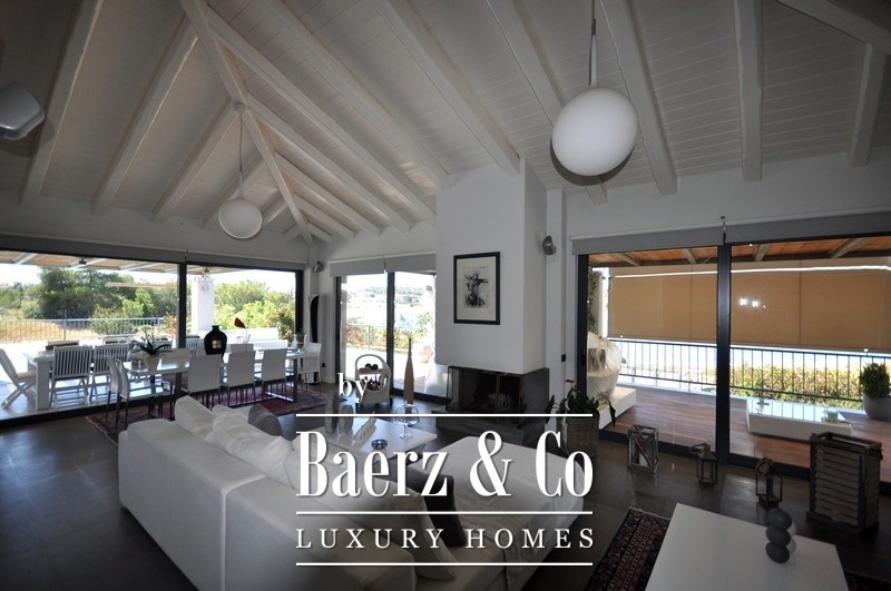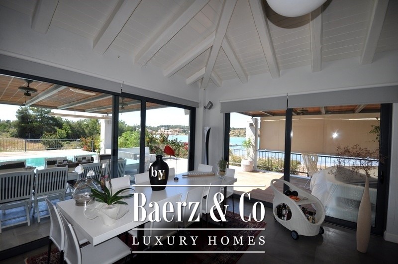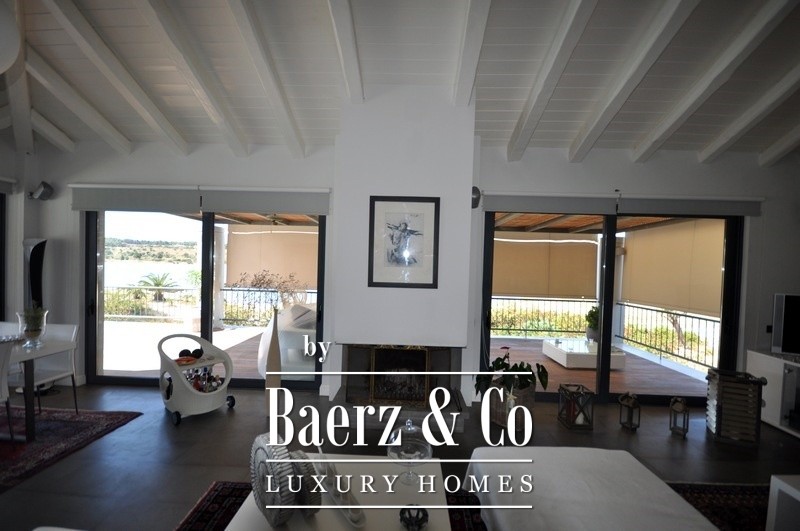 A seafront independent, luxurious house of 292 sq.m, in a 1,500 sq.m owned plot, is available for sale. The ground floor of 196 sq.m has three bedrooms with two bathrooms, a playroom and large windows with direct access to the garden. The first floor of 96 sq.m consists of a spacious living room, a dining room, a kitchen and a w.c. The garden is surrounded