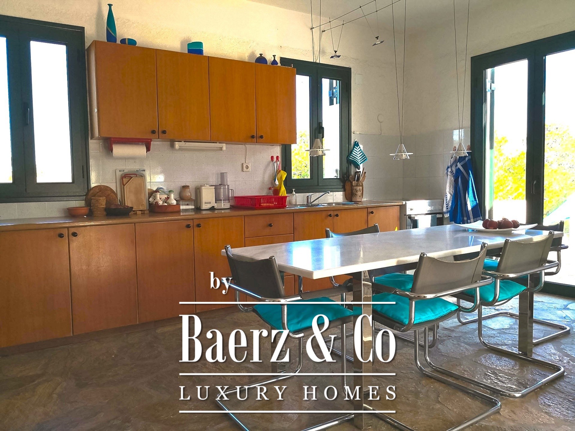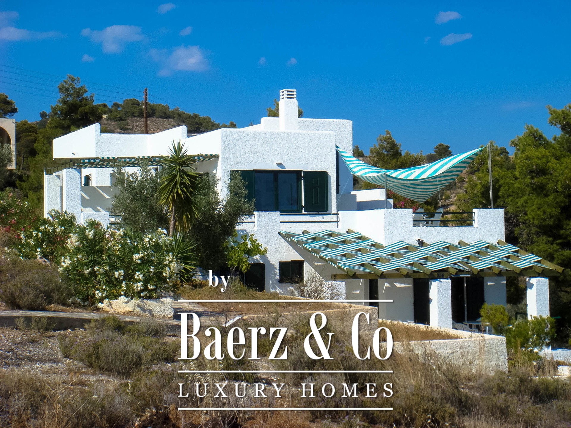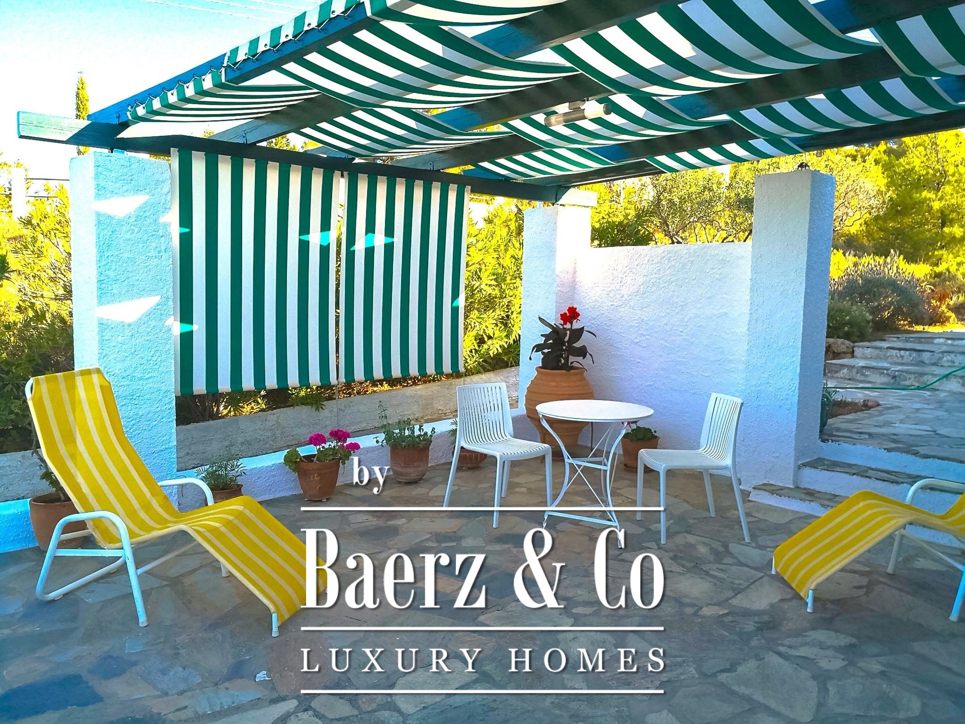 In one of the most beautiful spots of the area, amidst lush greenery and just 350 meters from magnificent beaches, this unique residence is available for sale. It is a property with a total area of 148 sq m, which is located within a beautifully landscaped plot of 5,800 sq m.