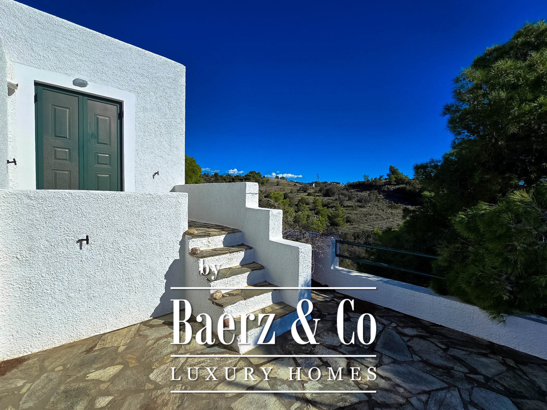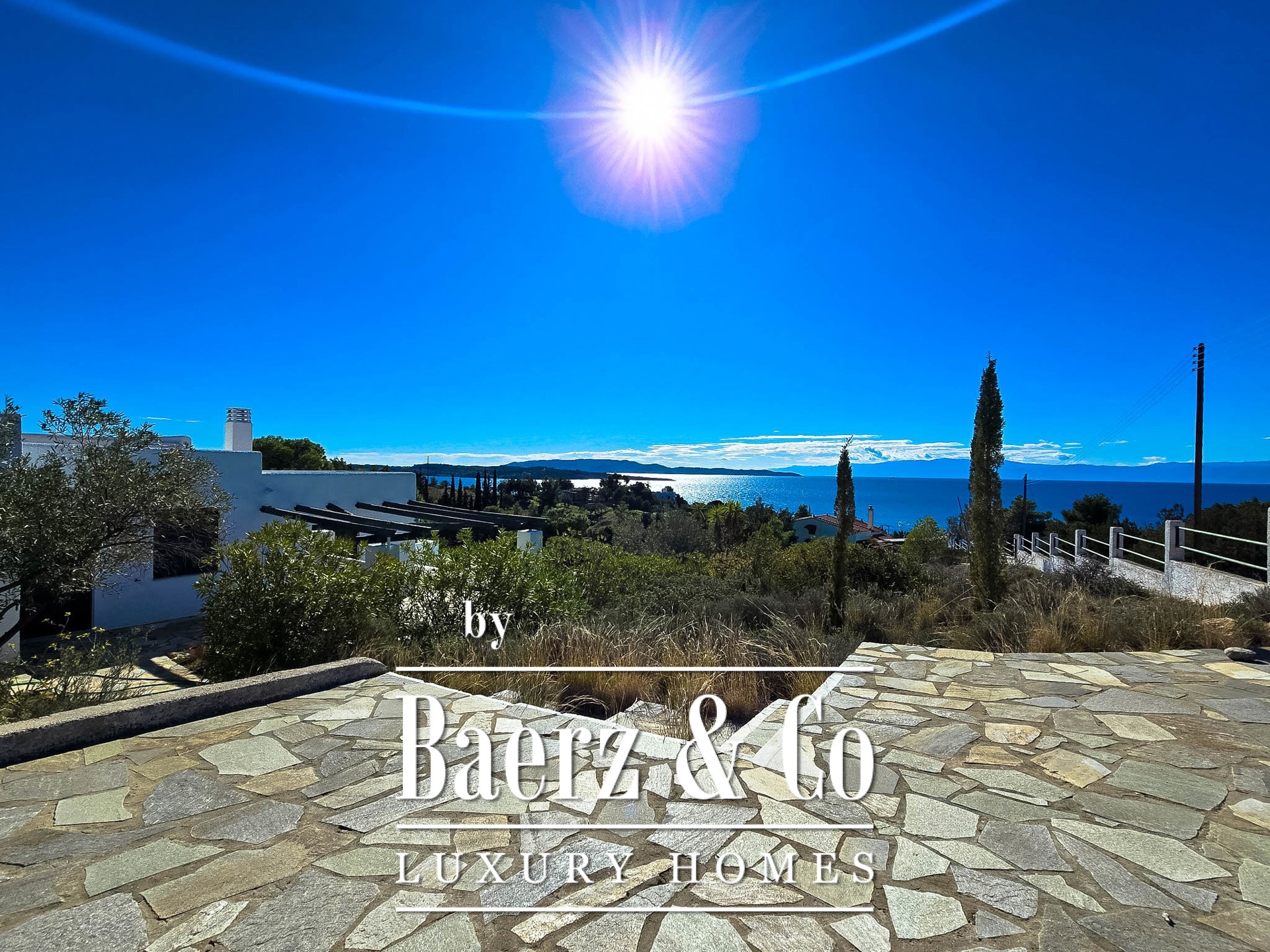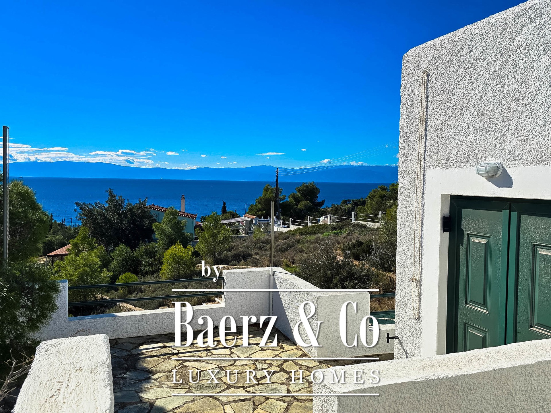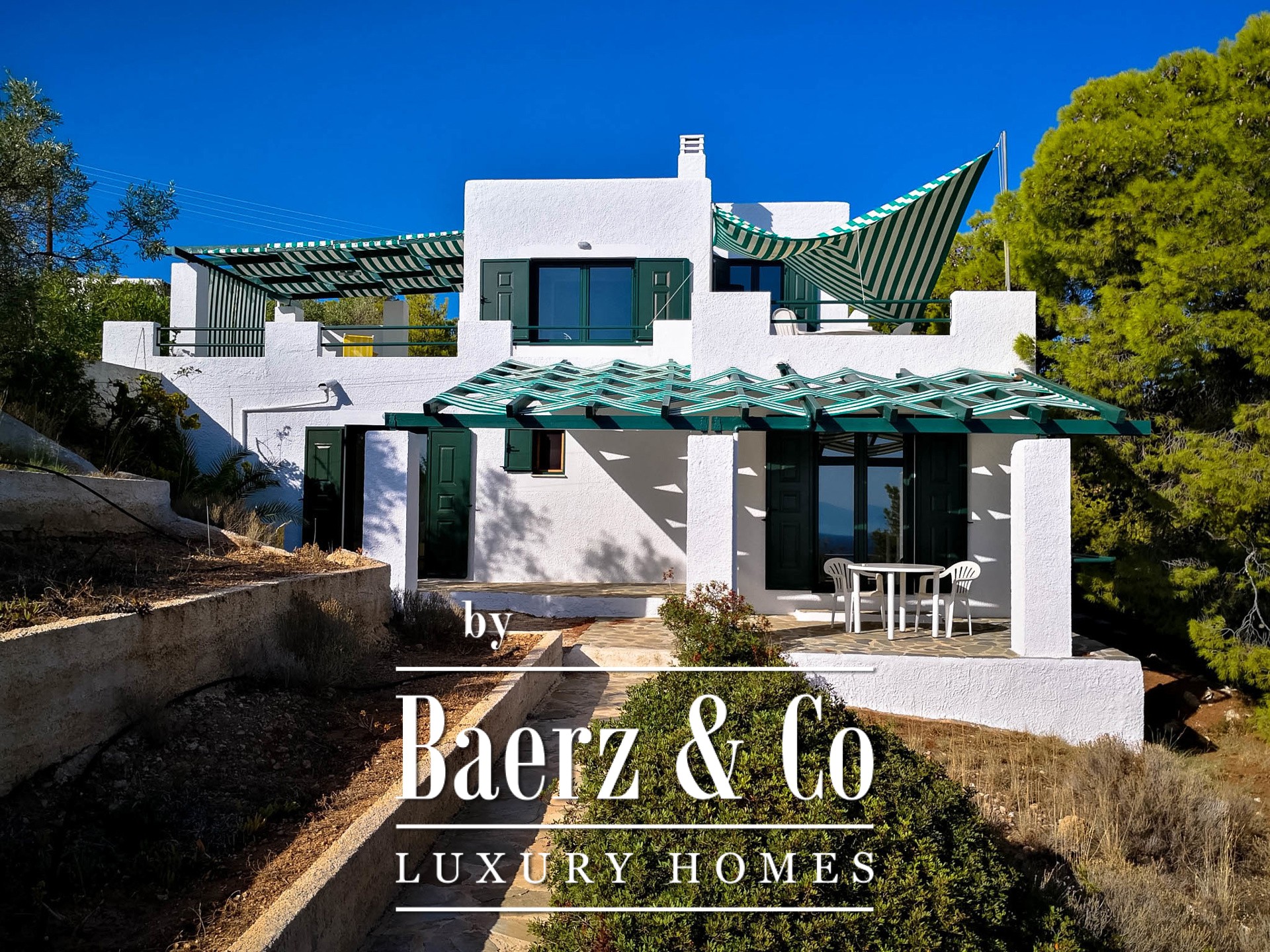In one of the most beautiful spots of the area, amidst lush greenery and just 350 meters from magnificent beaches, this unique residence is available for sale. It is a property with a total area of 148 sq m, which is located within a beautifully landscaped plot of 5,800 sq m.