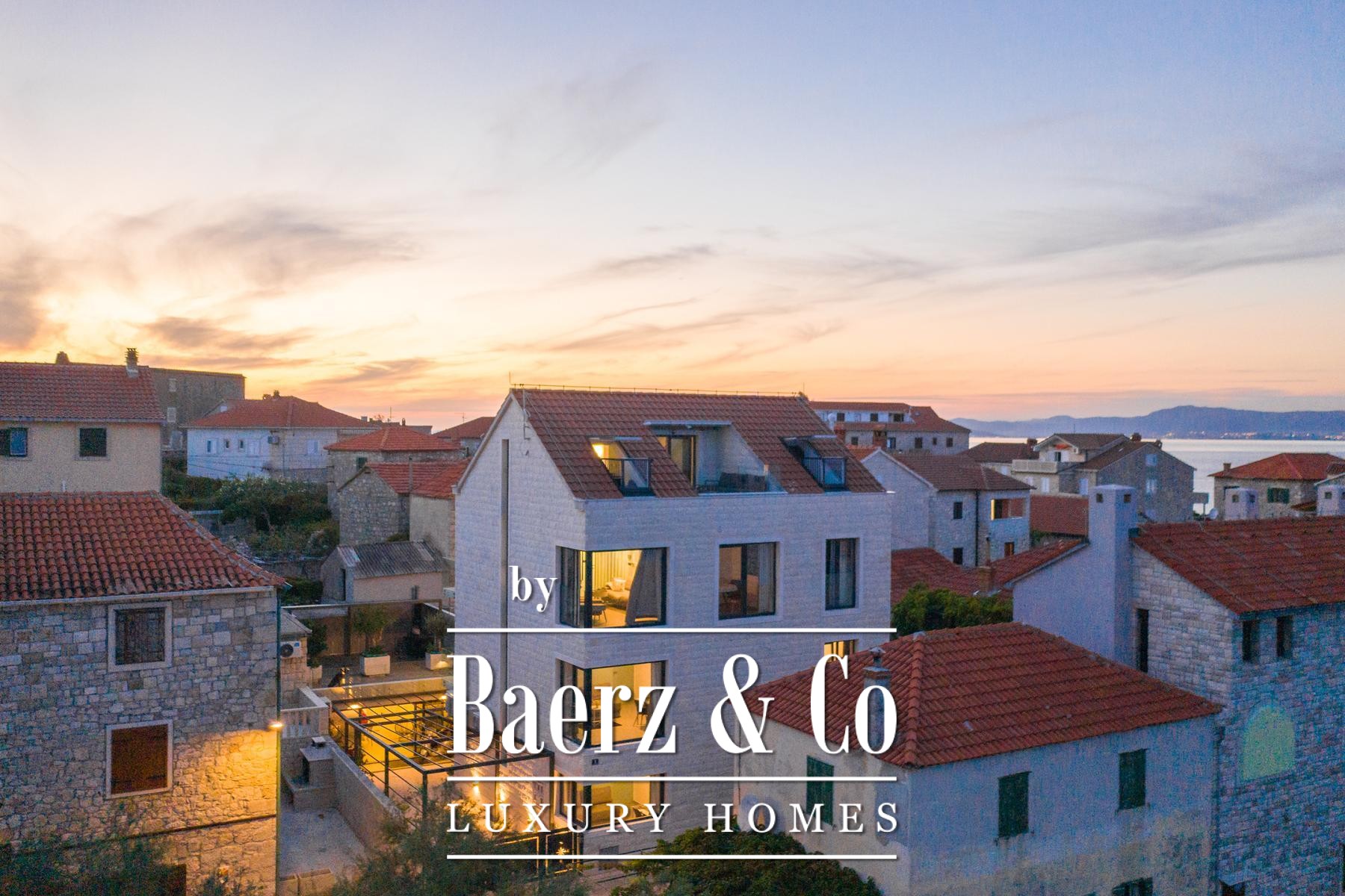 Rustic property Postira presents a substantial waterfront opportunity on Brač, quietly positioned in the second row from the sea in a setting that merges privacy with the vibrancy of the Adriatic coast. This 399 m² building consists of four thoughtfully arranged floors and houses six fully furnished residential units, achieving a balance between flexibility and refinement. The ground level features a studio apartment, a one-bedroom apartment, an independent room, and a storage area, while the first floor offers two additional one-bedroom apartments. On the second floor, a further one-bedroom apartment adjoins a two-story residence, linked to the attic by an internal staircase, where the living, sleeping, and work spaces culminate in a secluded terrace that frames open sea vistas.