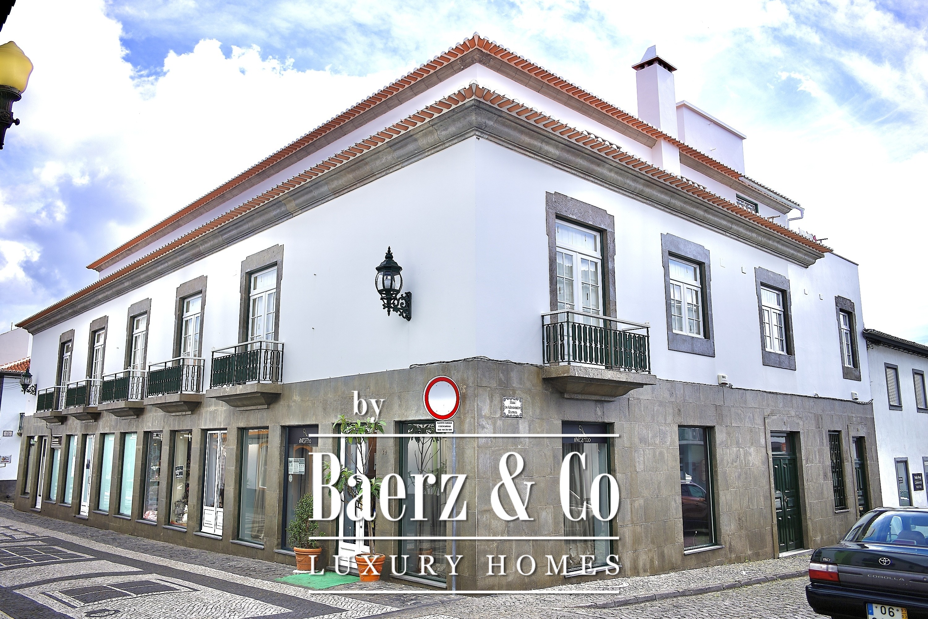 Distinguished by its noble architecture and rare materials, this exceptional three-front residence is located on the main pedestrian street of Praia da Vitória — just steps from the beach, the main church, and City Hall.