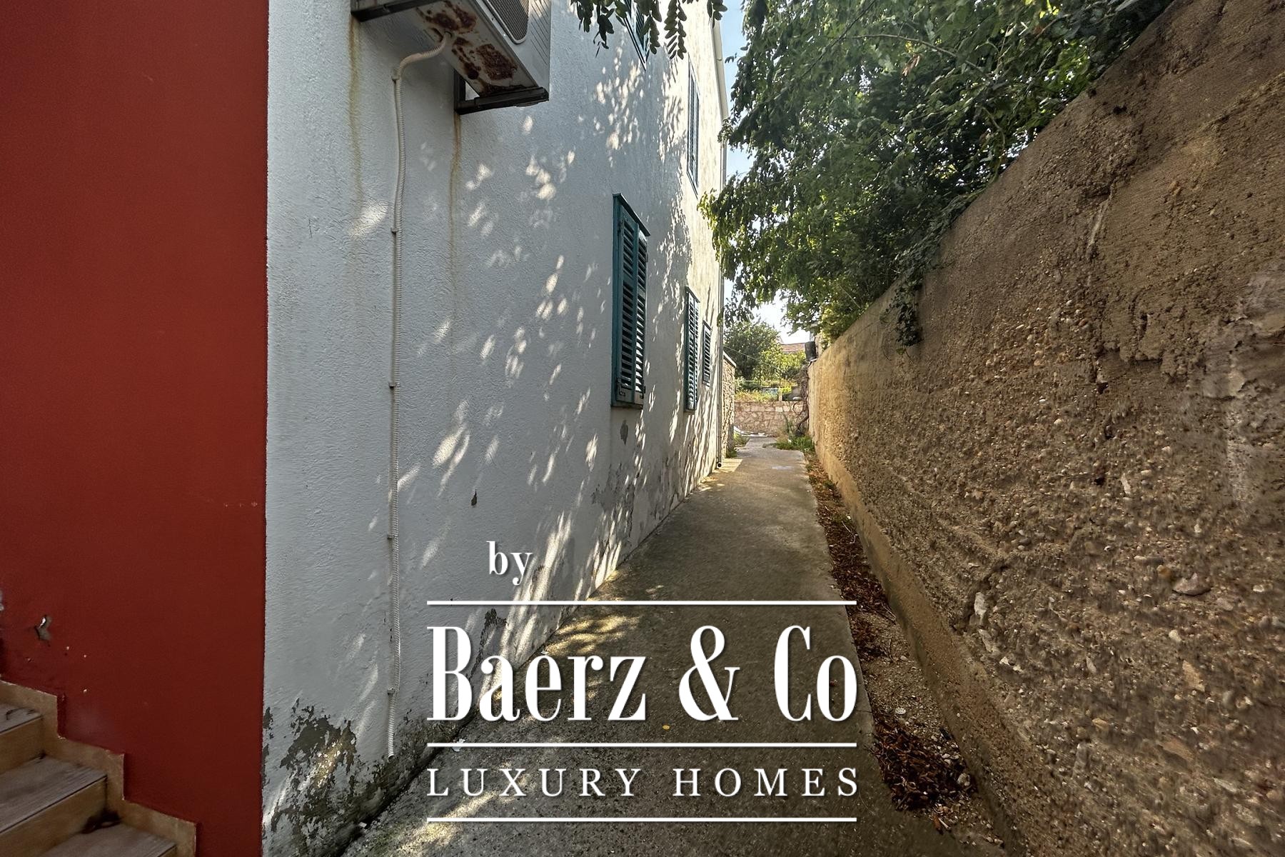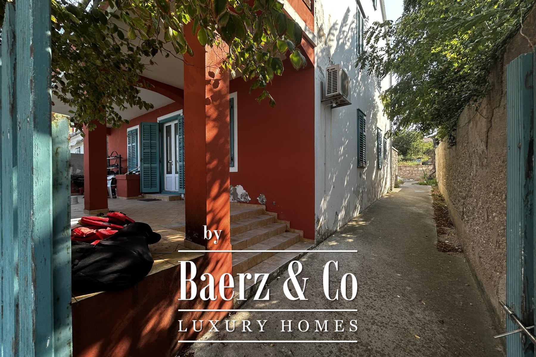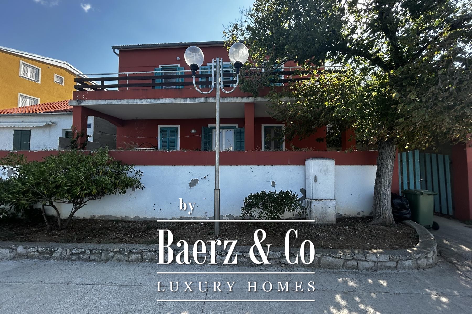 Each level opens to terraces with uninterrupted sea views. The garden presents a thoughtfully excavated area prepared for a pool, sun terrace, and barbecue, adding a dimension for outdoor relaxation and entertaining. The largest sandy beach in Preko, marked by the ecological Blue Flag, is steps away, as are village restaurants, shops, and beach bars. This luxury townhouse for sale in Preko is an invitation to live at the gentle pace of the coast, in proximity to all essential amenities.