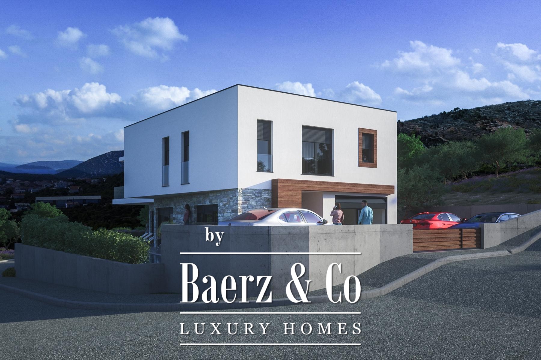 Villa Primošten introduces a discreet standard of modern coastal living in Croatia. This villa in Primošten spans 250 m² across two light-filled floors, offering direct and immediate impressions of calm, privacy, and architectural clarity. From the covered entrance, the ground floor unfolds to a wellness area, kitchen, dining and living spaces, and an engine room. A garage is equipped with an electric car charger, echoing thoughtful, future-forward design. Generous storage, a sleek staircase, and a guest WC further refine the spatial flow.