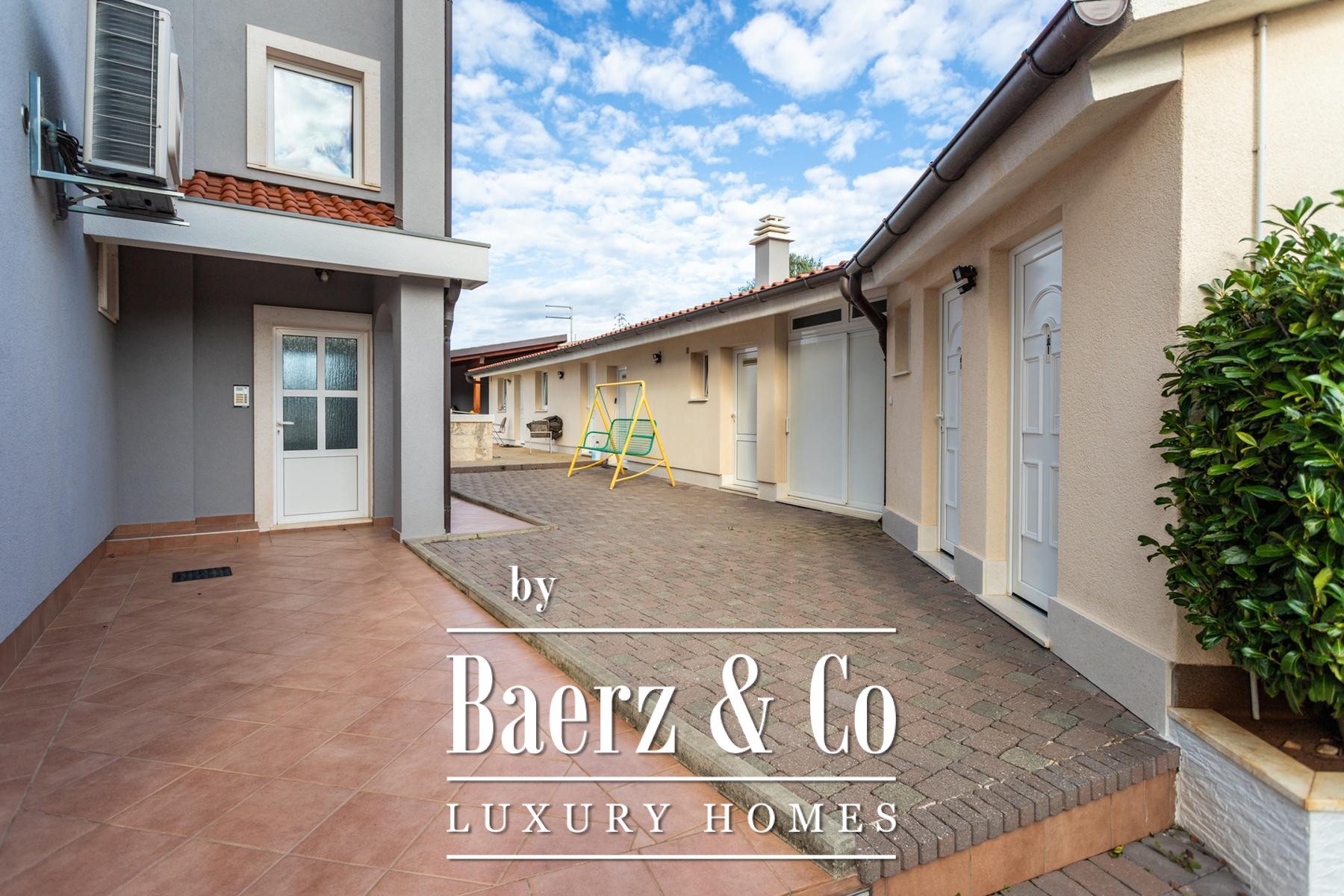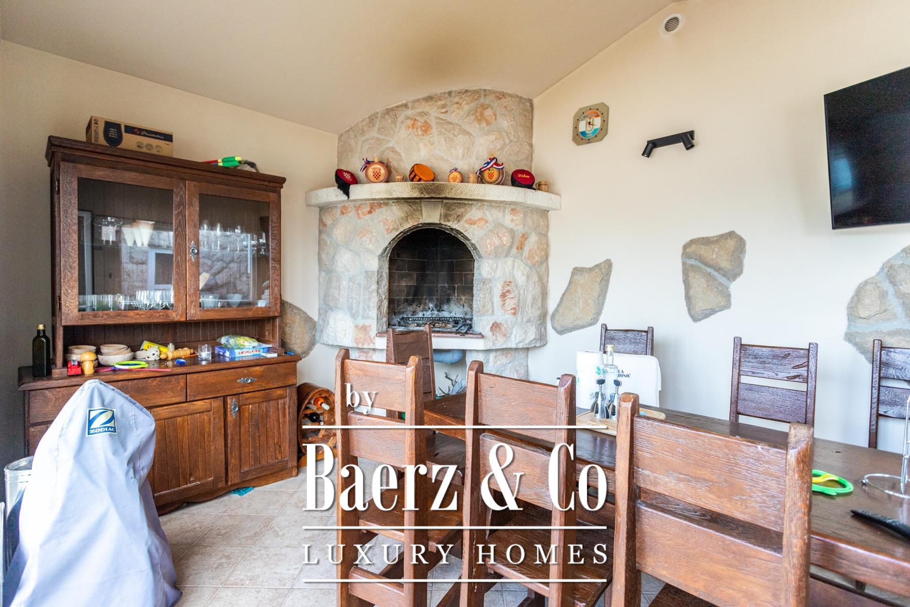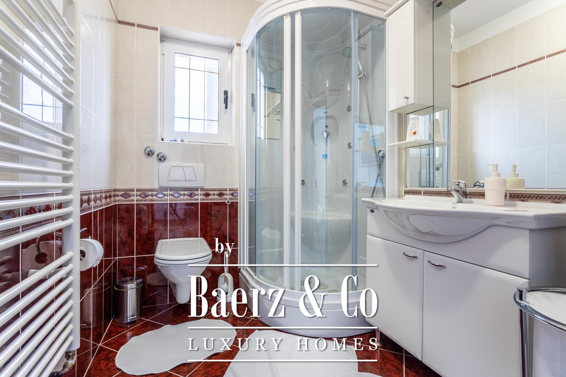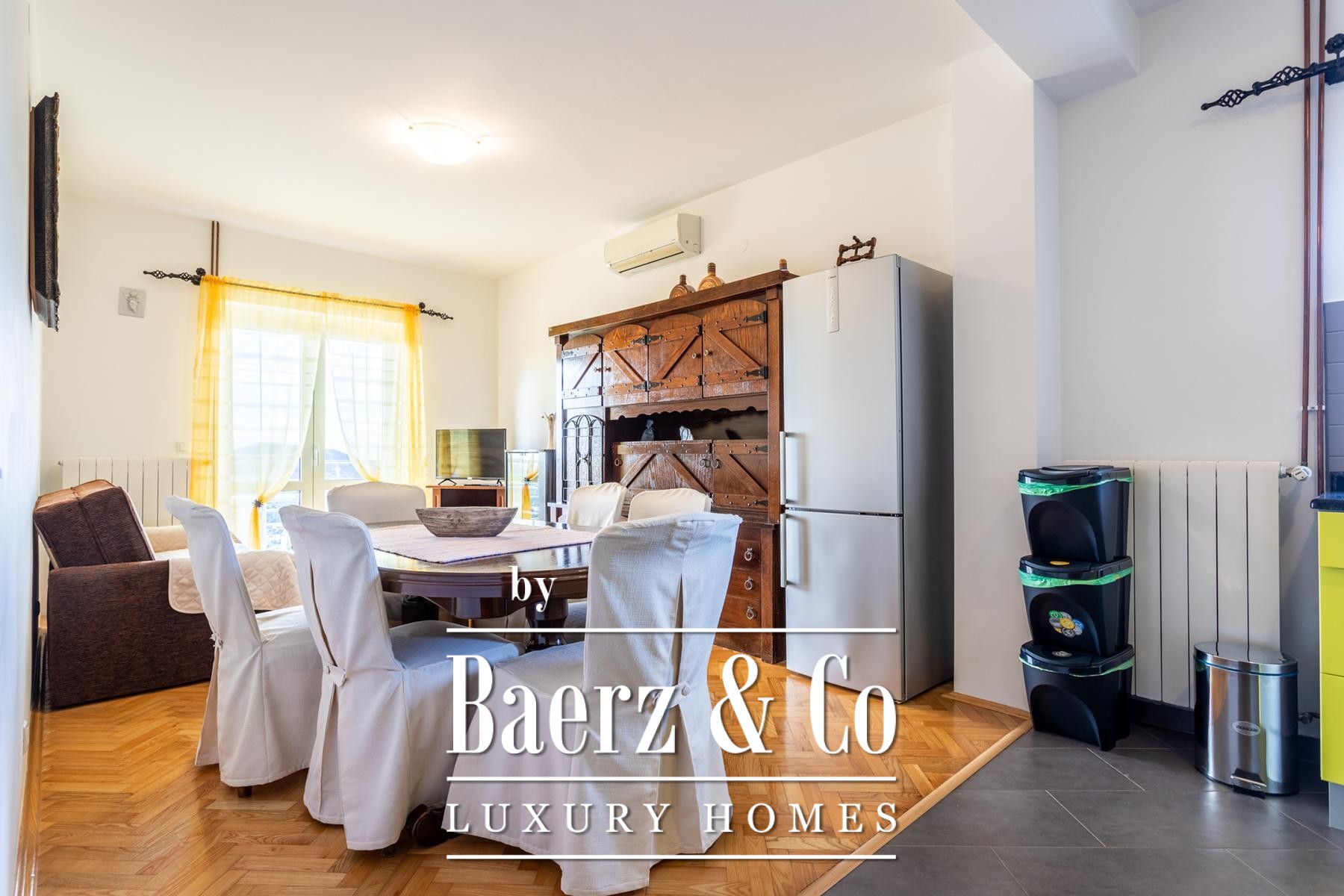 Villa Primošten is a property defined by its clear geometry, sea views, and the discreet luxury of space. This villa, built in 2001, comprises 1,052 m² of living area set on a 1,536 m² plot, offering a rare scale and privacy. The layout spans three levels. The ground floor introduces a kitchen, living room, and dining space along with two well-proportioned bedrooms and a studio apartment complete with its own bath. Each of the two upper floors houses two independent apartments, each featuring two bedrooms, a bathroom, an open kitchen and dining area, and private terraces framing uninterrupted sea views. A fully equipped gym is situated on the second floor. Central heating ensures year-round comfort. Outside, a 110 m² swimming pool with integrated sprinklers is ringed by mature greenery and a thoughtfully landscaped yard. Auxiliary spaces include outdoor restrooms, a tavern, bar, laundry room, tool shed, generator room, and a covered parking area for six cars. The villa is offered fully furnished and equipped, supporting either private enjoyment or continued focus as a luxury villa for sale in Primošten.