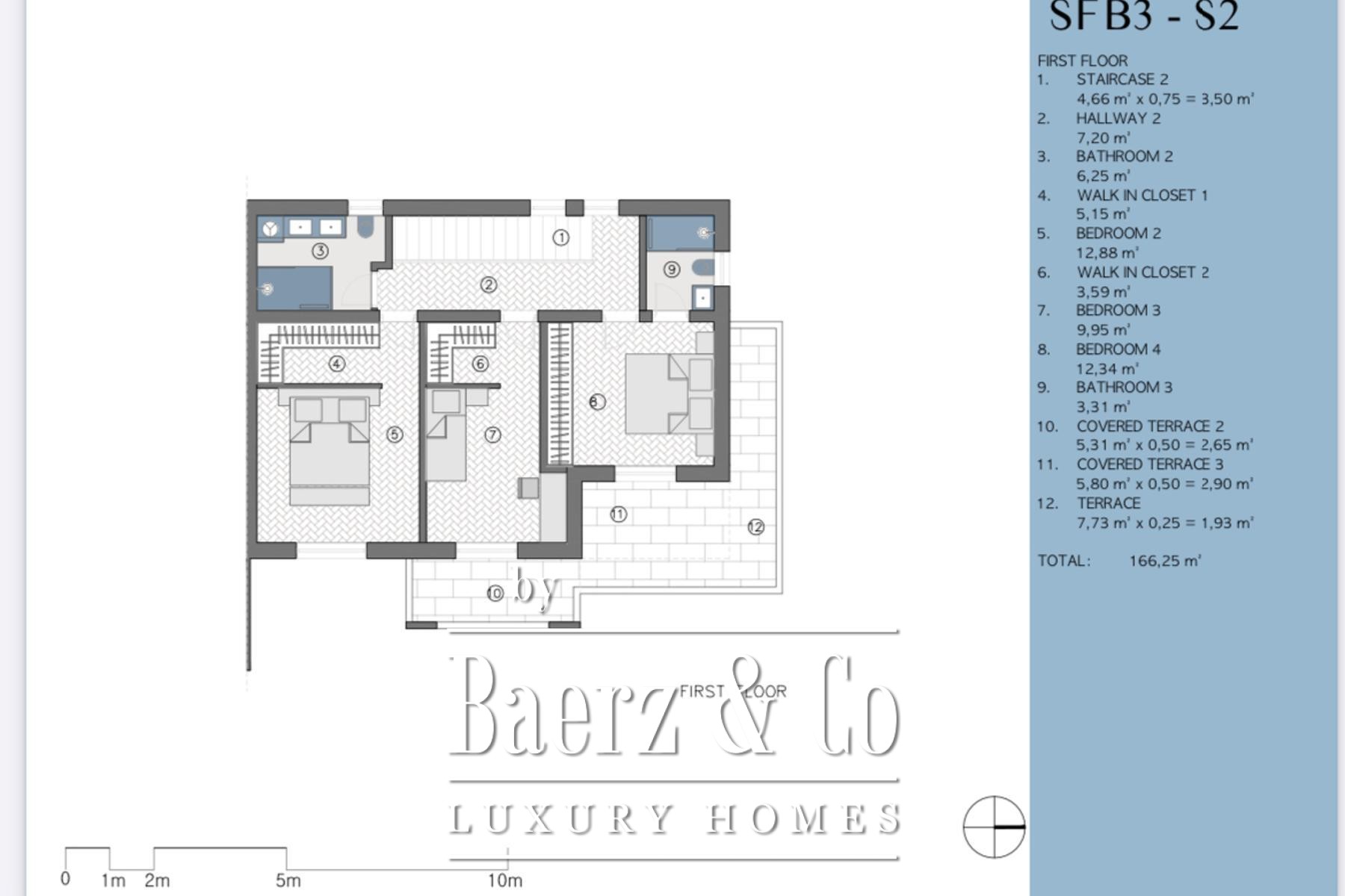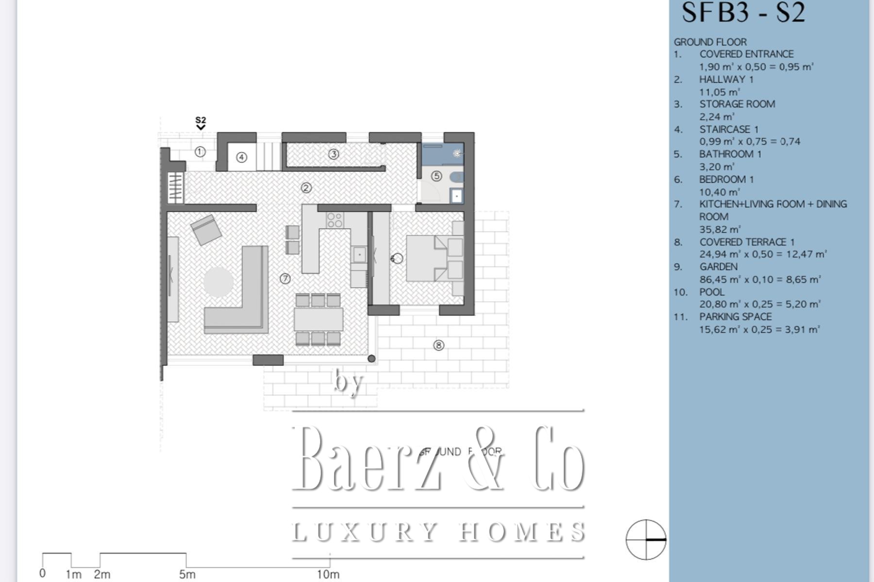 Four bedrooms and four bathrooms ensure comfort and privacy, with each room opening to a sunlit terrace facing the water. Superior materials have been specified throughout, including underfloor heating, high-grade floor coverings, air conditioning in every room, and electric shutters, establishing a discreetly luxurious ambiance. The planned completion in September 2025 provides an opportunity for bespoke interior selections while maintaining the villa’s architectural integrity.