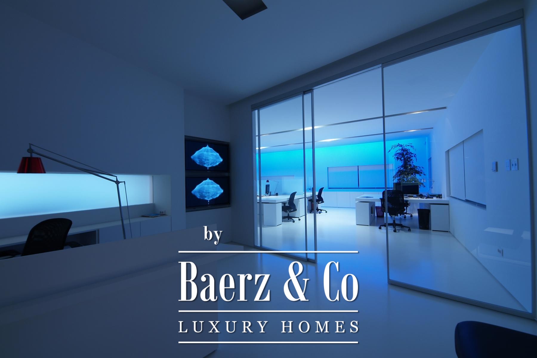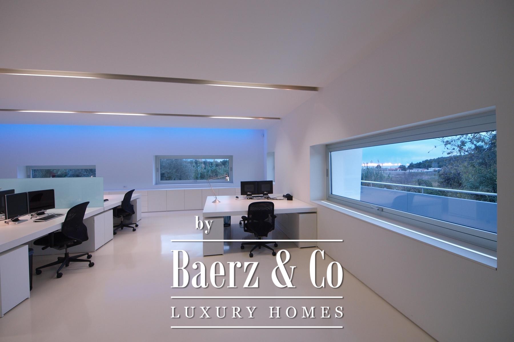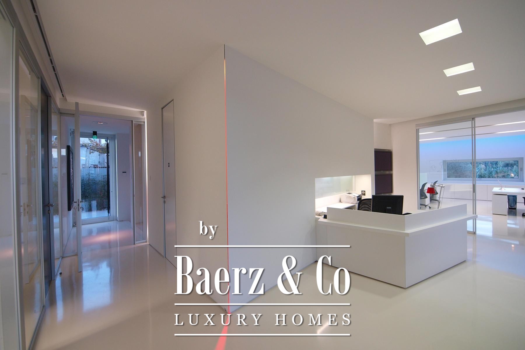 The building offers 755 m² of living space within a simple cubic volume, double-clad in brick and concrete for both strength and thermal performance. With no internal partition walls, the space is ready to be tailored to the tastes and ambitions of its next owner, whether as a residence or for professional use – a versatility matched by the approved potential to add another floor under local planning guidance.
