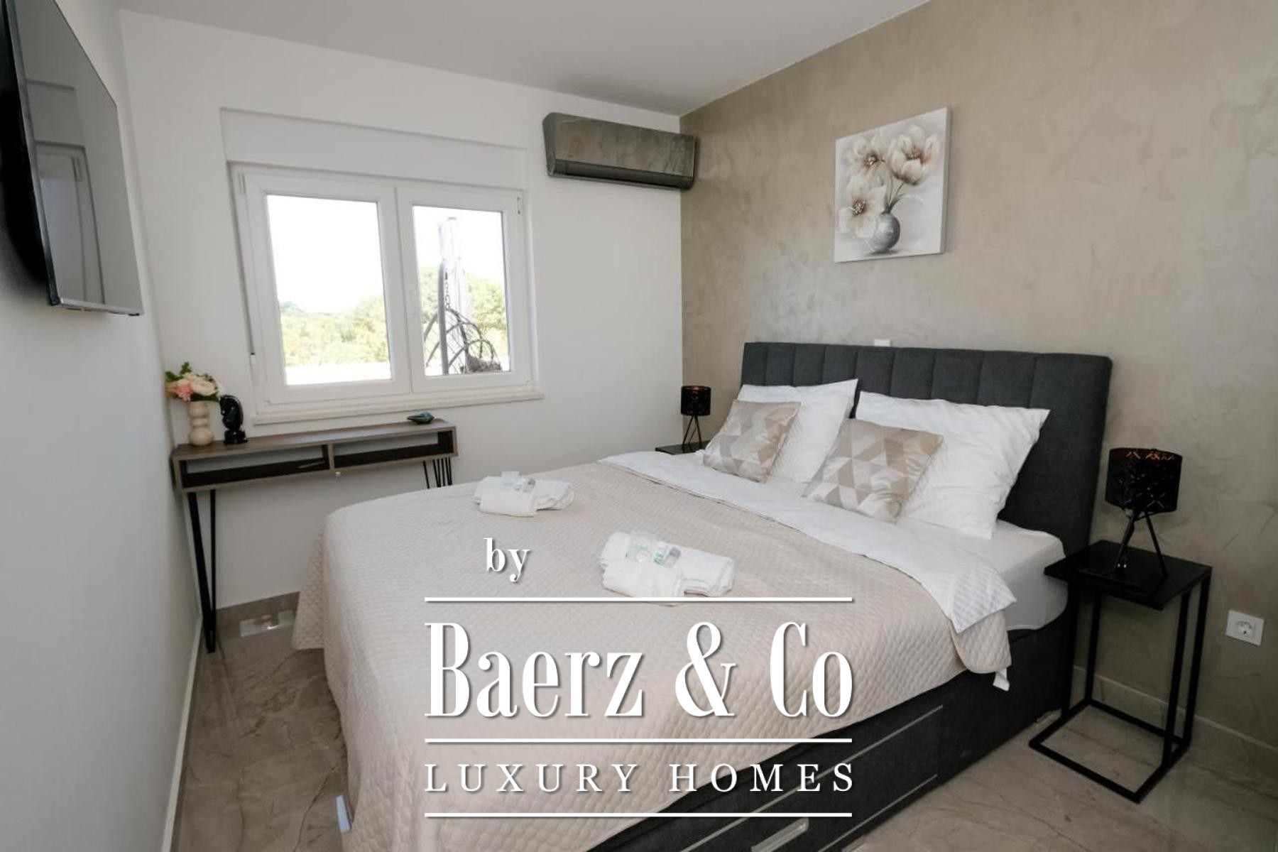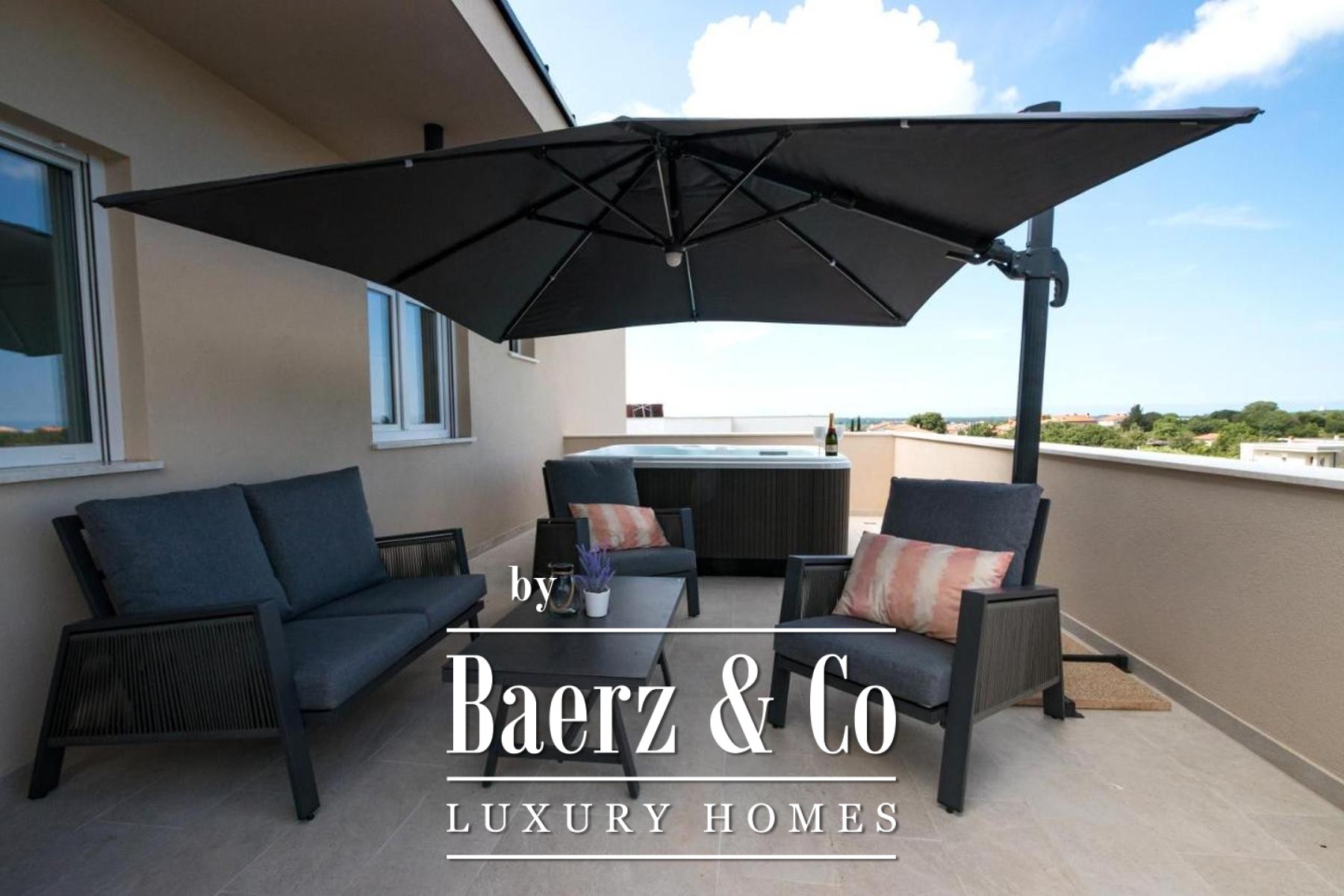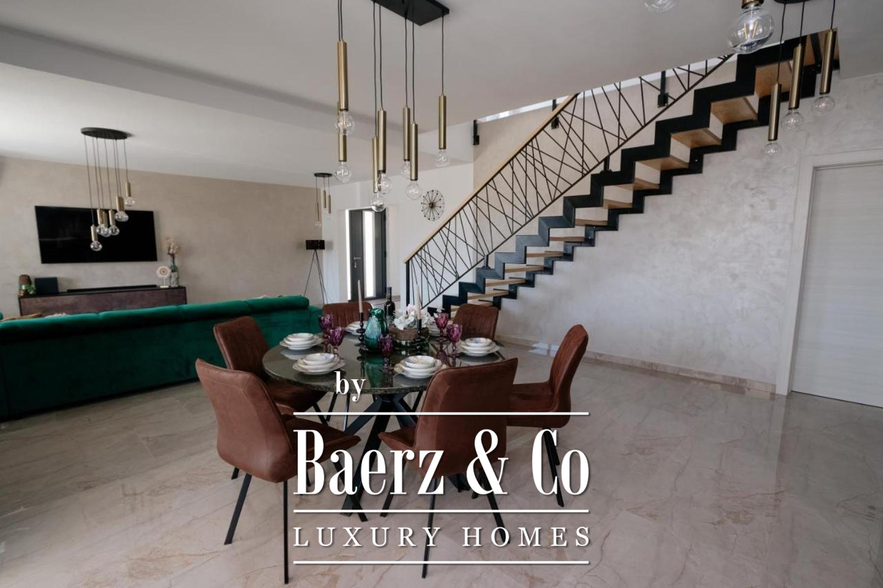 Villa Pula is set just five minutes from the city center, presenting a contemporary retreat of 150 m² embraced by verdant surroundings. This villa seamlessly integrates open-plan living, where a modern kitchen and dining area flow into a luminous living space designed for gathering or quiet repose. Three bedrooms are thoughtfully positioned apart from the common areas, with one enjoying a private covered terrace, and a further expansive 35 m² terrace appointed with seating and a jacuzzi, inviting moments of calm and pleasure.