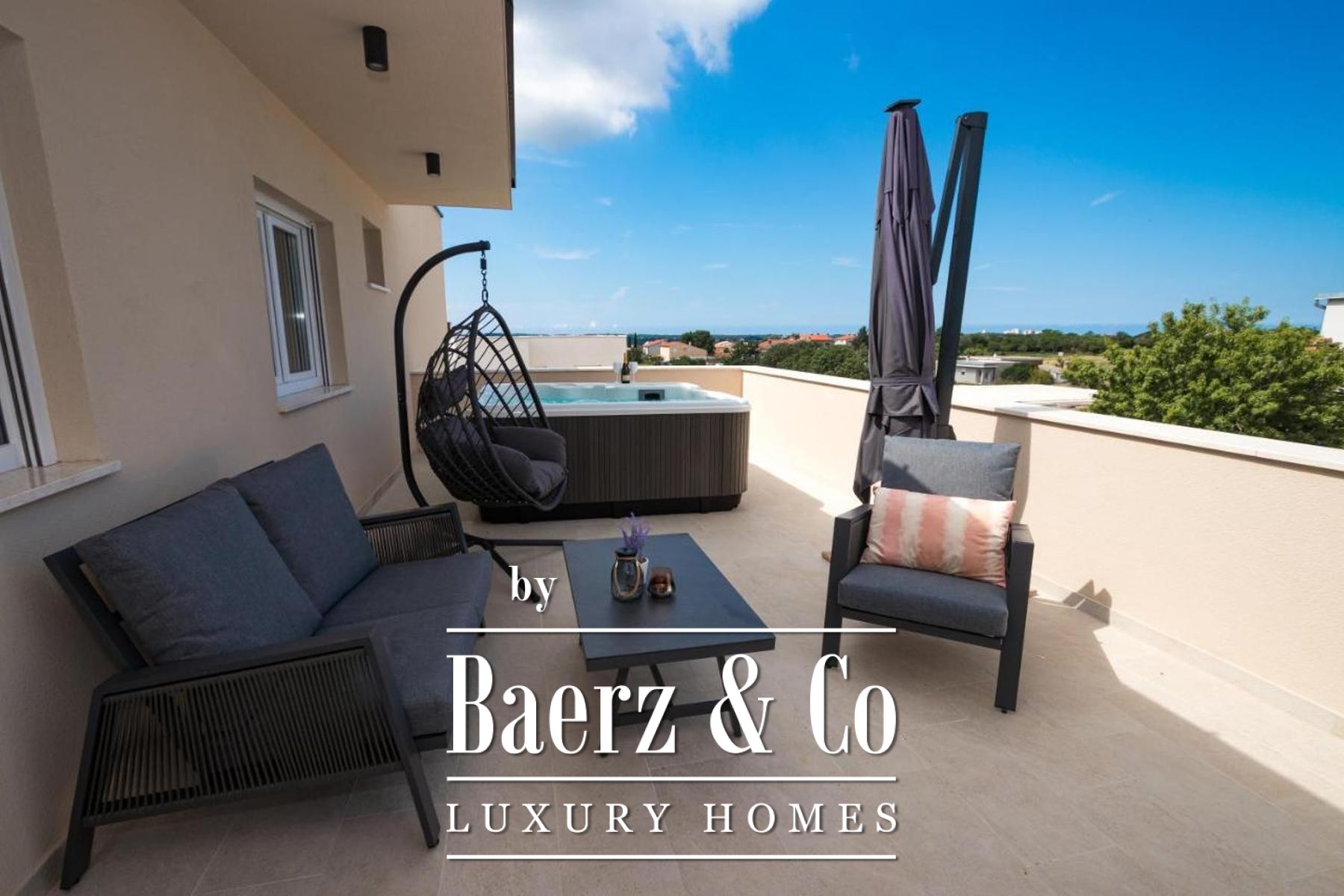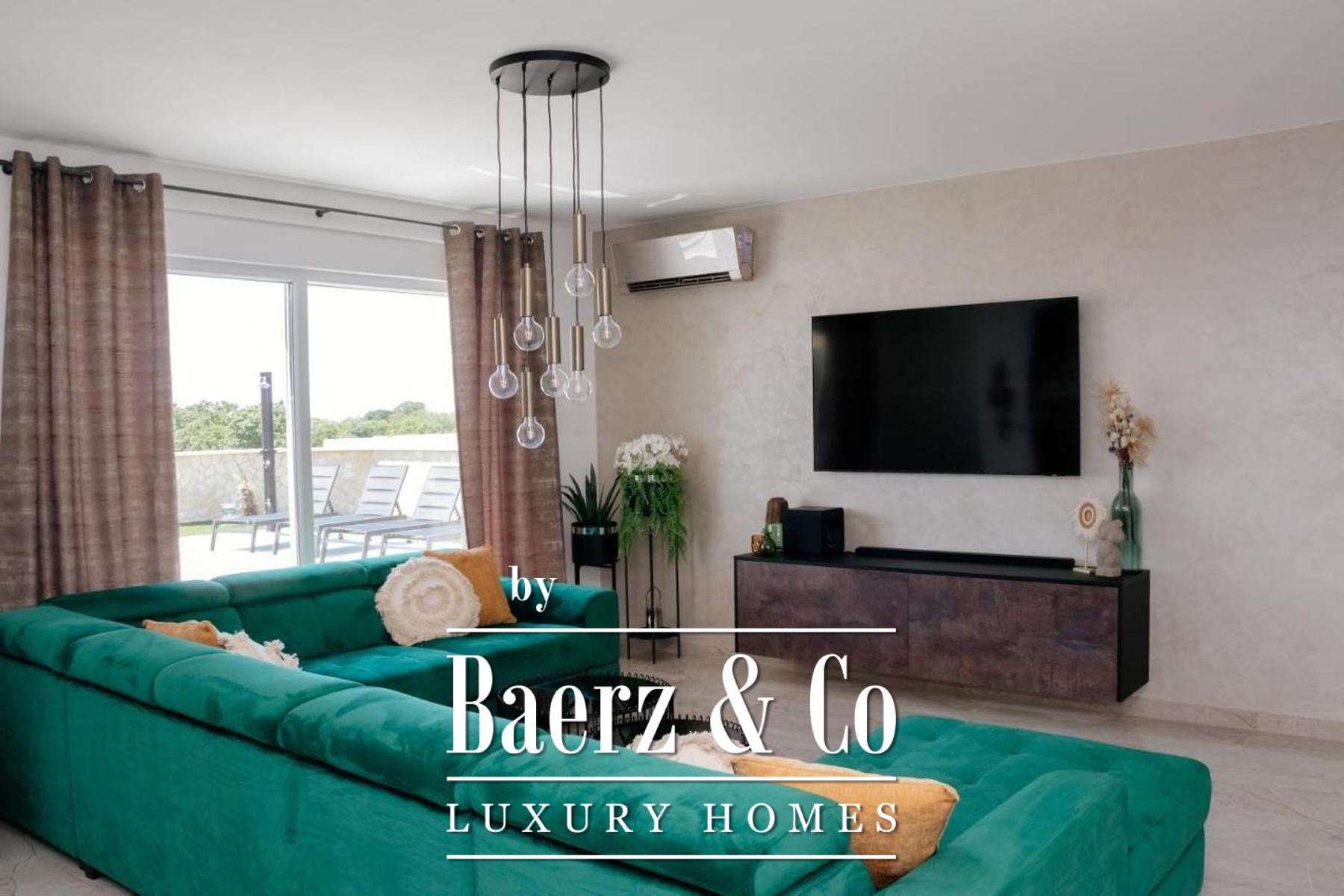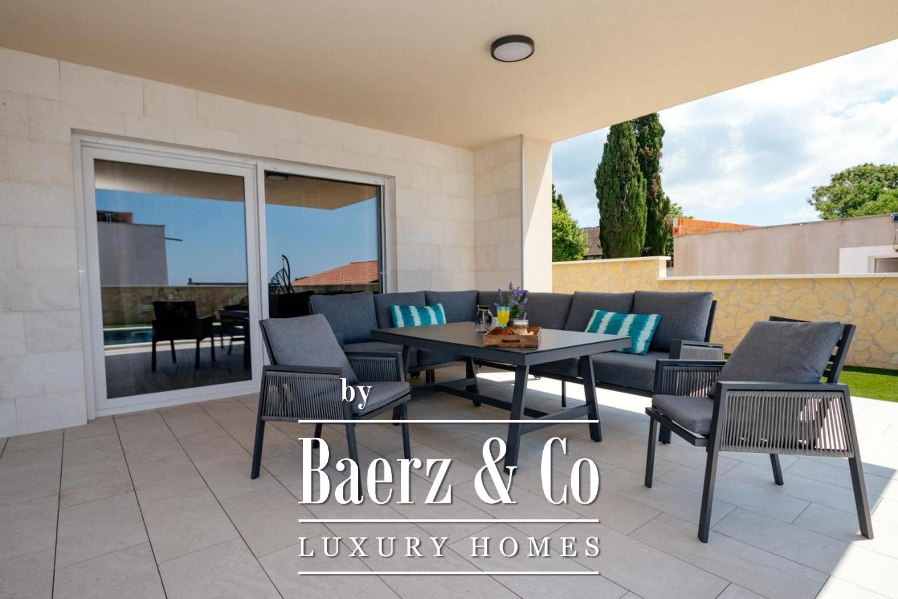 Villa Pula is set just five minutes from the city center, presenting a contemporary retreat of 150 m² embraced by verdant surroundings. This villa seamlessly integrates open-plan living, where a modern kitchen and dining area flow into a luminous living space designed for gathering or quiet repose. Three bedrooms are thoughtfully positioned apart from the common areas, with one enjoying a private covered terrace, and a further expansive 35 m² terrace appointed with seating and a jacuzzi, inviting moments of calm and pleasure.