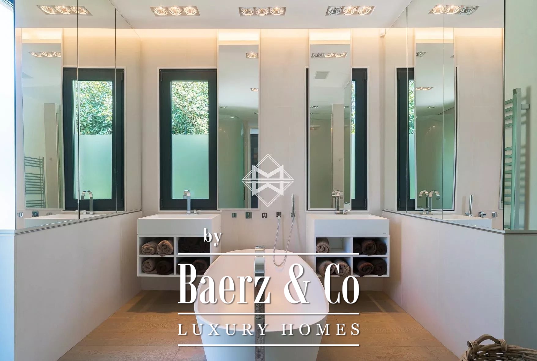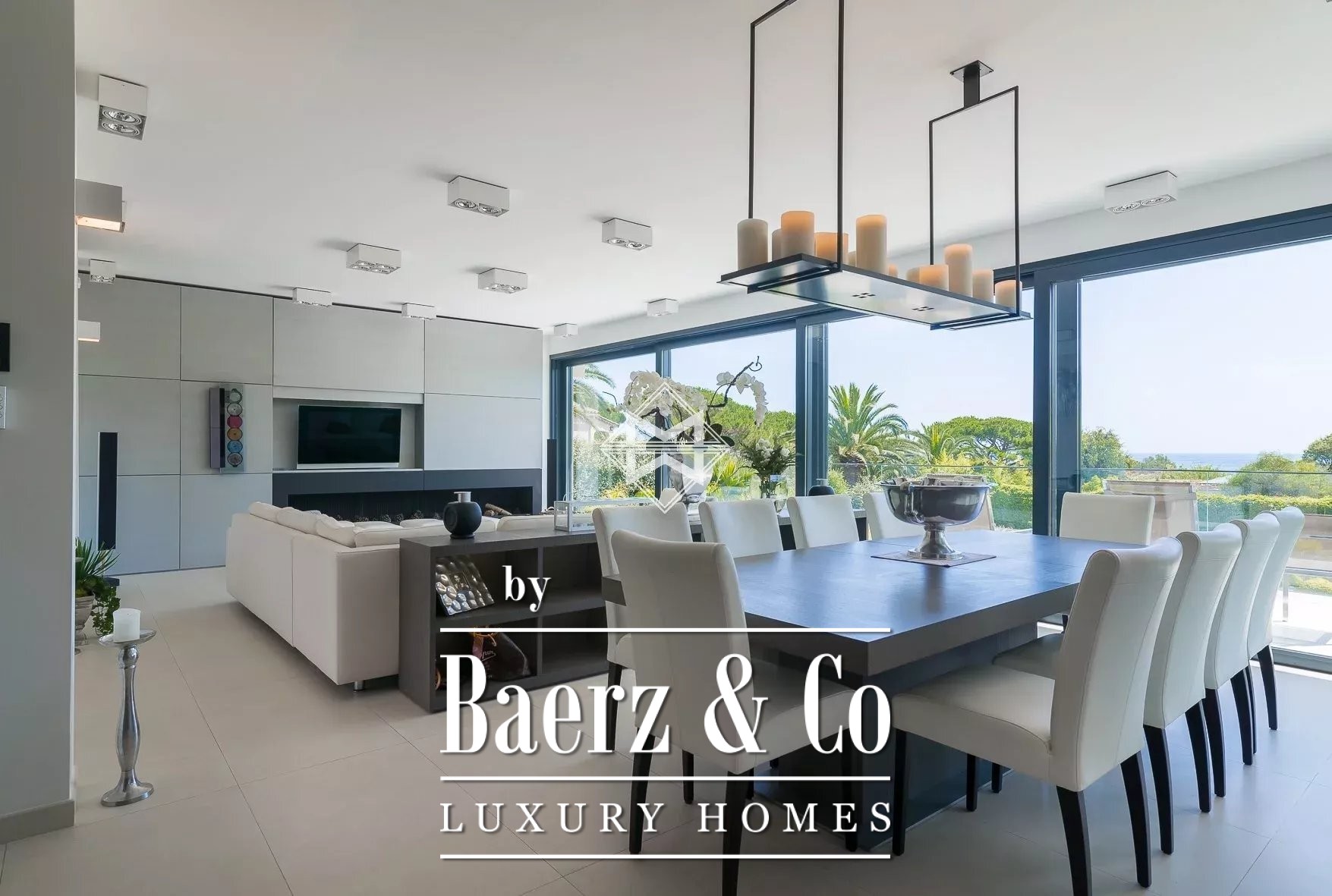 Set within 1,551 m² of landscaped grounds, the villa is surrounded by mature Mediterranean shrubs and features a striking infinity swimming pool. Advanced home automation and integrated indoor-outdoor Hi-Fi systems ensure a streamlined contemporary experience. The villa is offered fully furnished, aligning with a lifestyle where comfort and discretion are paramount.