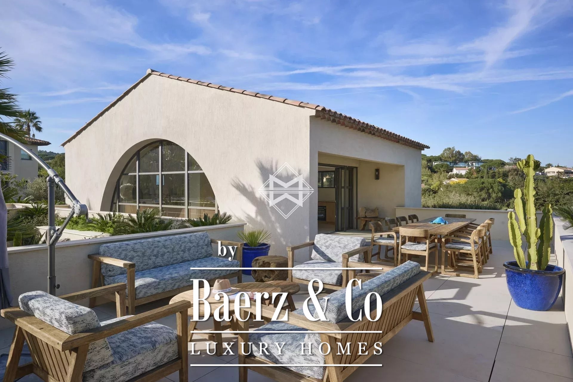 This luxury villa for sale in Ramatuelle captures modern elegance and understated luxury, offering a connected yet tranquil lifestyle within the Côte d’Azur landscape.
