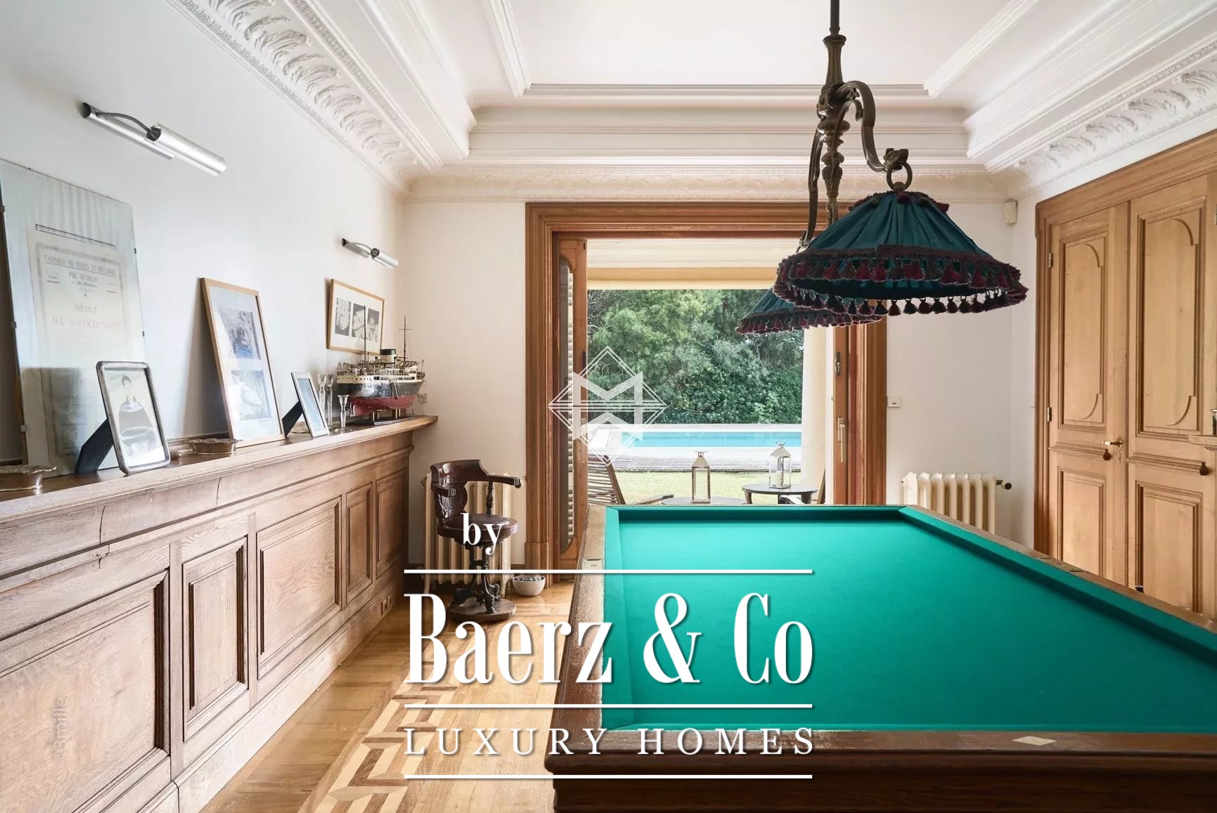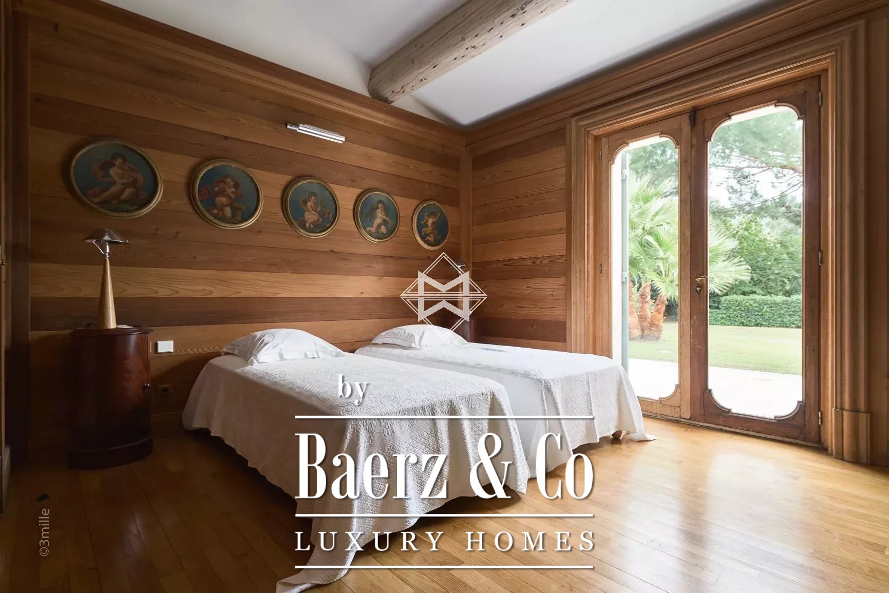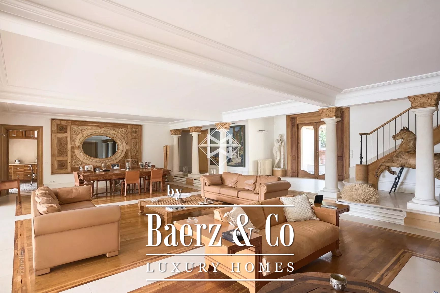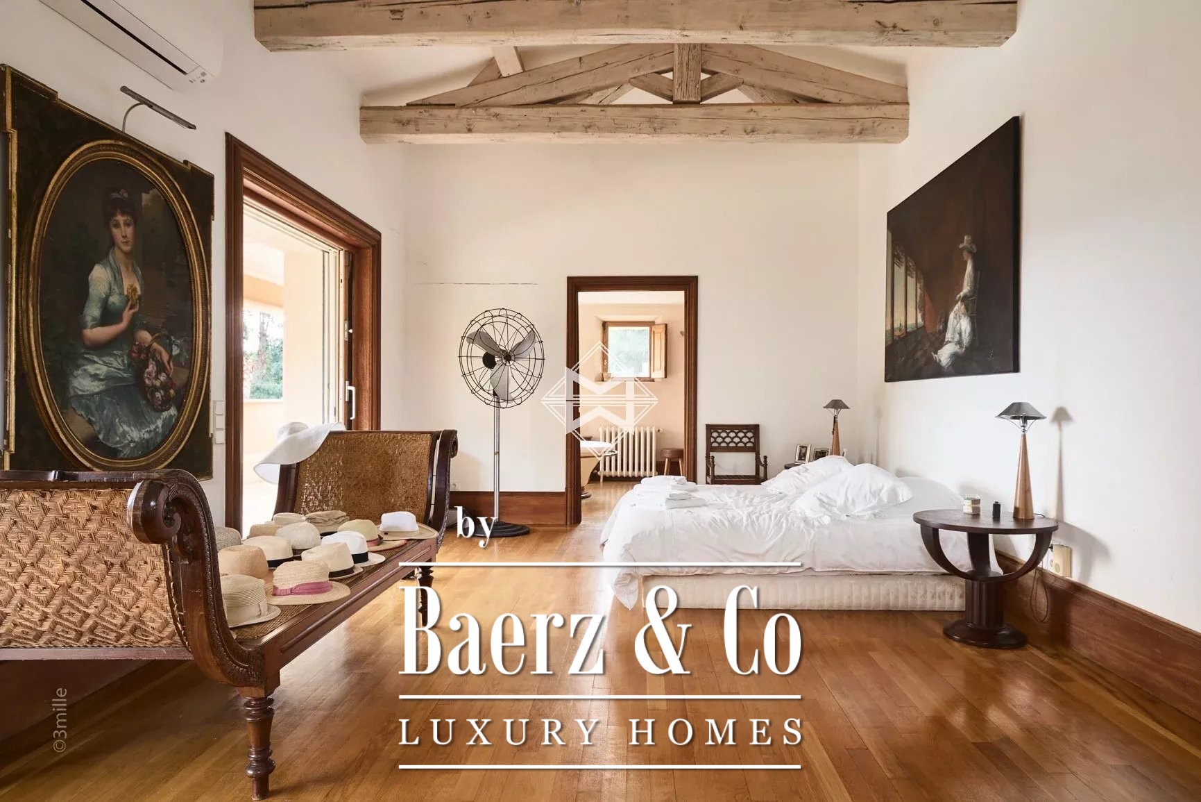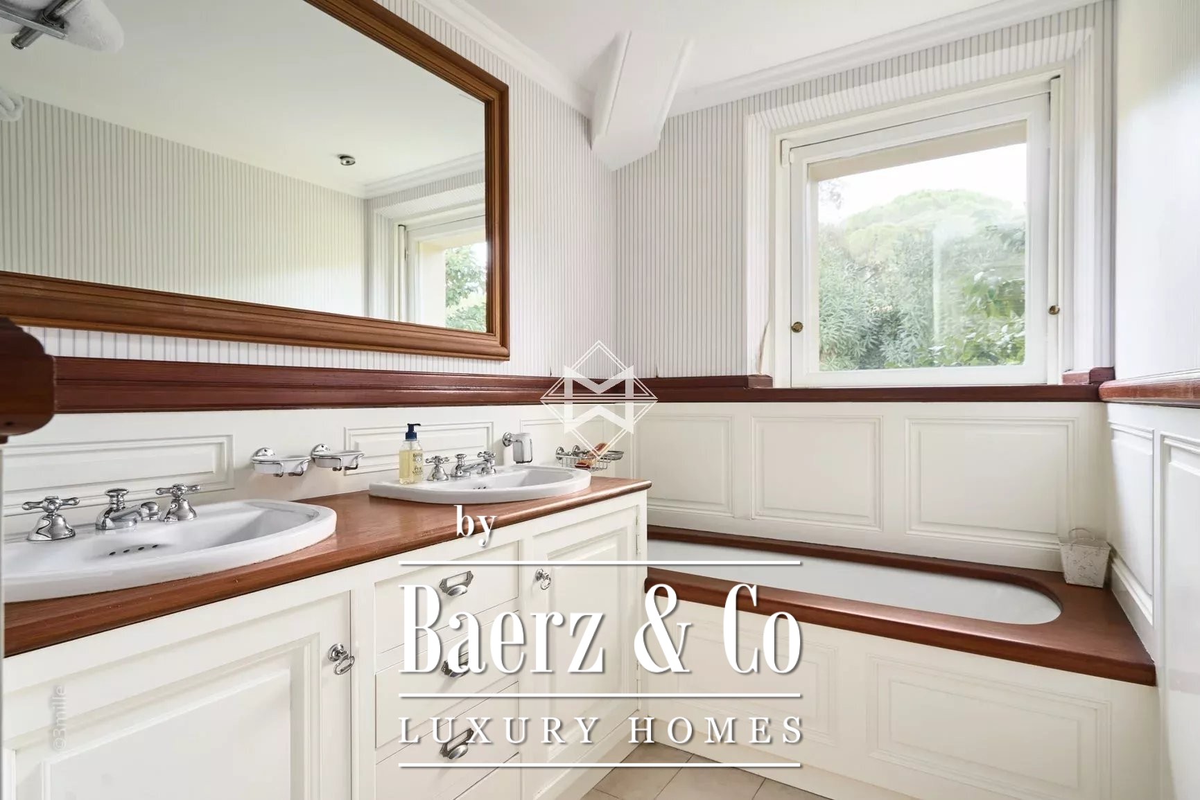 Villa Ramatuelle stands moments from the iconic Pampelonne beach, drawing the eye with its 590 m² of refined living space and distinctive Empire-style interiors. This villa in Ramatuelle opens onto an elegant sequence of generously proportioned rooms, where light traverses expansive glazing and each material has been selected for its quality and resonance.