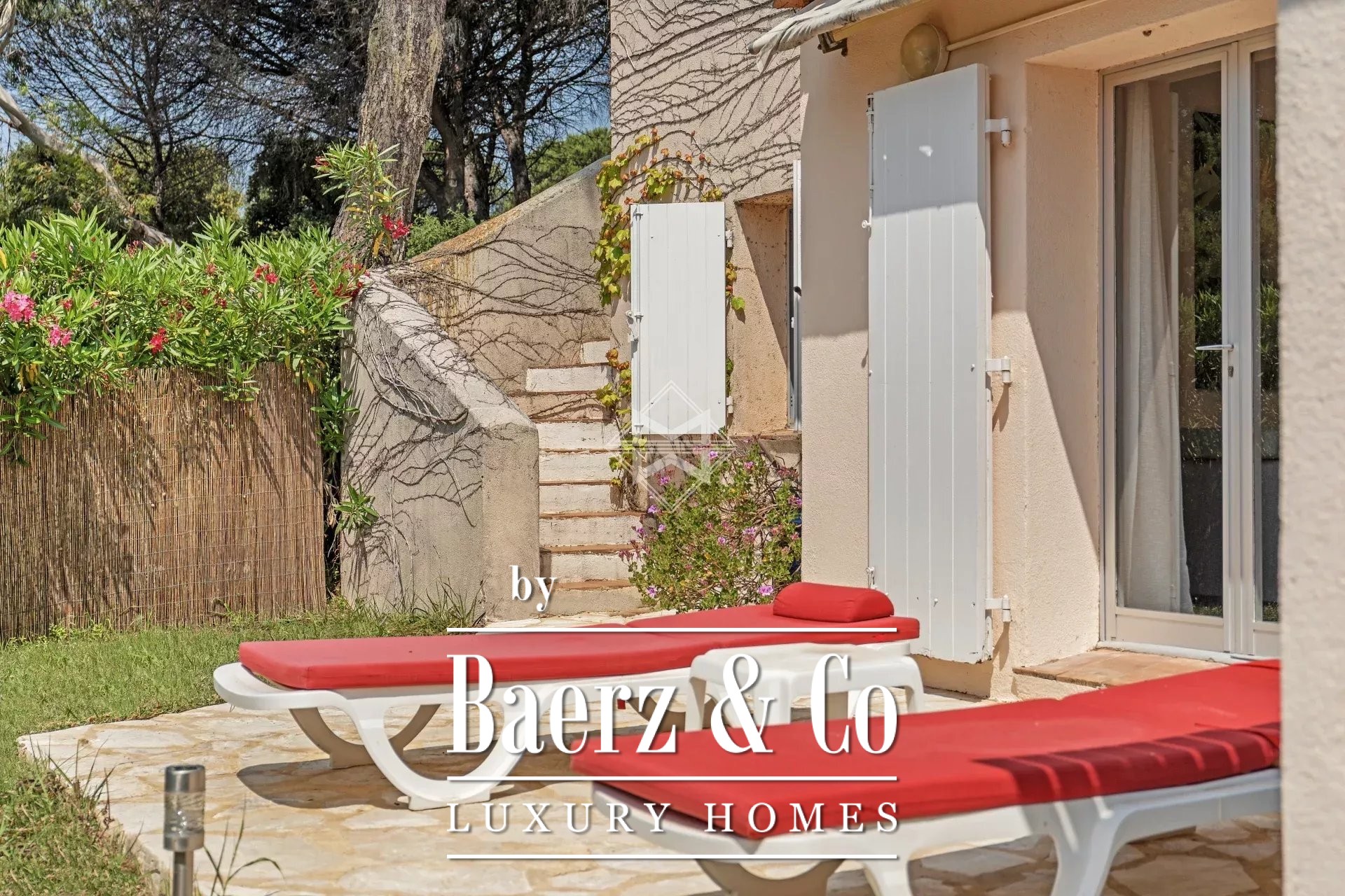 In the heart of a secure domain with tennis courts, large swimming pool and caretaker, at one of the most sought-after addresses in Ramatuelle, on foot from Tahiti Beach, a small, peaceful Provencal house.