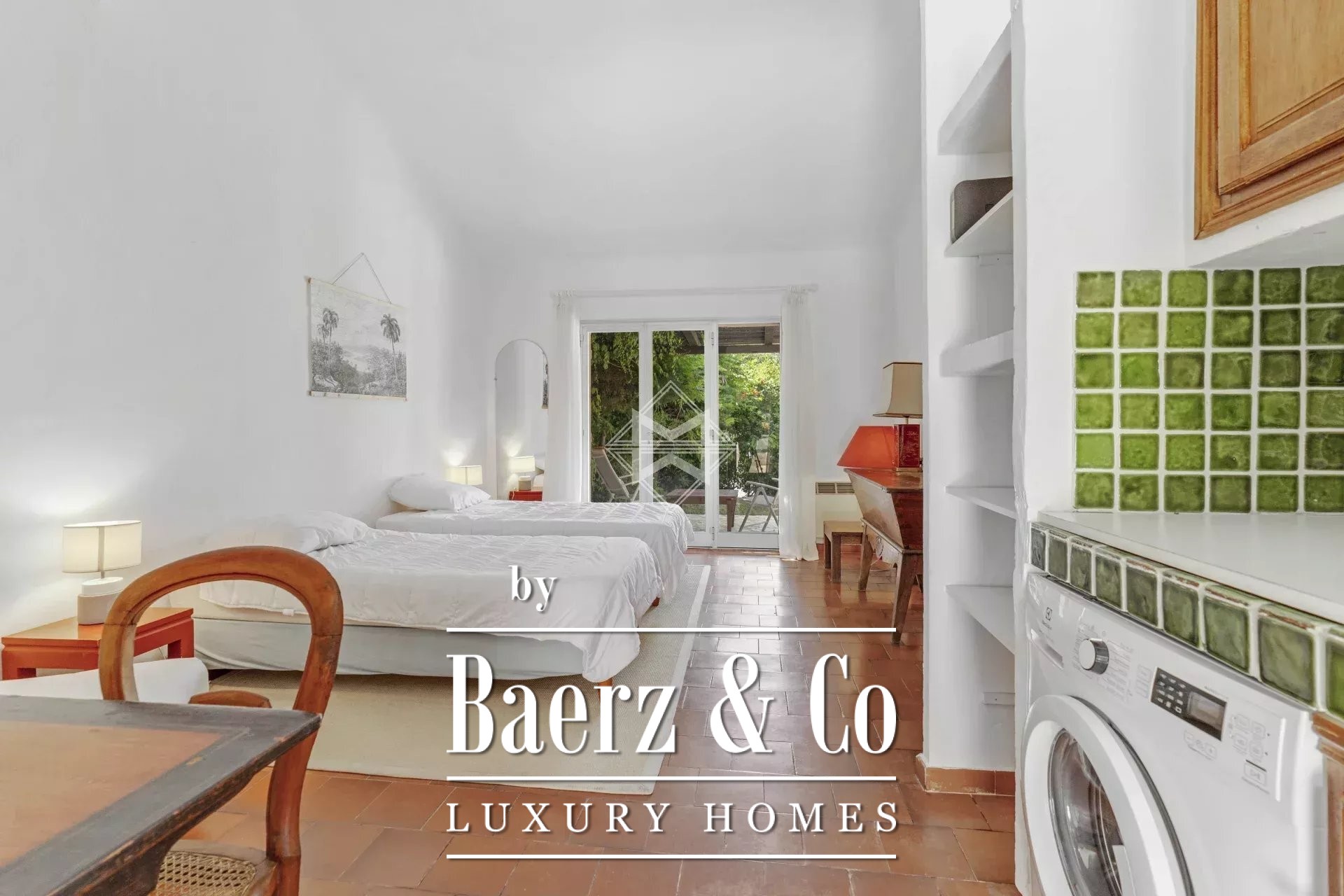 On one level, and facing south, the house consists in particular of a one-bedroom apartment and a studio, all with private garden and terraces.