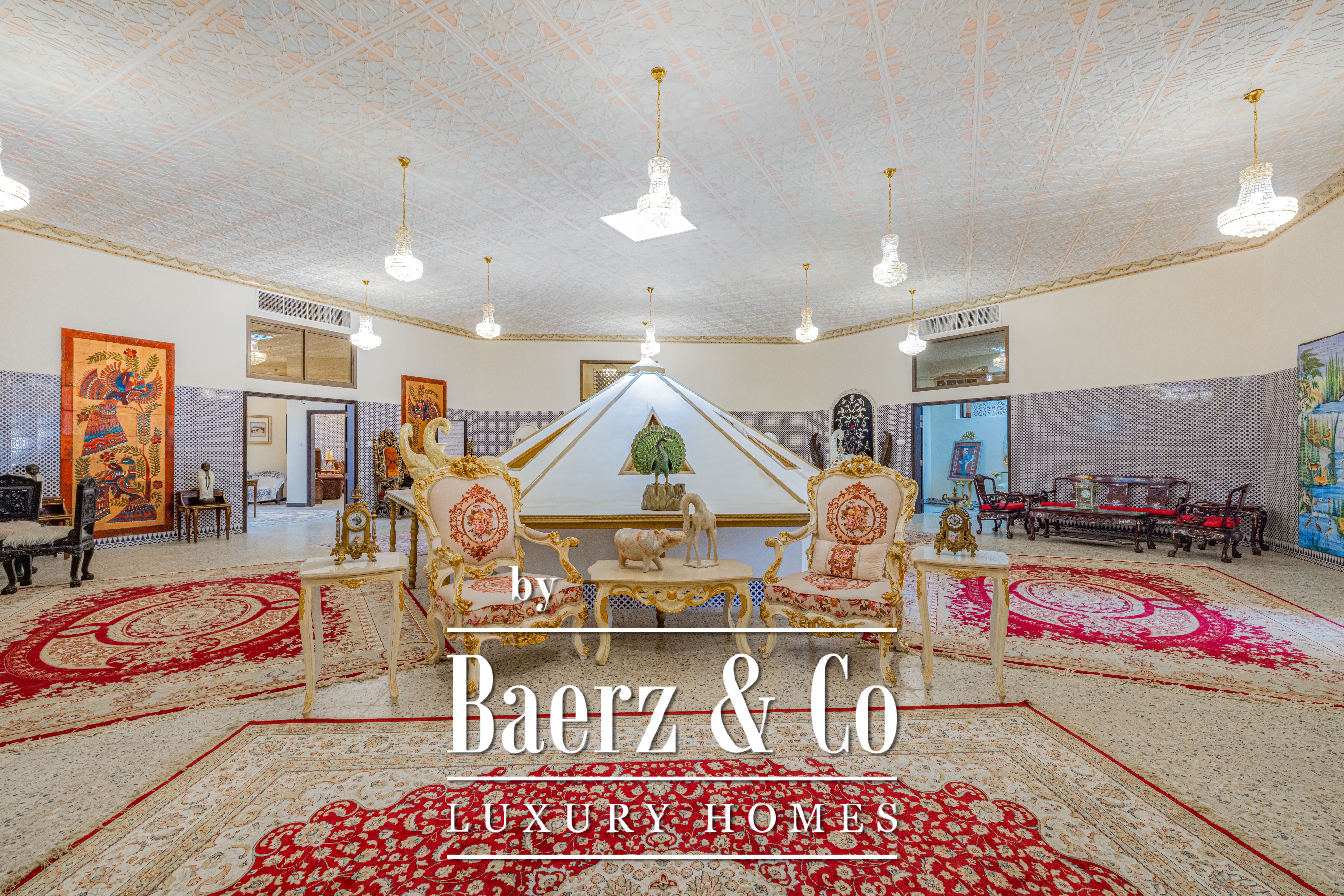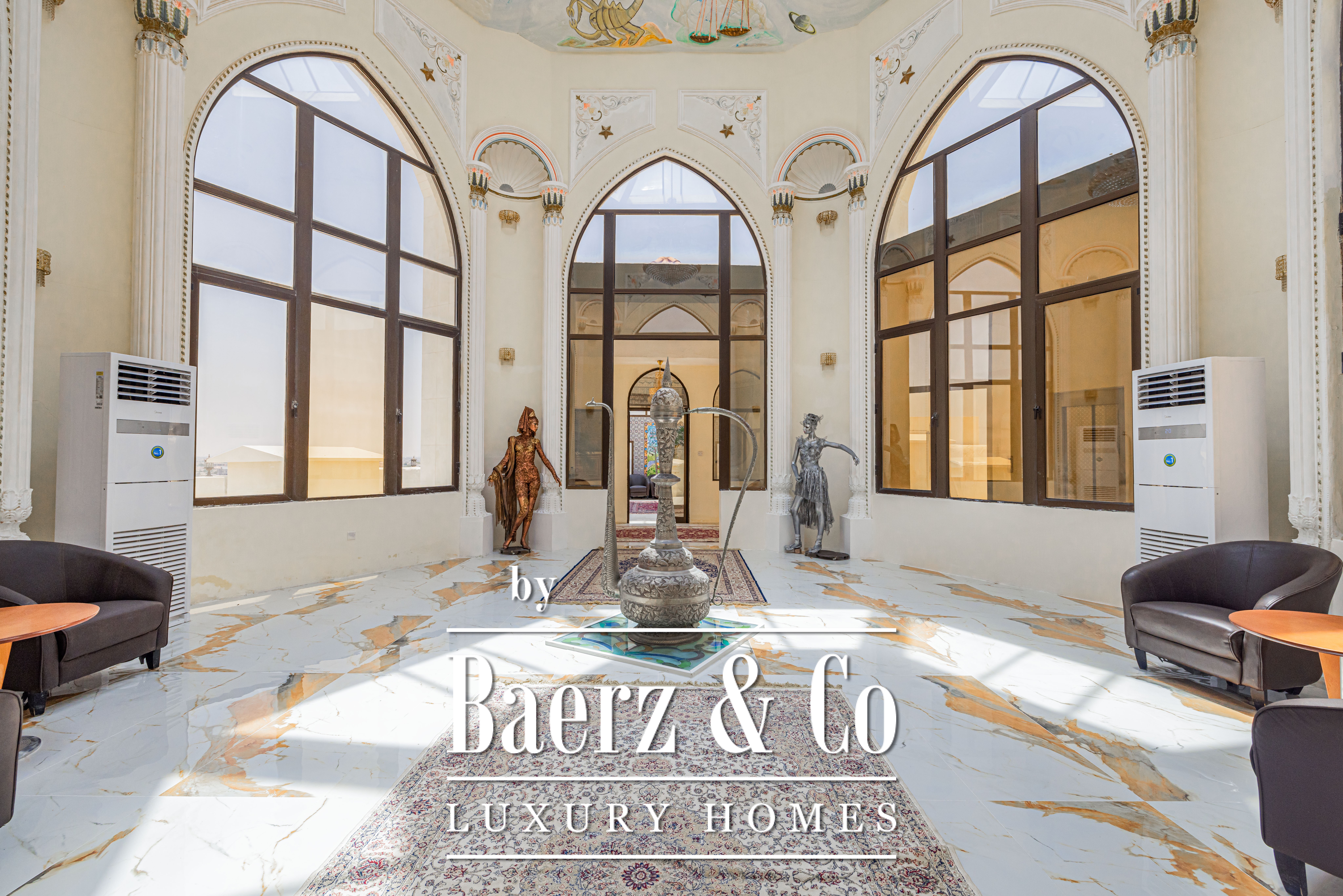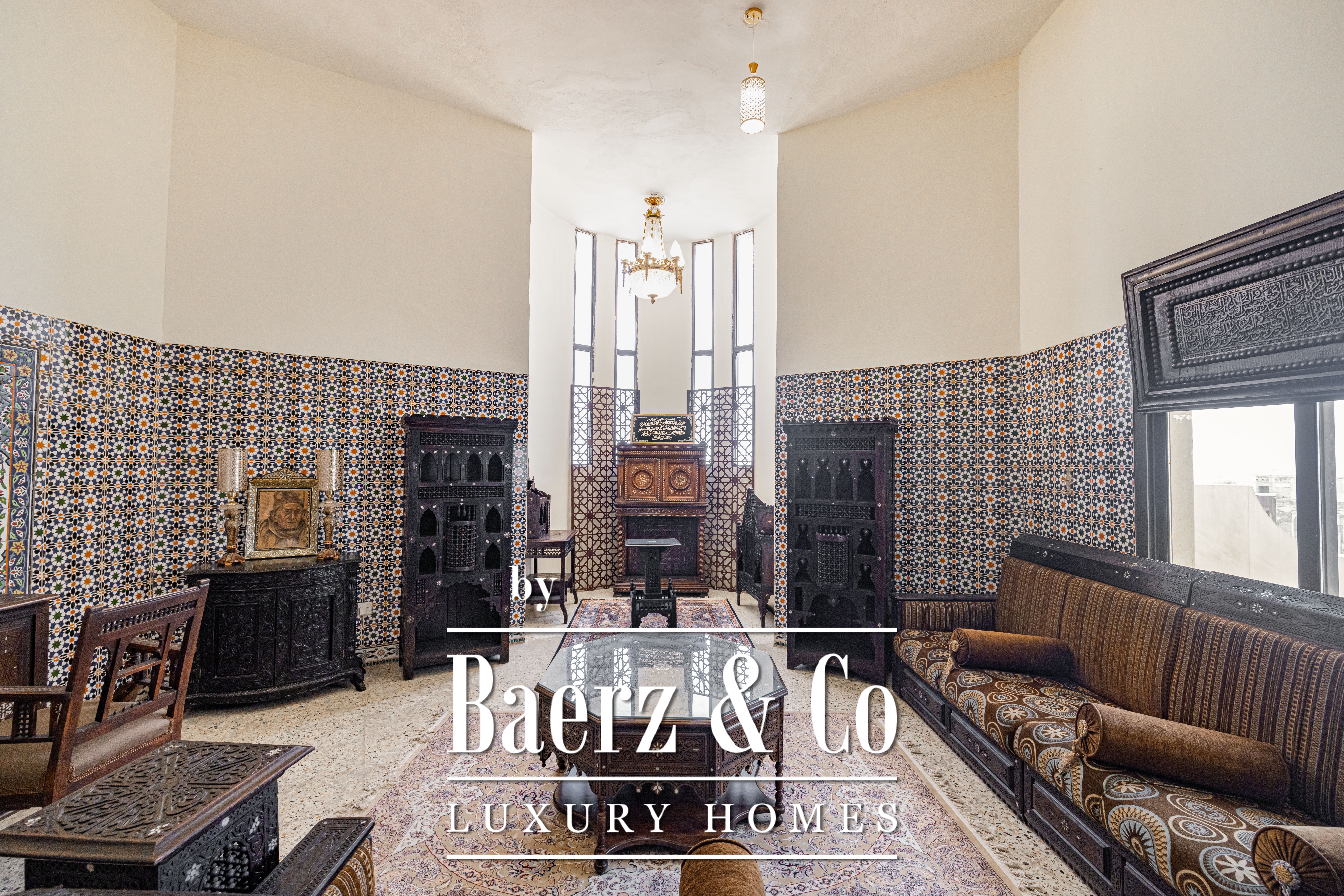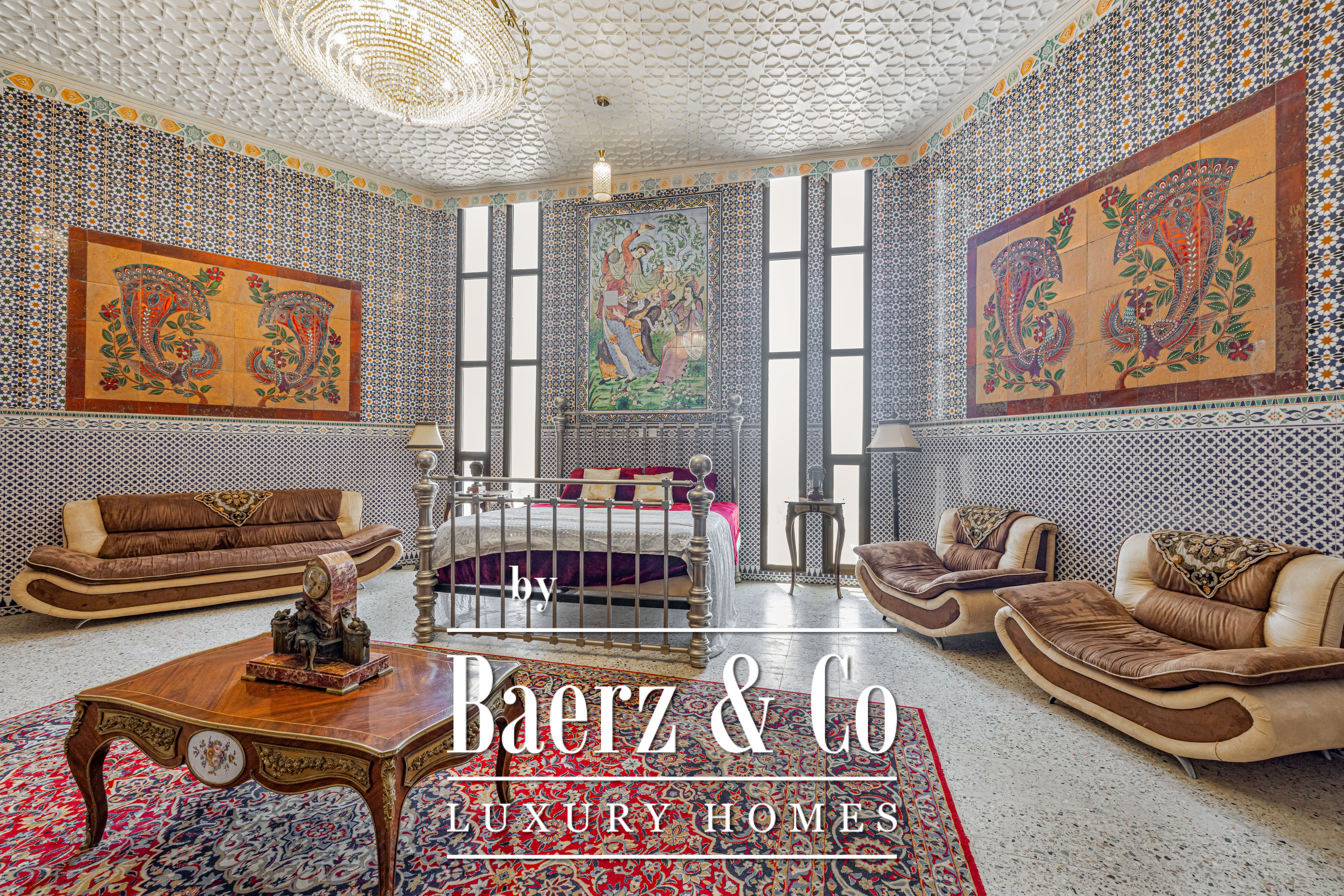 This magnificent estate is adorned with historical objects, furniture, and artworks from around the globe, including exquisite pieces from Syria, Morocco, India, and China. You'll marvel at the hand-painted walls and mosaics that add a touch of elegance to every corner.