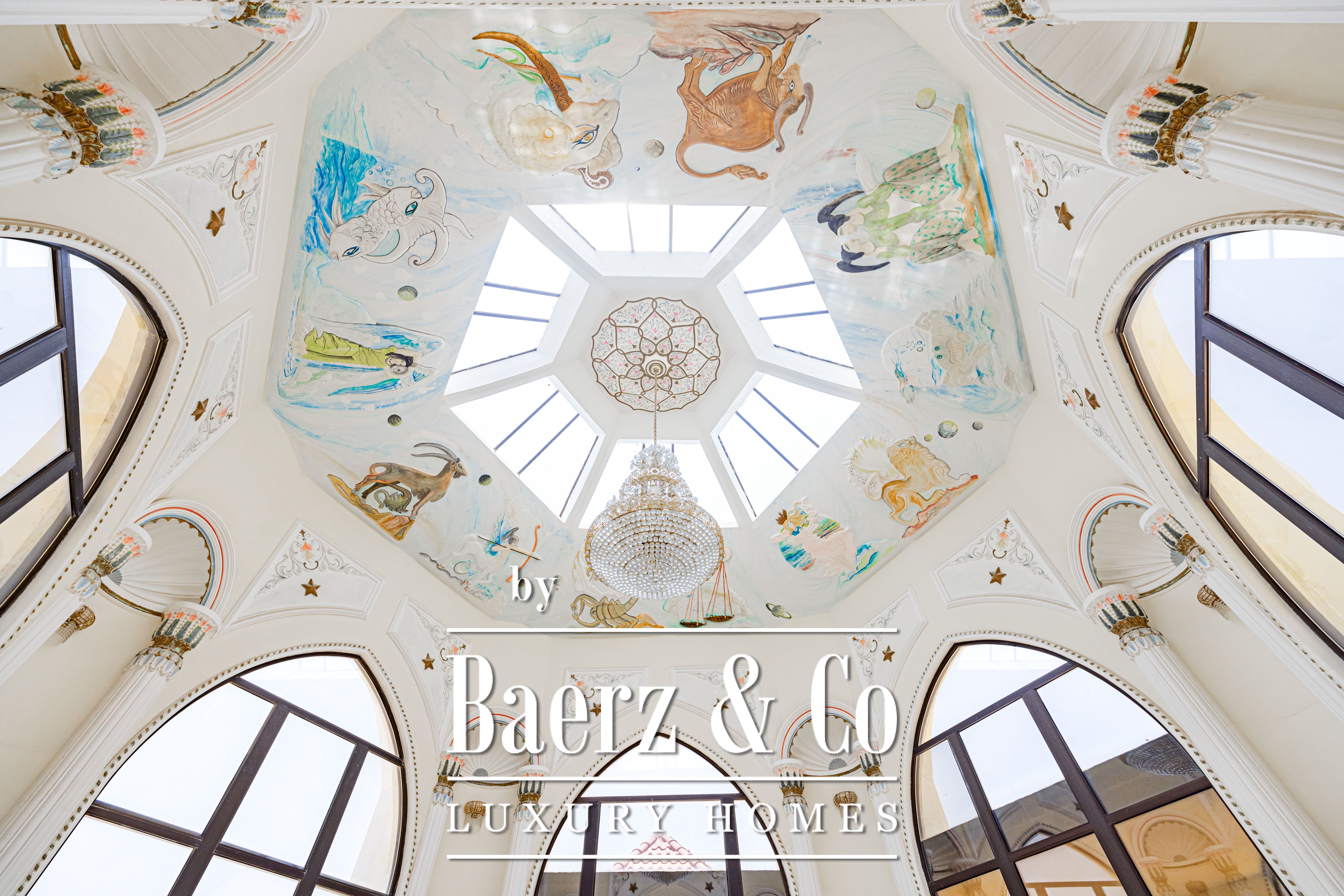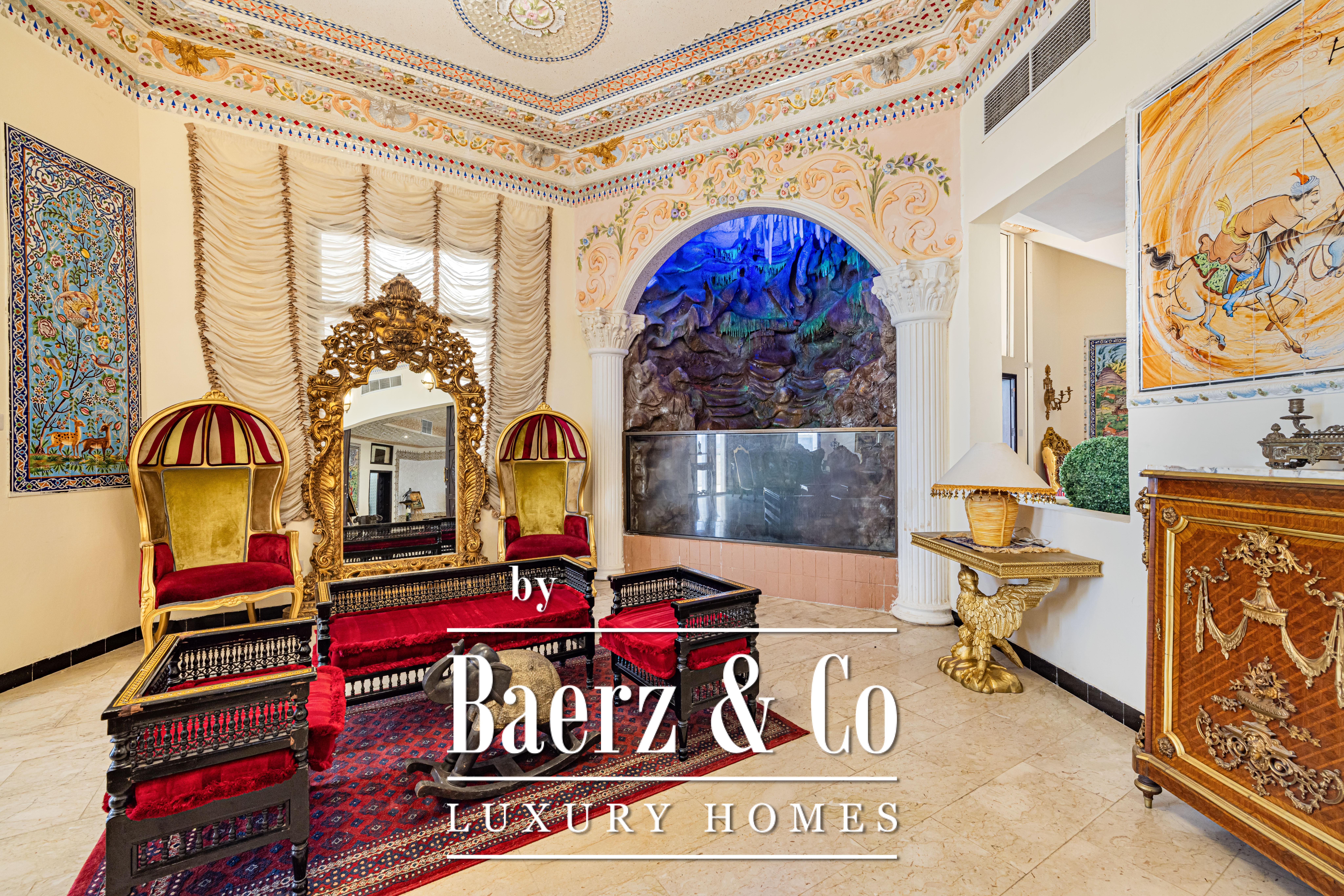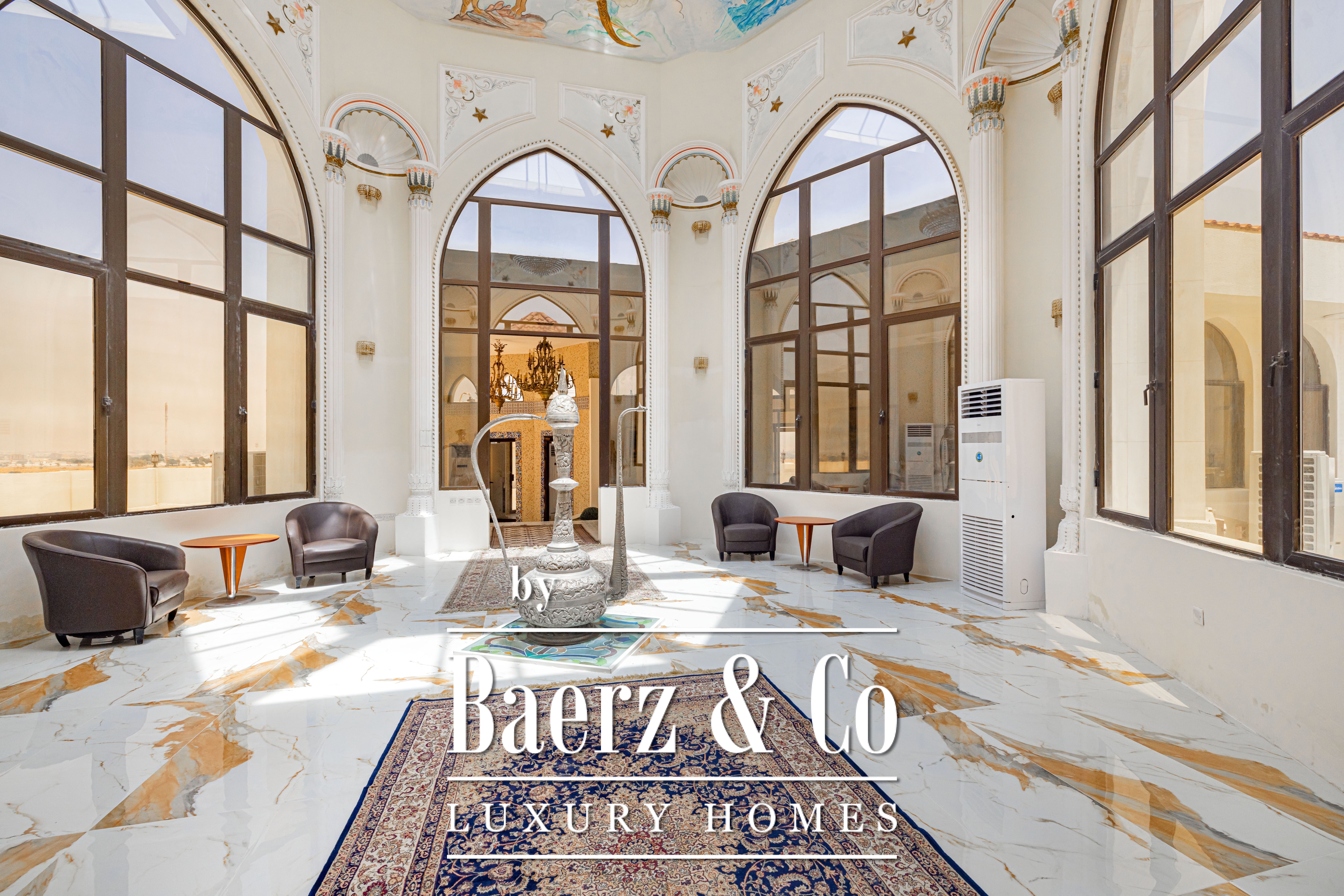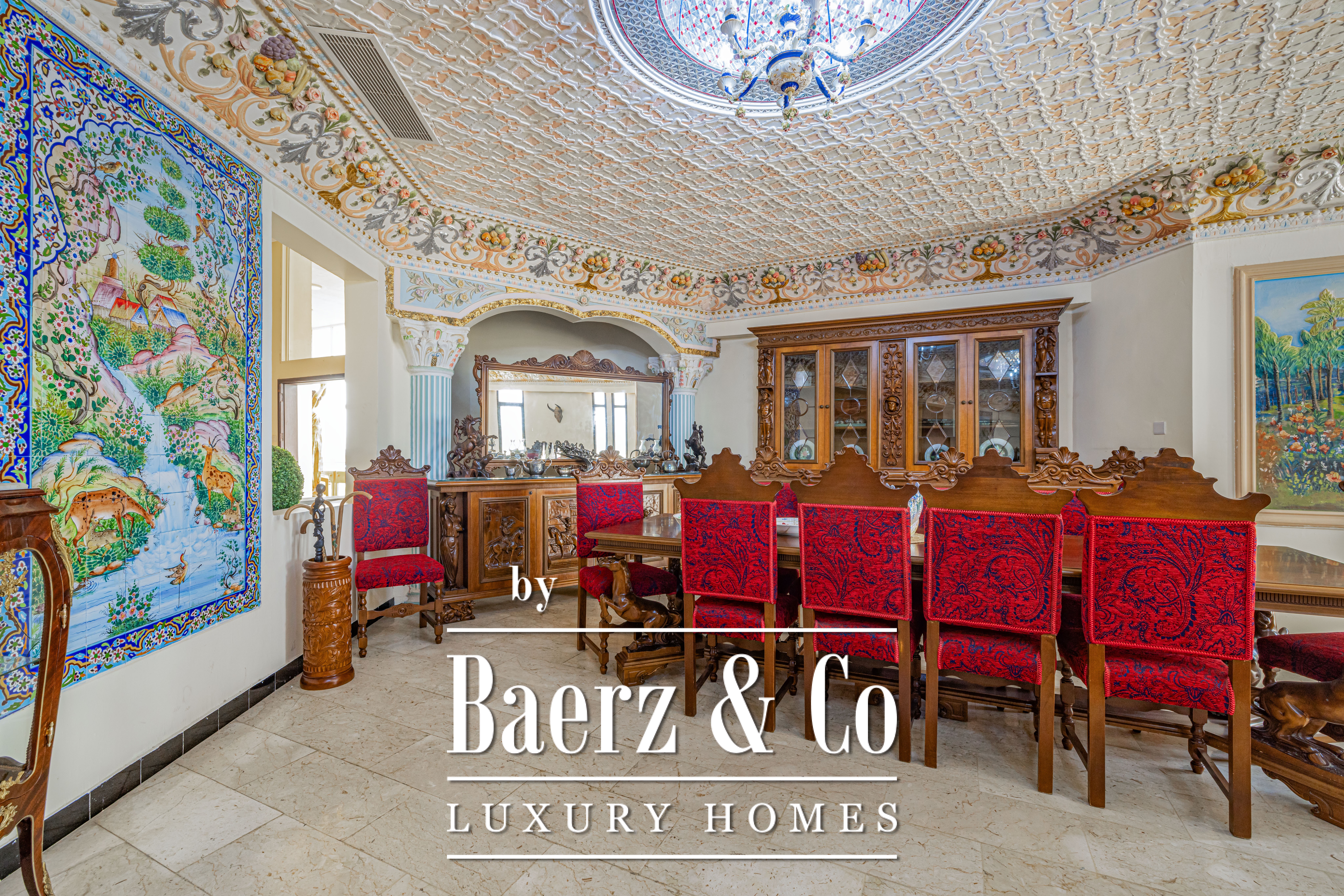 This magnificent estate is adorned with historical objects, furniture, and artworks from around the globe, including exquisite pieces from Syria, Morocco, India, and China. You'll marvel at the hand-painted walls and mosaics that add a touch of elegance to every corner.