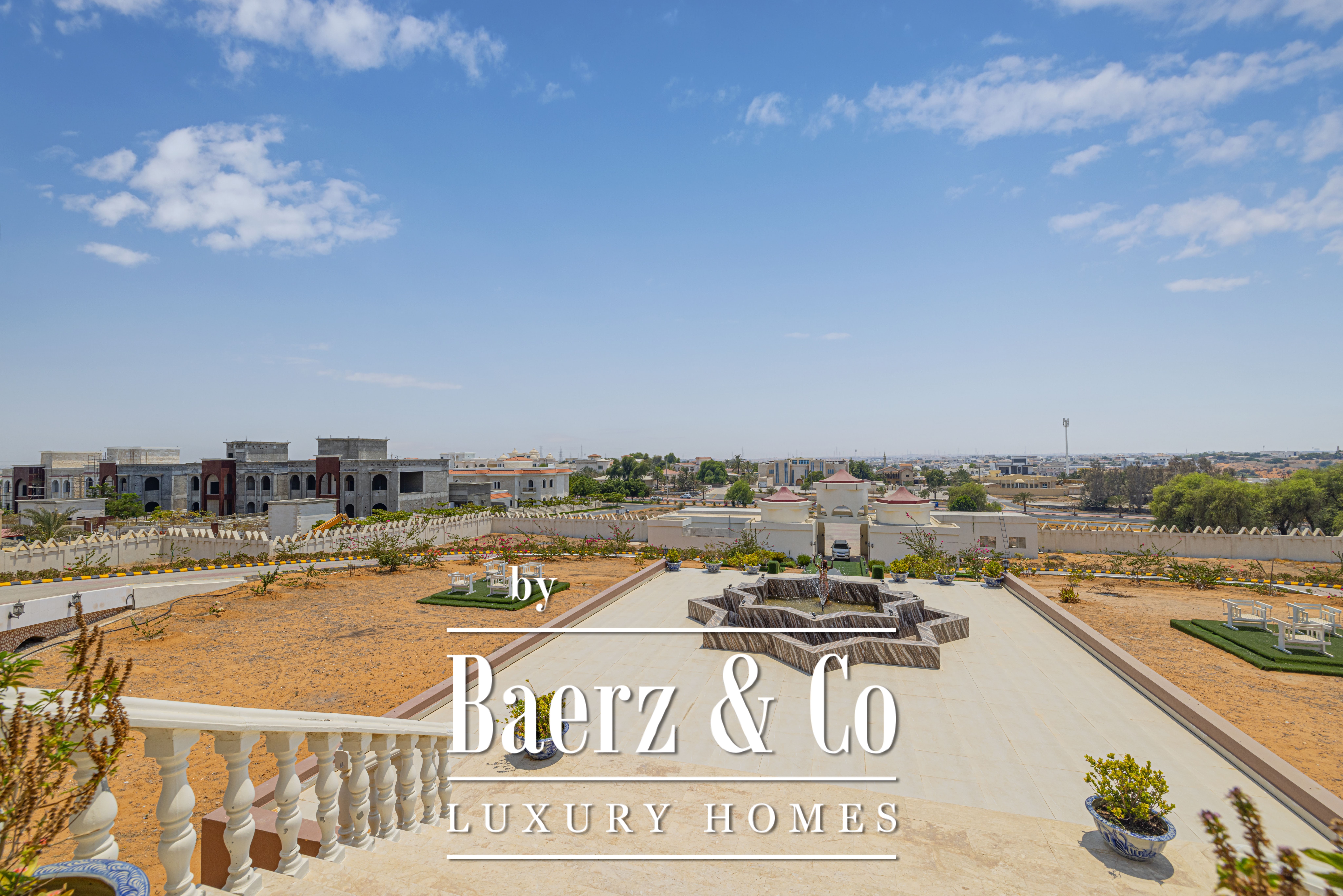 The palace sits on a vast 200,000 sq ft plot on a prominent hill and boasts 20 distinct bedrooms, each one unlike the other, 20 luxurious bathrooms, and 8 grand halls. With a sprawling 100,000 square feet of built-up area, there's ample space to explore and enjoy. Additional features include a serene prayer hall, a well-equipped office, and a spacious kitchen.
