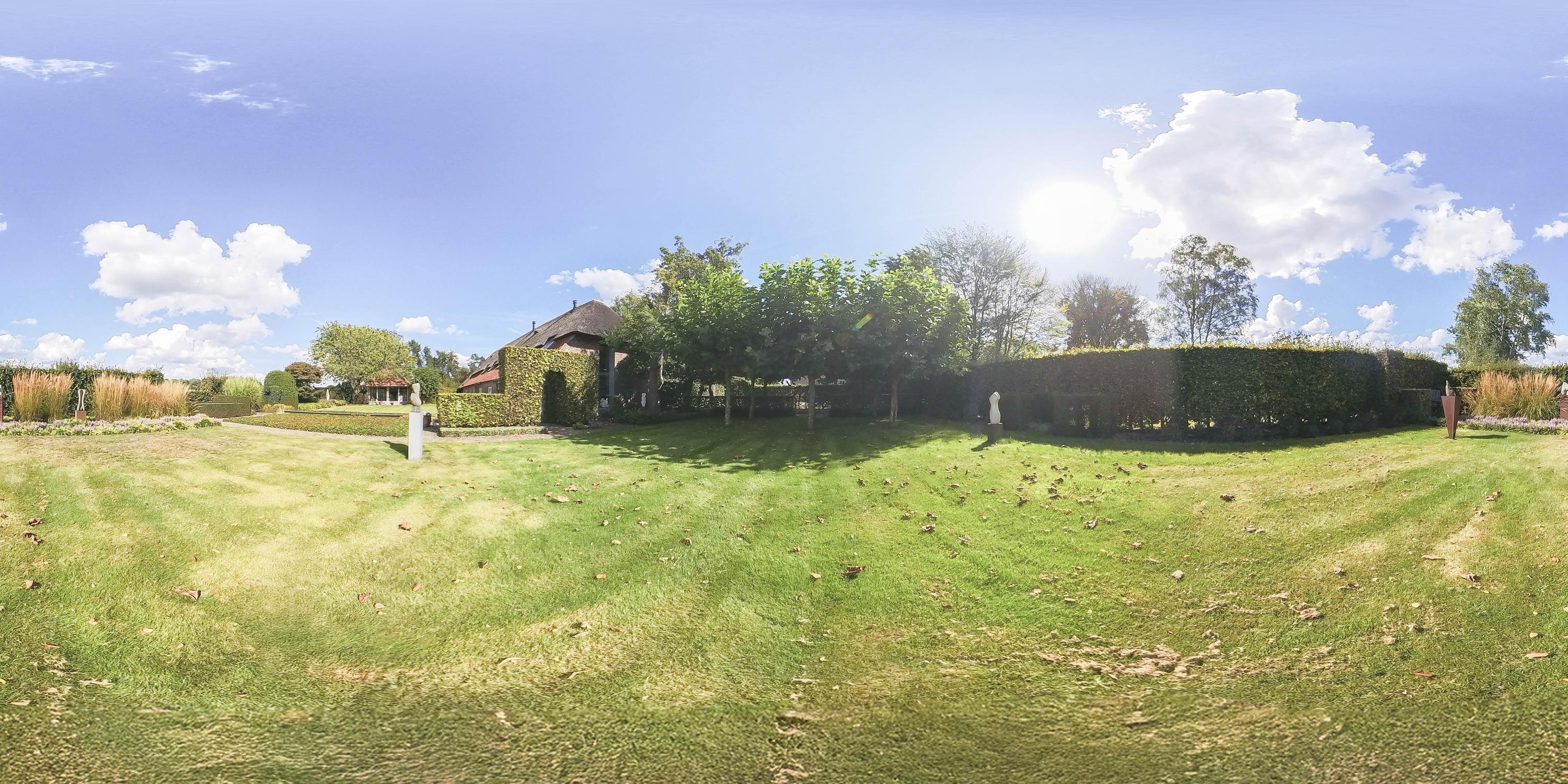Behind the house and on the sides is a beautifully landscaped garden. On the left side is a nice, spacious area with a lawn, plant borders, old baked clinker paving, and various beech hedges. At the rear, you can enjoy a beautiful view, a large pond (with biological filter), a spacious lawn, plant borders, and mature vegetation. The garden is well laid out and well maintained. There is a double driveway on the right side of the property. The garden even offers the possibility of keeping small animals. There is also a section of the garden with a “lovers' lane.” To the left of the house is a landscaped jeu-de-boules court.