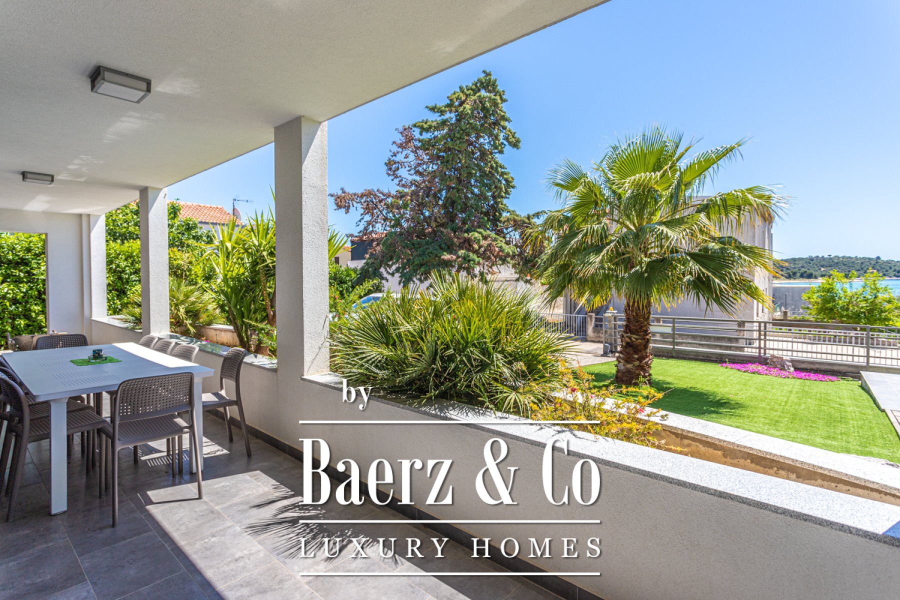Modern, completely renovated family villa located in a beautiful small bay in Rogoznica in an ideal micro location with very little traffic, in the second row to the sea, with landscaped garden and parking. It is divided into three floors; ground floor with living area that includes kitchen with dining area, two en suite bedrooms, guest toilet and laundry room. The ground floor leads to a spacious outdoor terrace
