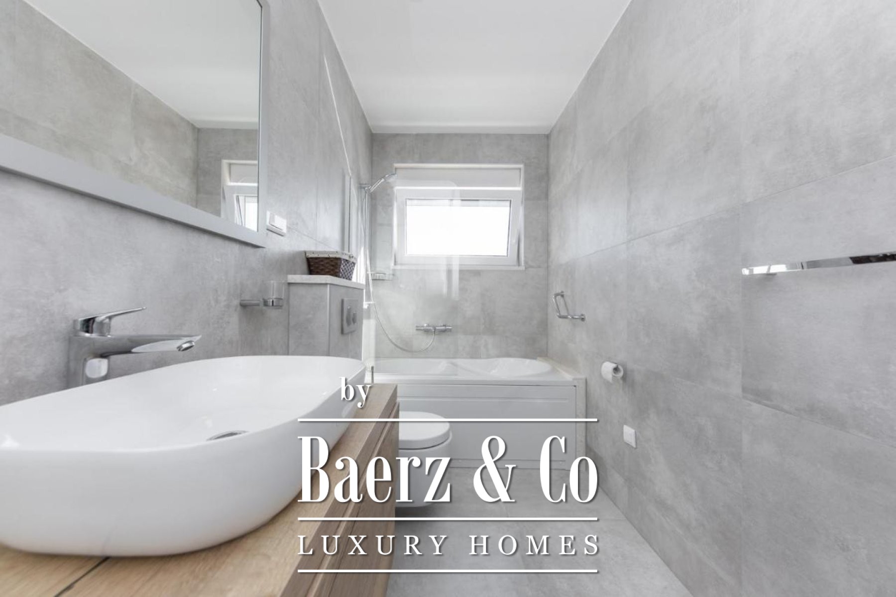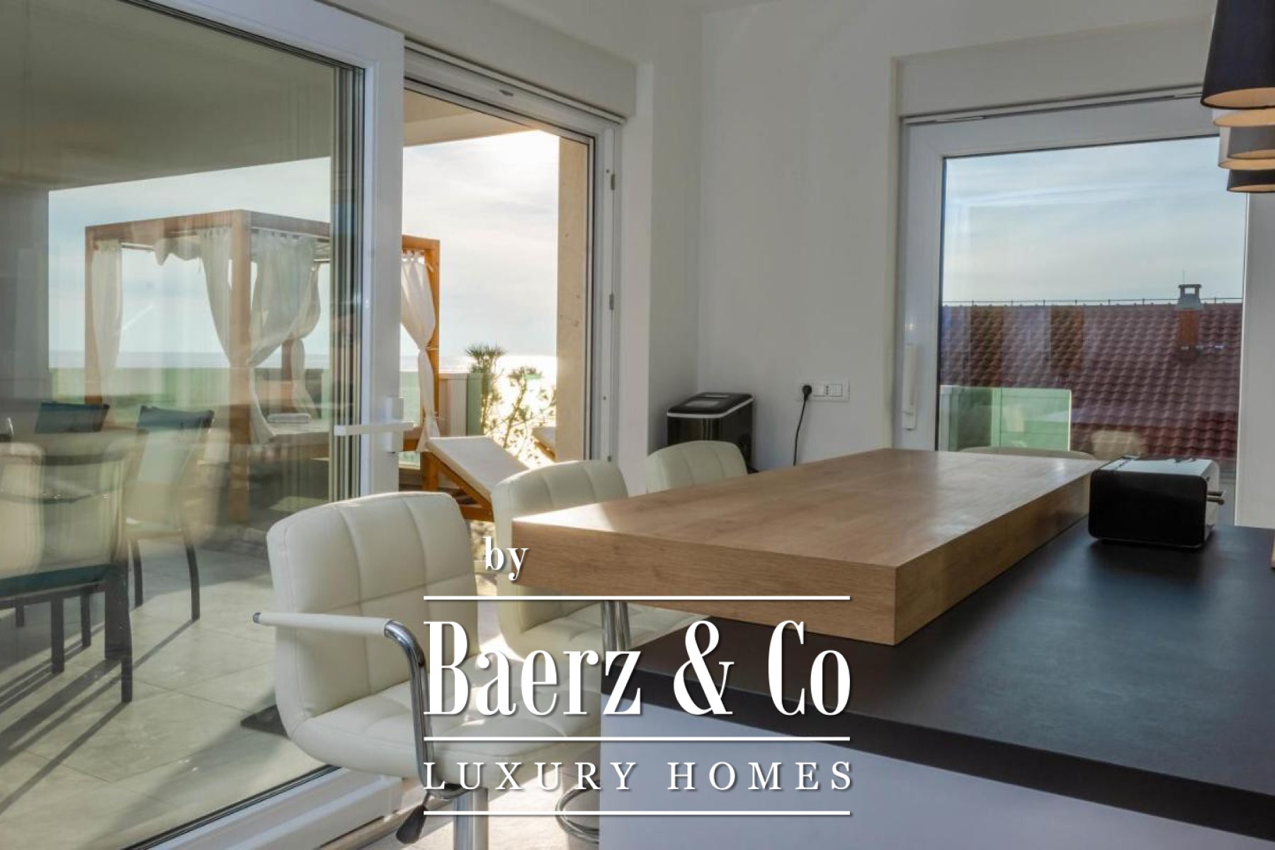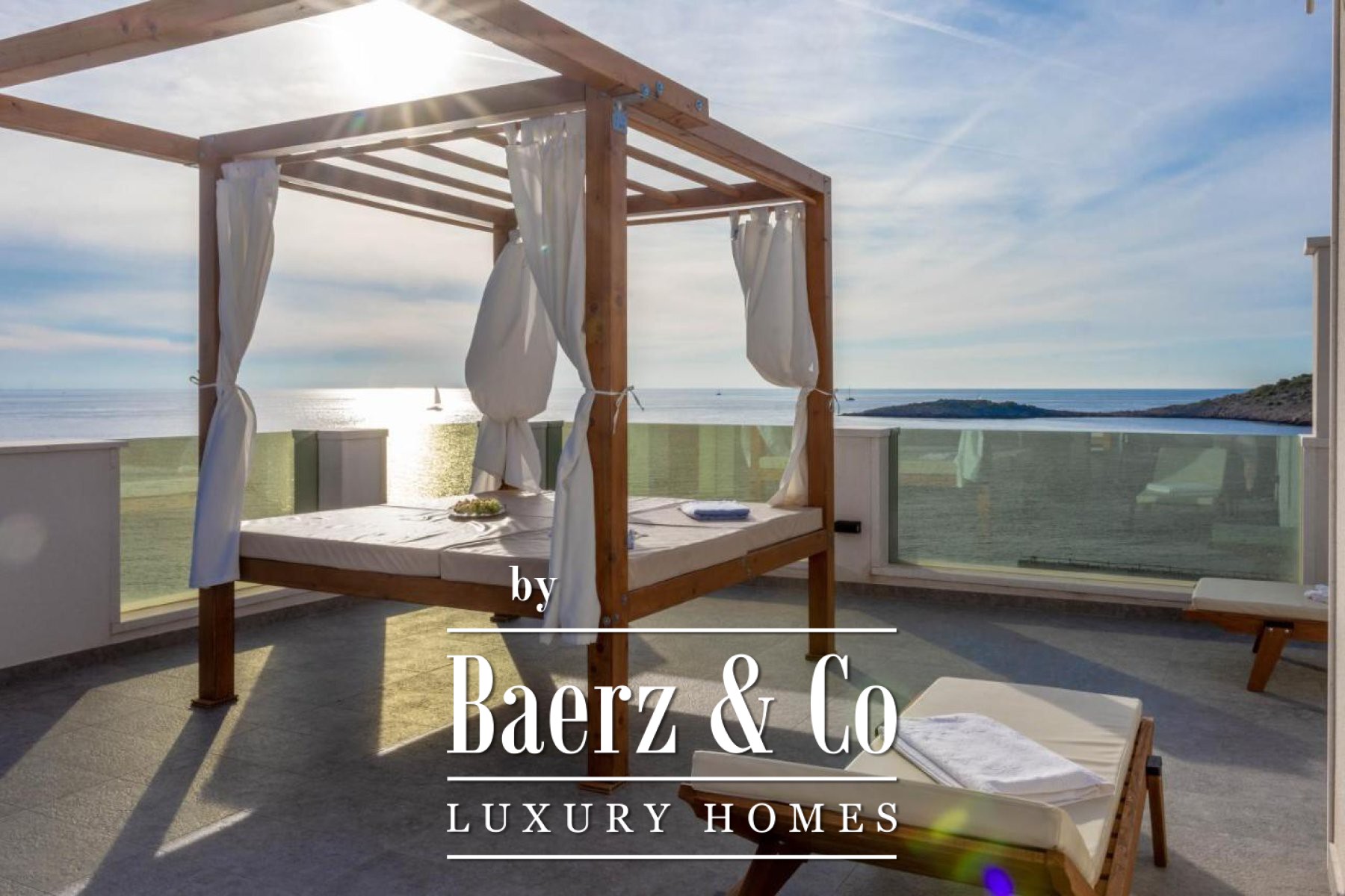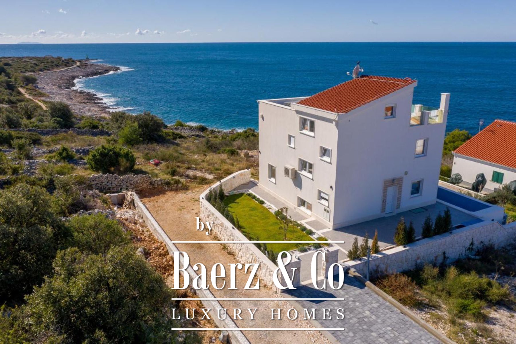 The newly built luxury villa near Rogoznica spreads over four floors and has a living area of 380 m2, and is about fifty meters from the sea. The ground floor consists of two parts. In the first part there is a garage, gym, engine room, bathroom, living room and kitchen. In the second part there is a bathroom, kitchen and living room with access to two covered terraces with a beautiful open sea view. On the ground floor there is an outdoor parking and a swimming pool. The