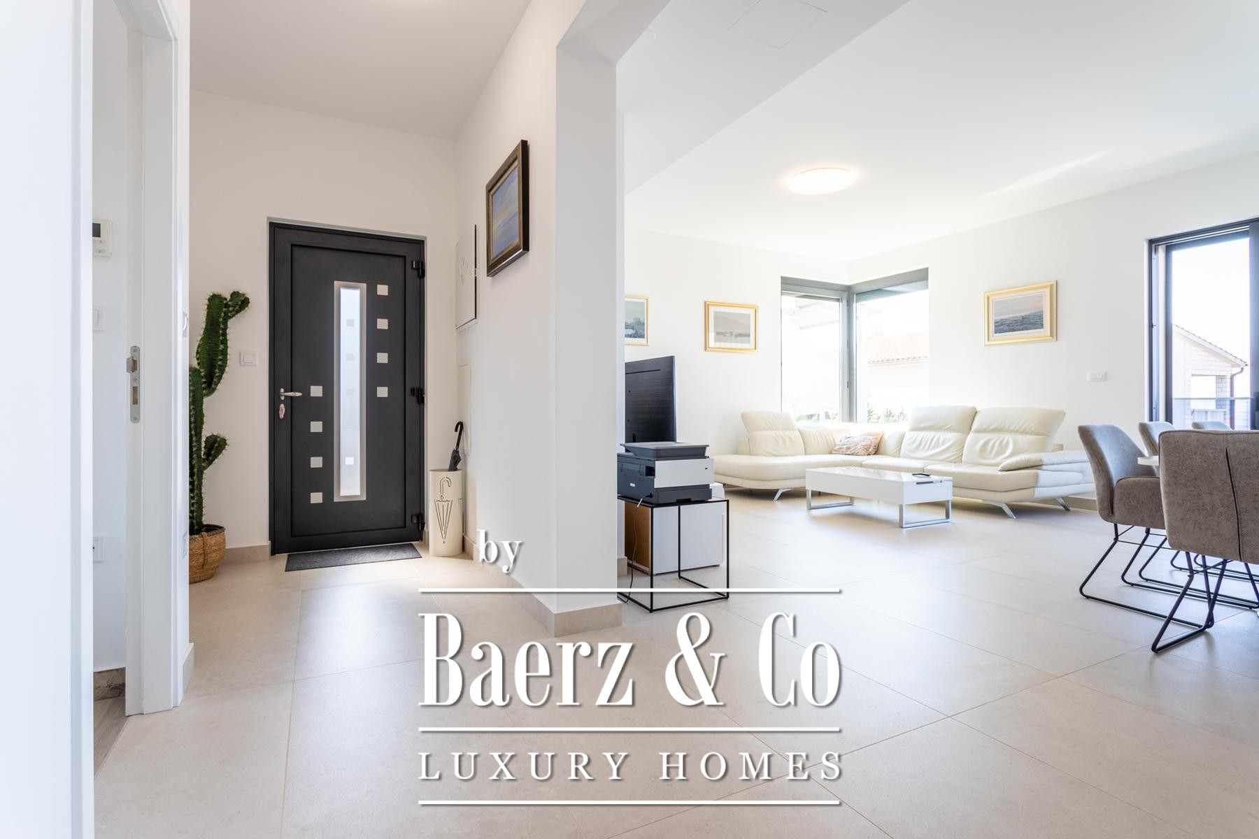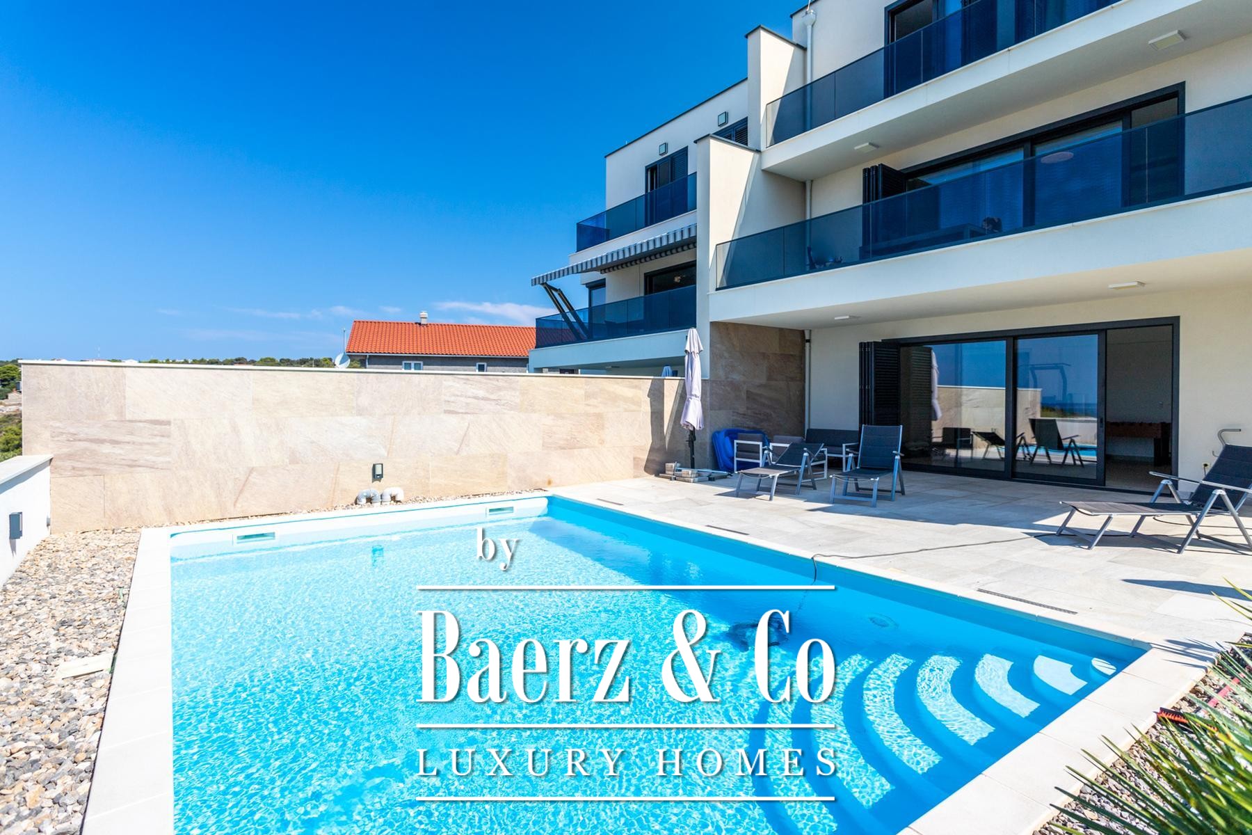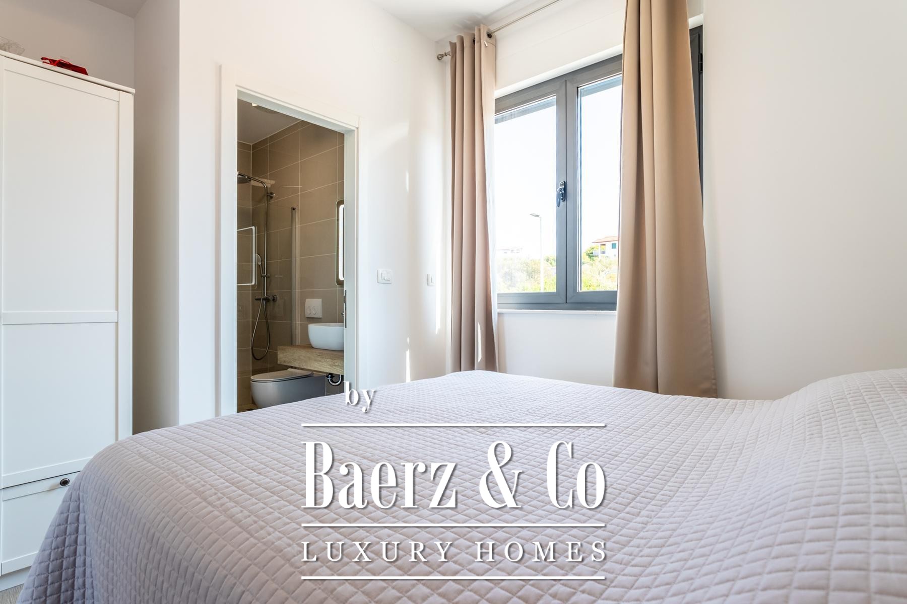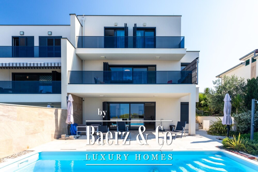 Materials are uncompromising: reinforced concrete, Italian ceramic finishes, aluminium carpentry with triple glazing, and sophisticated Daikin multisplit climate systems powered in part by solar energy. Four outdoor parking spaces, a 20 m³ water tank, and A+ energy performance support comfortable year-round use. Proximity to Frapa marina, luxury hotels, Split Airport, and major transport routes situates this luxury villa for sale in Rogoznica at the nexus of discretion and accessibility.