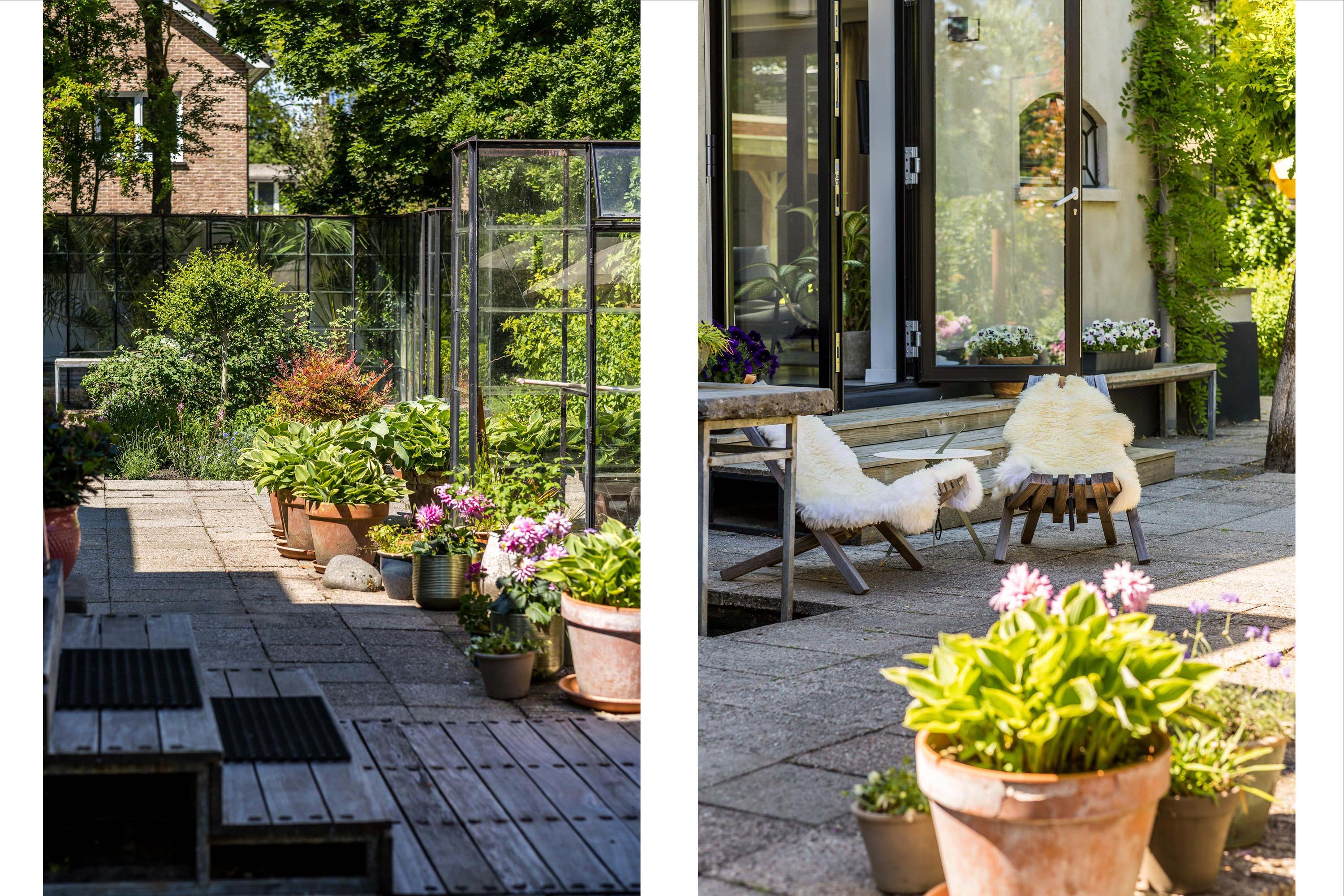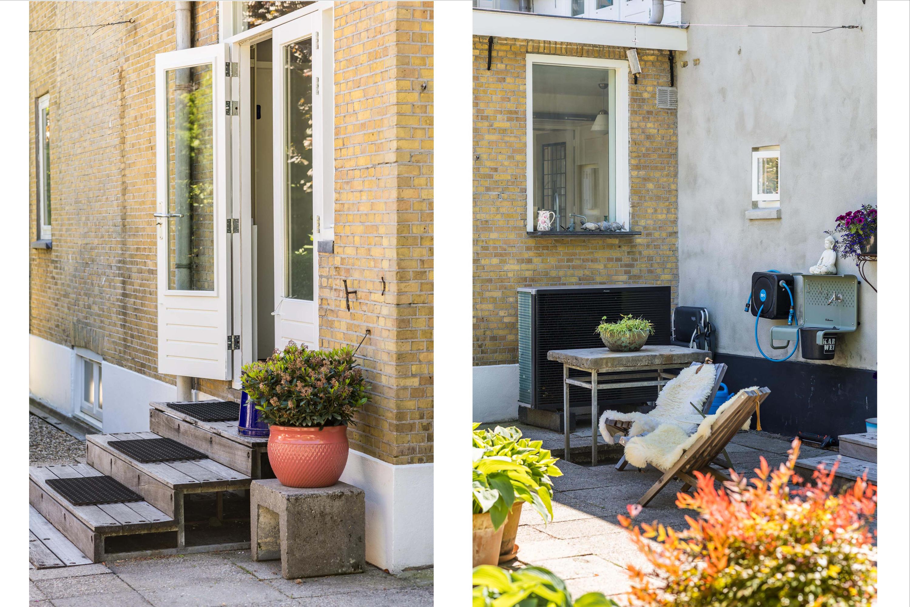 The front garden is beautifully landscaped with hedges, gravel paths and various plants. A side garden with driveway offers on-site parking, a carport with a charging station and a large storage room. The other side garden and the backyard together form a beautiful main garden area. At the back of the garden is a food forest with fruit trees, herbs and soft fruit. This garden has been landscaped under architecture and offers a lot of privacy and various sunny seating areas.