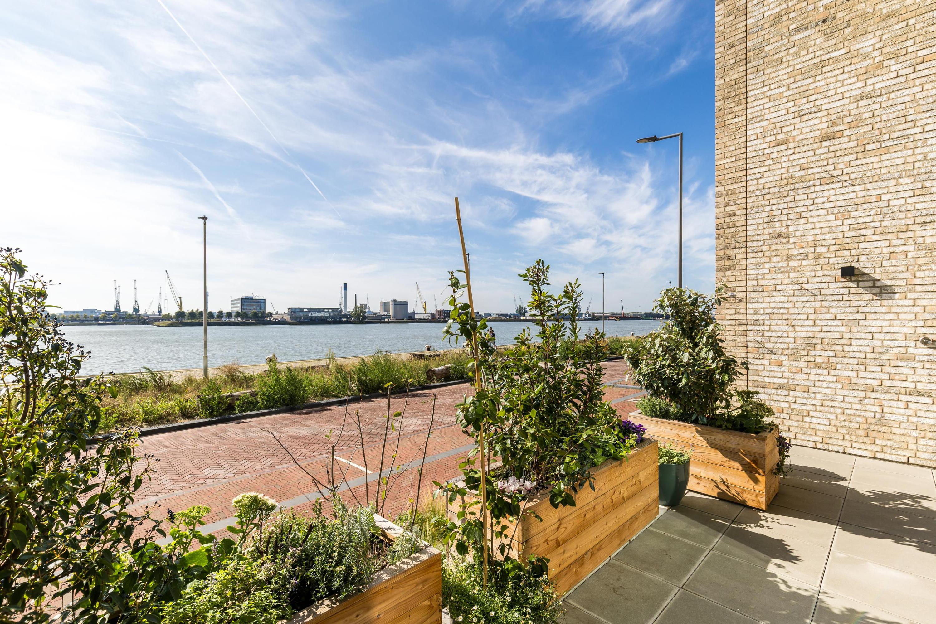 You enter the apartment via your own veranda/sun terrace on the ground floor (facing the sunny south and overlooking the Maas River). Here you'll find the luxurious kitchen/diner, fully equipped and designed for enjoyment, whether you're hosting an intimate dinner or preparing a lavish meal for friends and family. Directly adjacent is a spacious indoor storage room, ideal for extra storage.