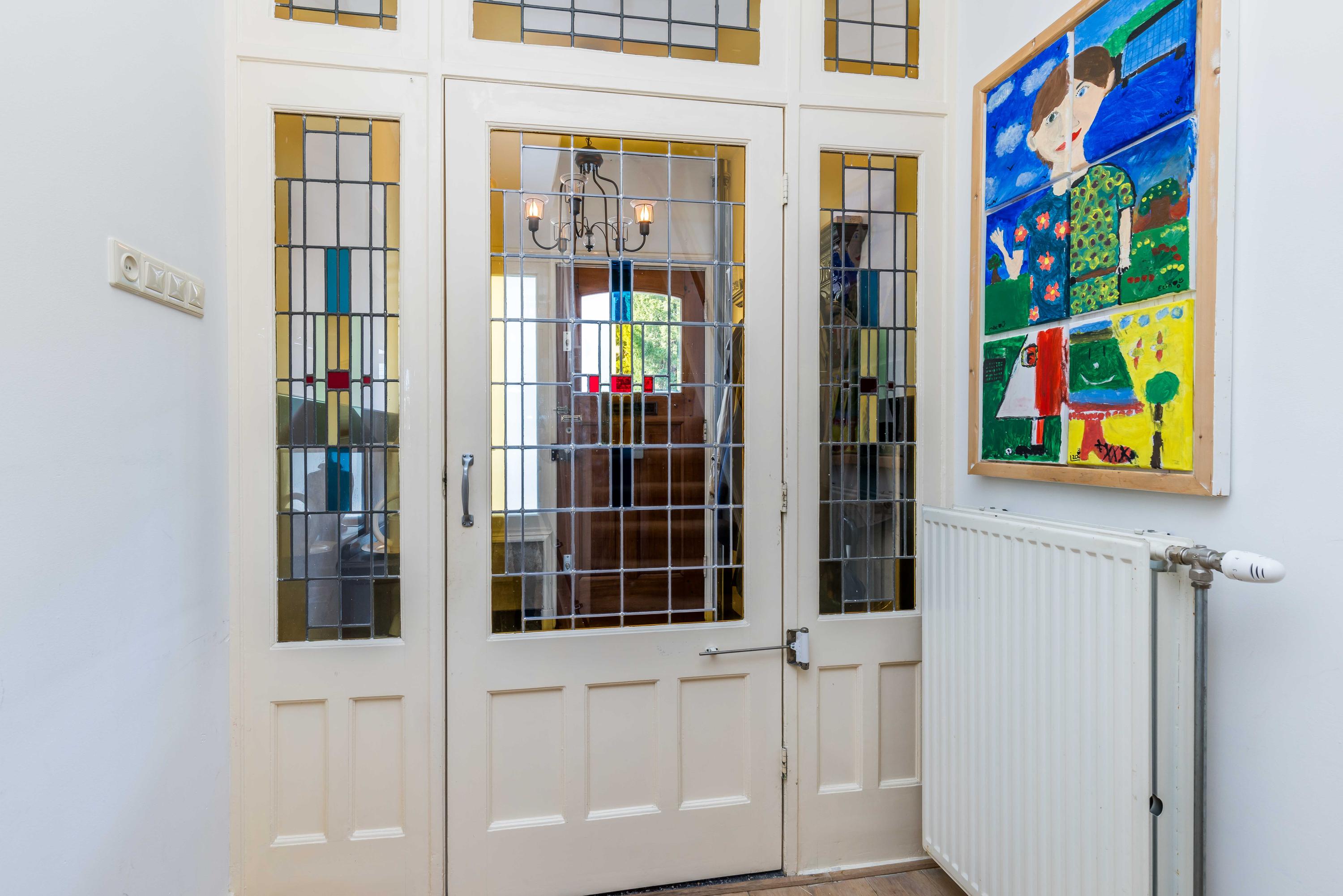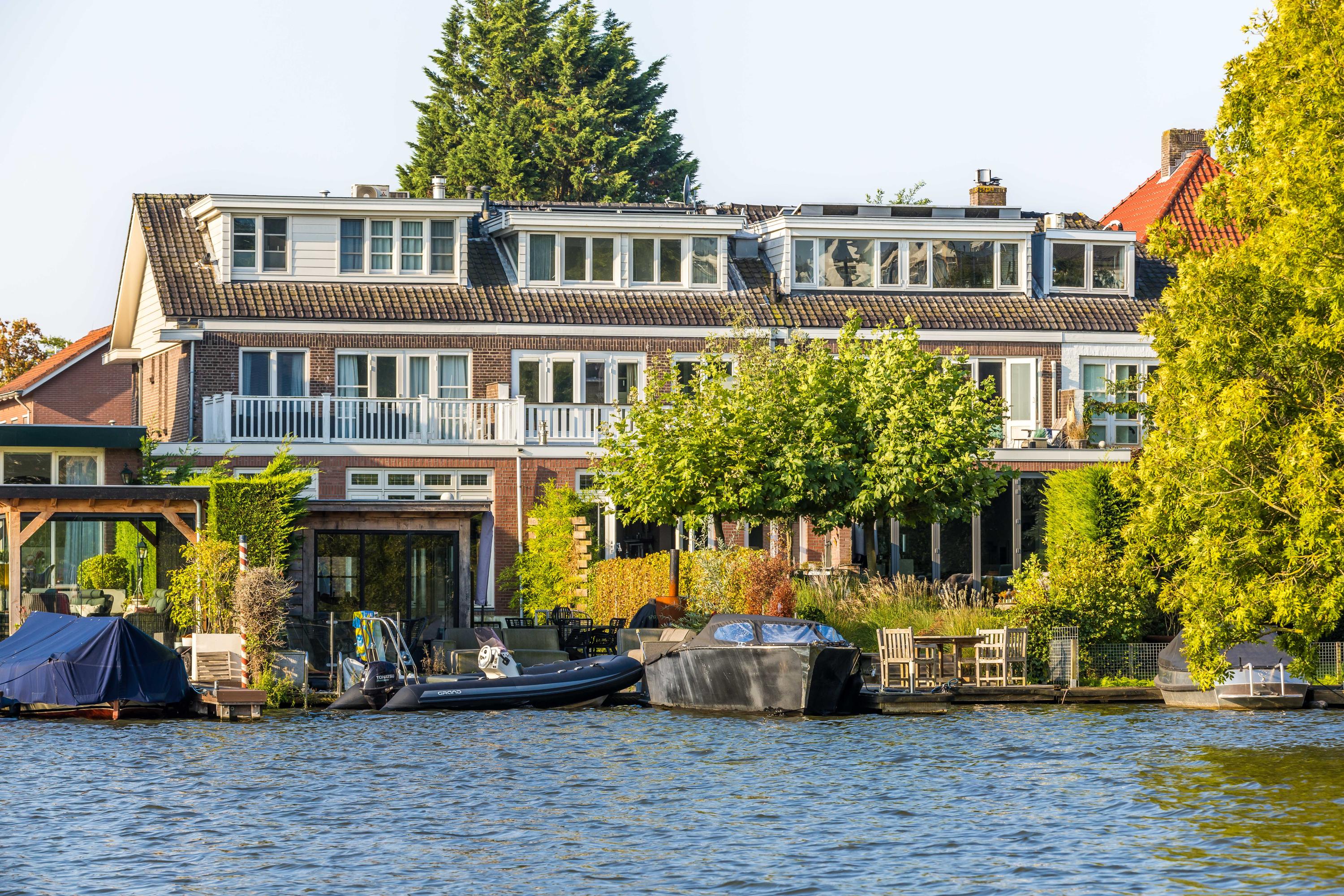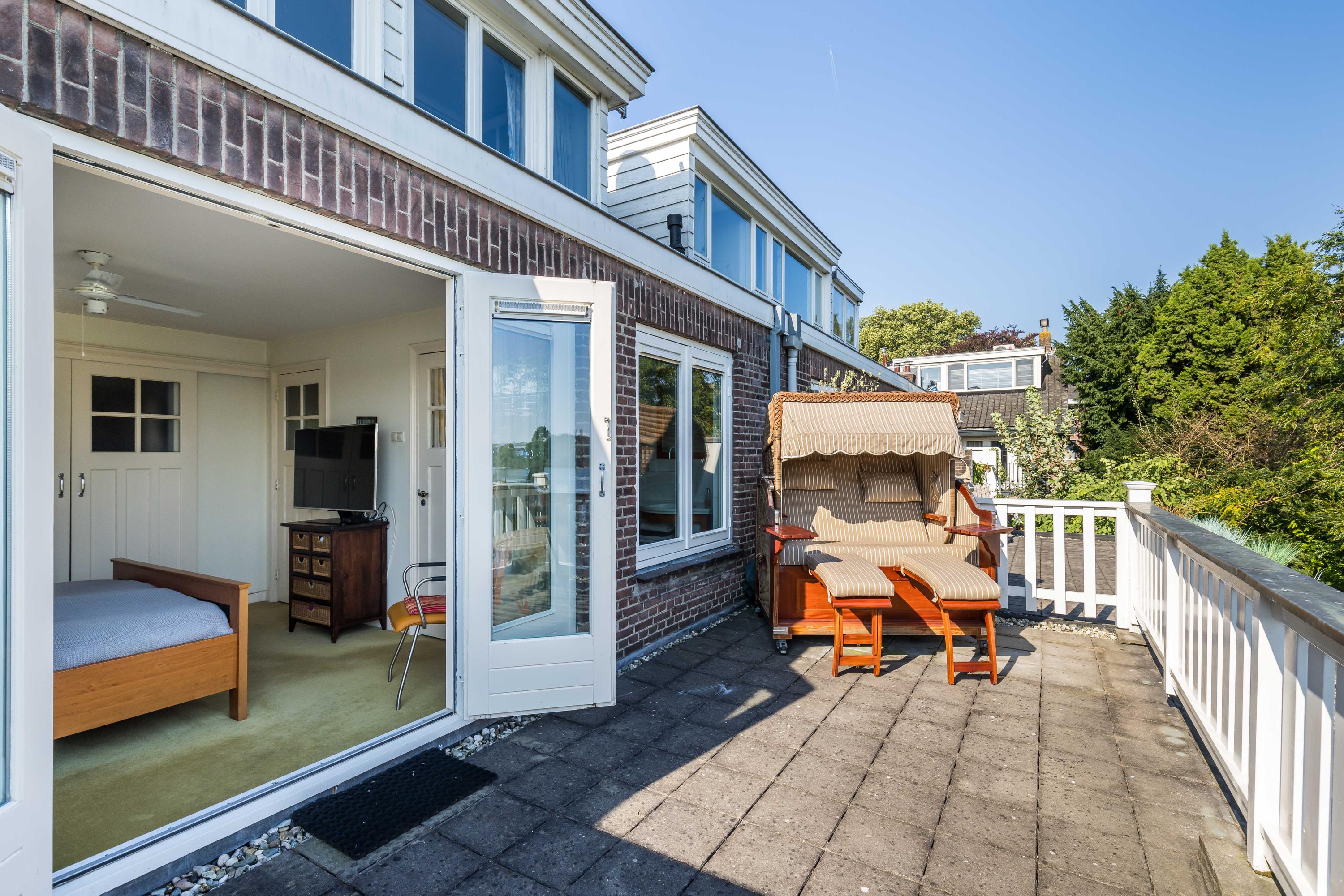 ground floor: entrance, vestibule with original marble wainscoting, granite floor and stained glass windows and draught door, hall with staircase, extra spacious toilet with toilet and washbasin, double doors to the living room and kitchen, originally the kitchen was at the rear, but now the open kitchen is at the front, which gives the extended living room a width of almost 6 meters over the entire width of the house, the living room has a well-positioned gas fireplace that you can sit around. By means of 2 Sola tubes, a surprising amount of extra daylight enters the living room. From the living room, patio doors give access to the terrace and the back garden (also largely piled) with, among other things, a terrace/deck on the water where you can relax. There is room for 1 sloop/boat at the jetty.