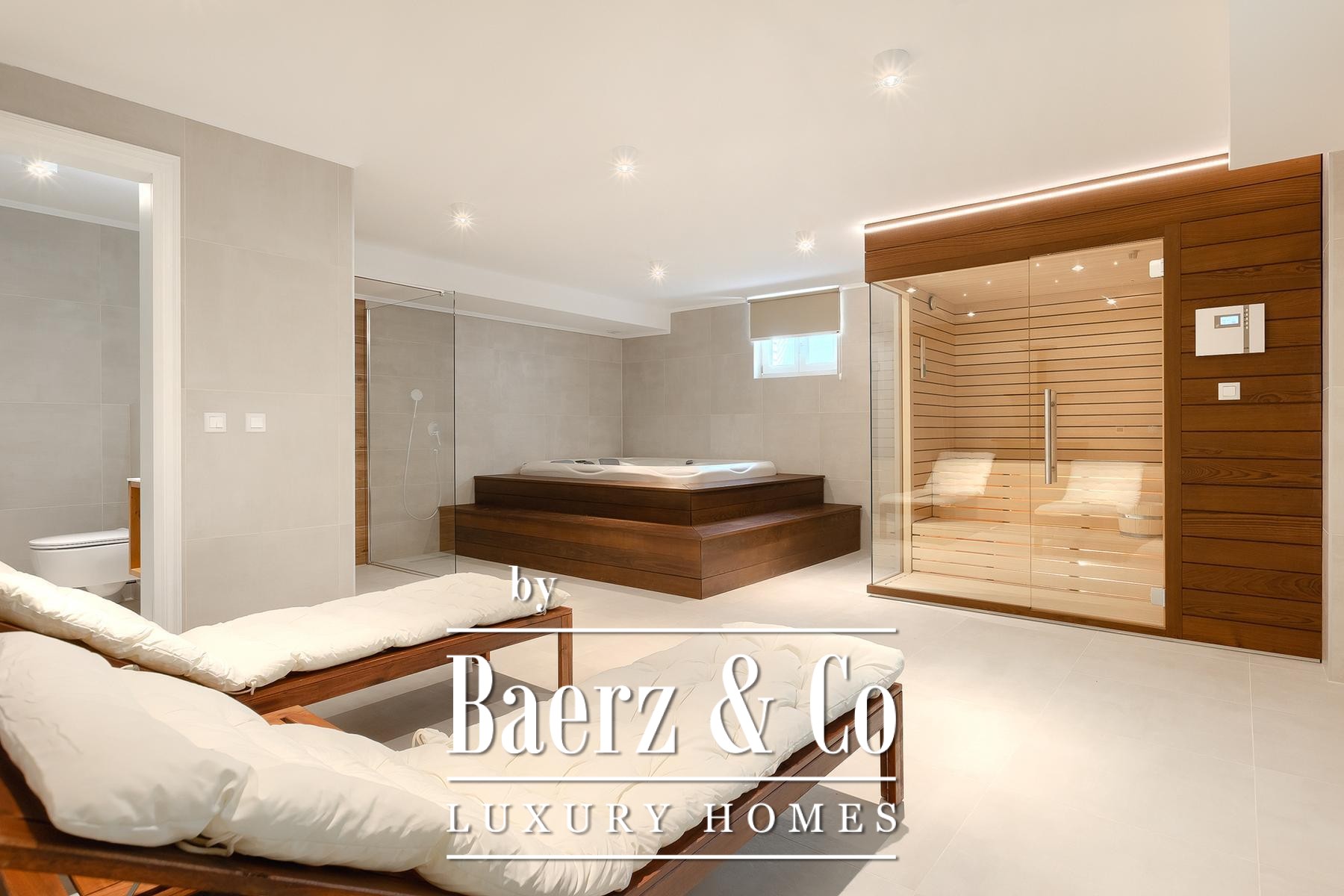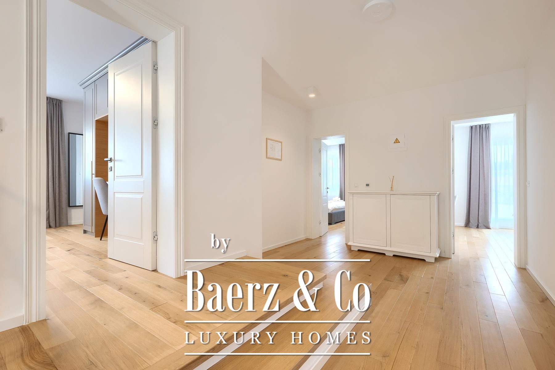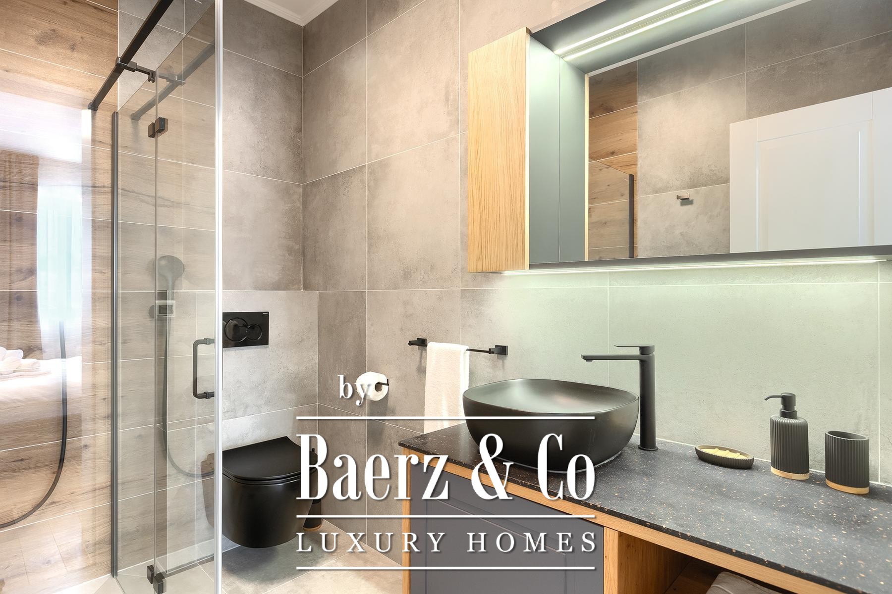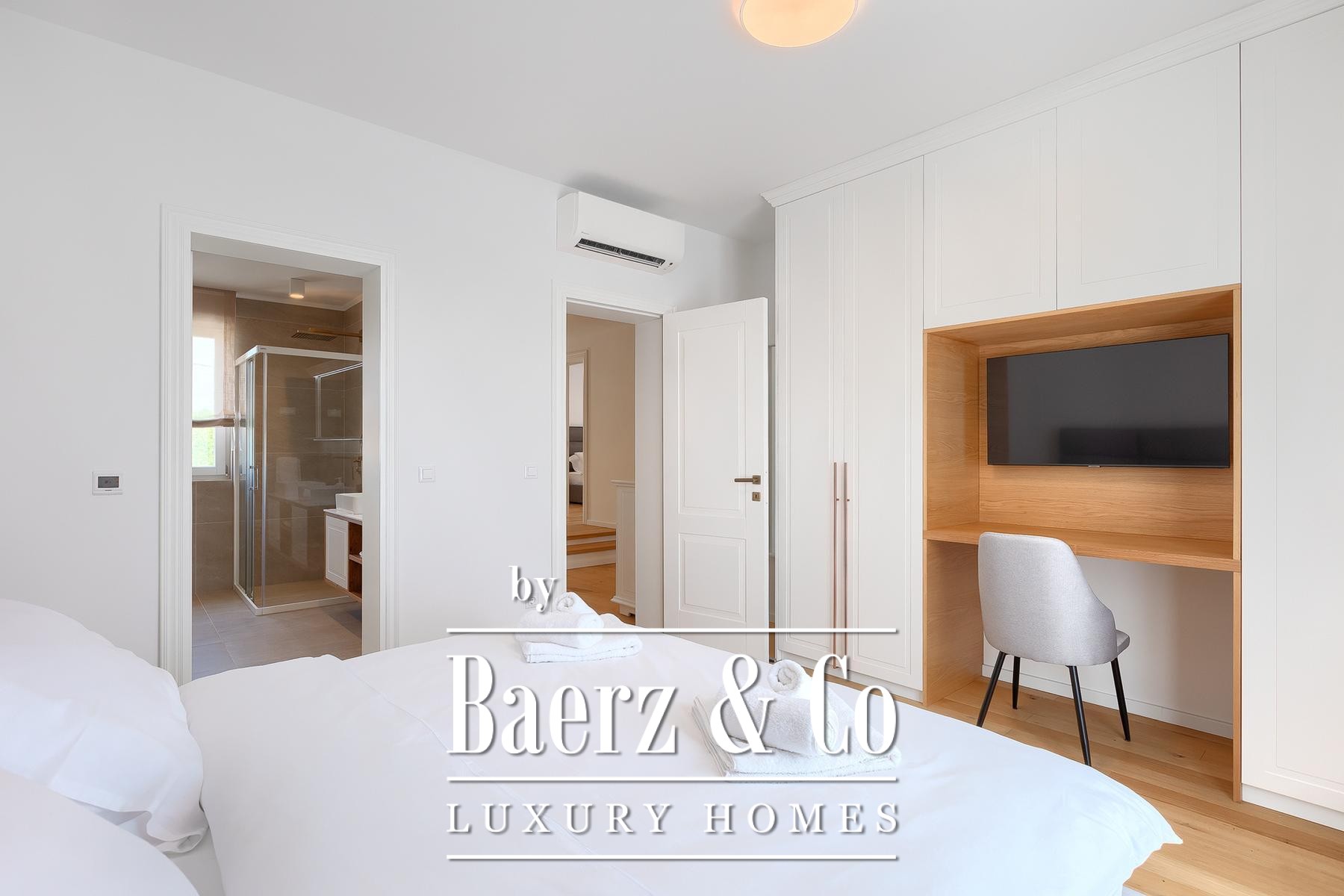 On the upper floor, three bedrooms each have dedicated bathrooms, while the master suite opens onto a balcony. Craft and materiality define every detail, from Slavonian oak carpentry with triple-glazed windows to custom-made furnishings and advanced climate control with underfloor heating and Daikin air conditioning.