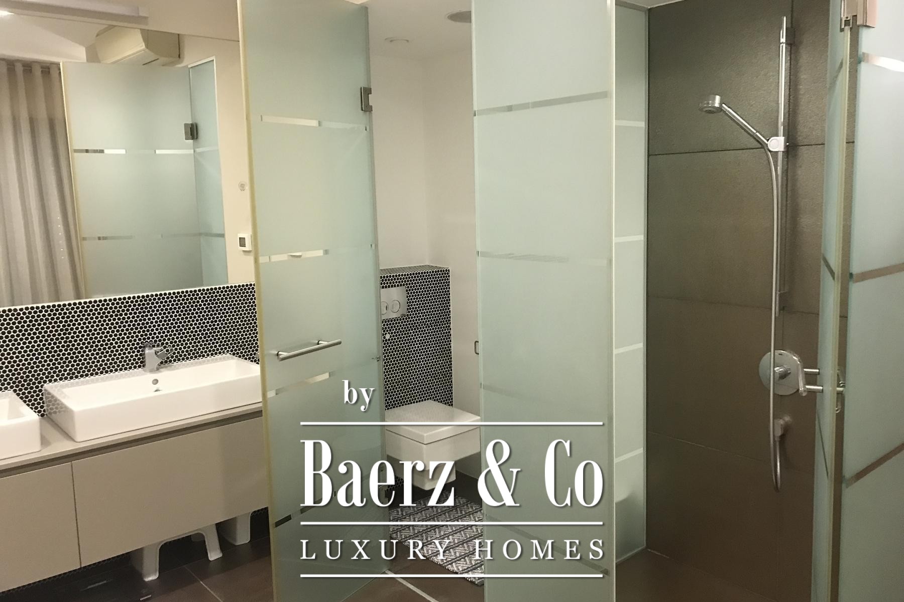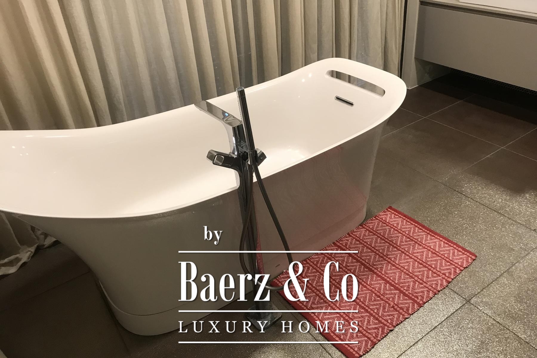 Each detail contributes to a balanced flow throughout the home. The primary ensuite bedroom features a spacious bathroom with a separate bathtub and shower, double sinks, and a walk-in closet, while two additional bedrooms provide flexibility for family or guests. Three bathrooms and a guest toilet serve the residence, ensuring privacy and convenience. Natural light fills the spacious kitchen, dining, and living area, which seamlessly connects to the terrace, inviting the rhythm of outdoor living.