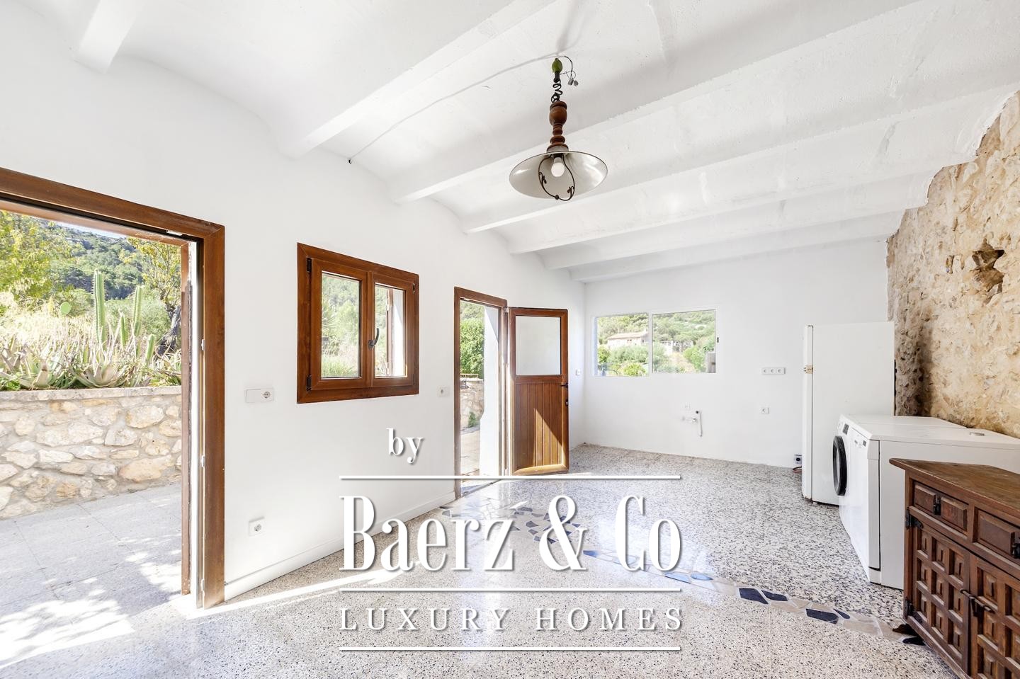 In the heart of the S’Arracó valley lies this Mallorcan stone finca – a serene retreat surrounded by a blue, Mediterranean landscape. With a plot of almost 3,000 m², the property blends rustic charm with modern comfort.