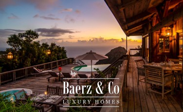 ultra-secluded mountain hideaway. In addition, the upscale Queen’s Gardens Hotel & Spa is currently being operated as a top-rated 12-suite boutique property (flagg-free), but could potentially be repurposed as a guest house to the villa/development. Access to Saba is easy via daily flights to Sint Maarten, where plentiful global connections are available through Princess Juliana International Airport.