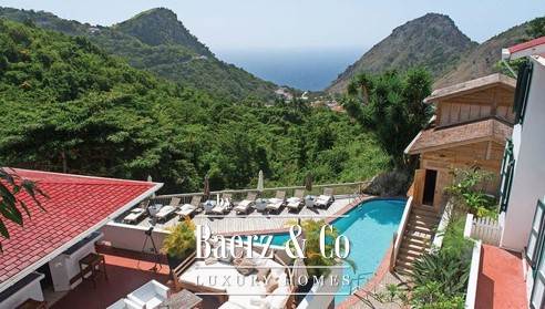 A unique opportunity; you can take possession of 25 acres of prime property on the Island of Saba (Caribbean) including a luxury designer villa, a 12-suite hotel, and more than 30 undeveloped plots with fantastic unencumbered views, ranging in size from 500 square meters to 5,000 square meters. The fabulous Haiku House, built in the 90-ies, based on a 16th century Japanese villa-design, is a luxurious and