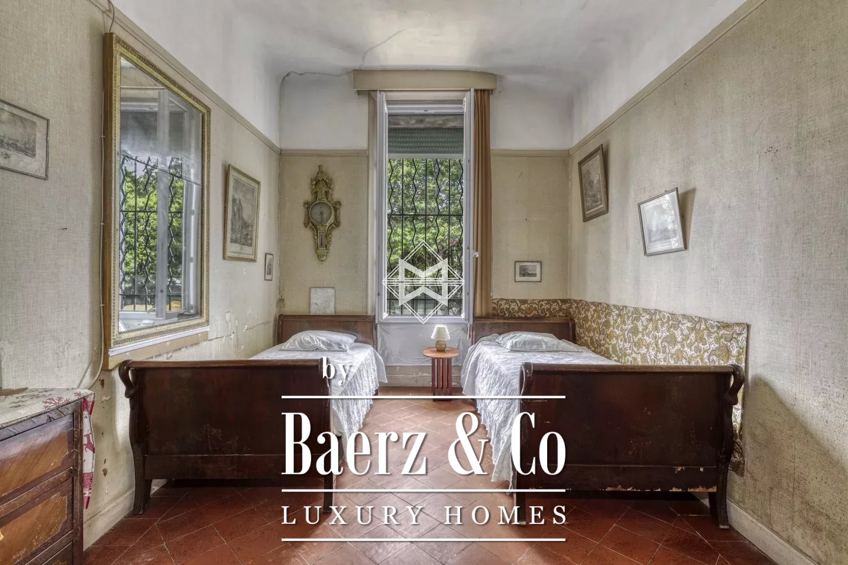 Inside, the noble floor is defined by lofty ceilings and a bow-windowed living room oriented toward the sea, admitting nuanced light and offering deep views across the park. Three bedrooms, each with en suite bathrooms, provide intimate retreats. An independent kitchen on this level allows for experiential dining or private chef occasions with ease.