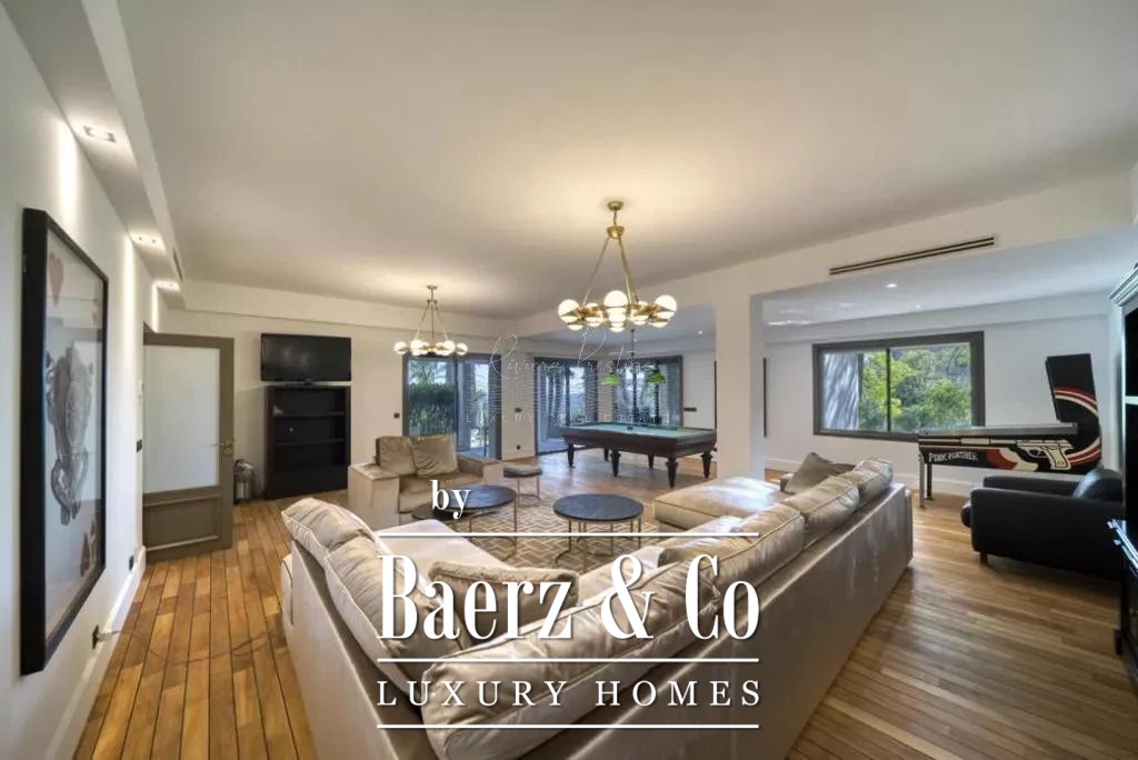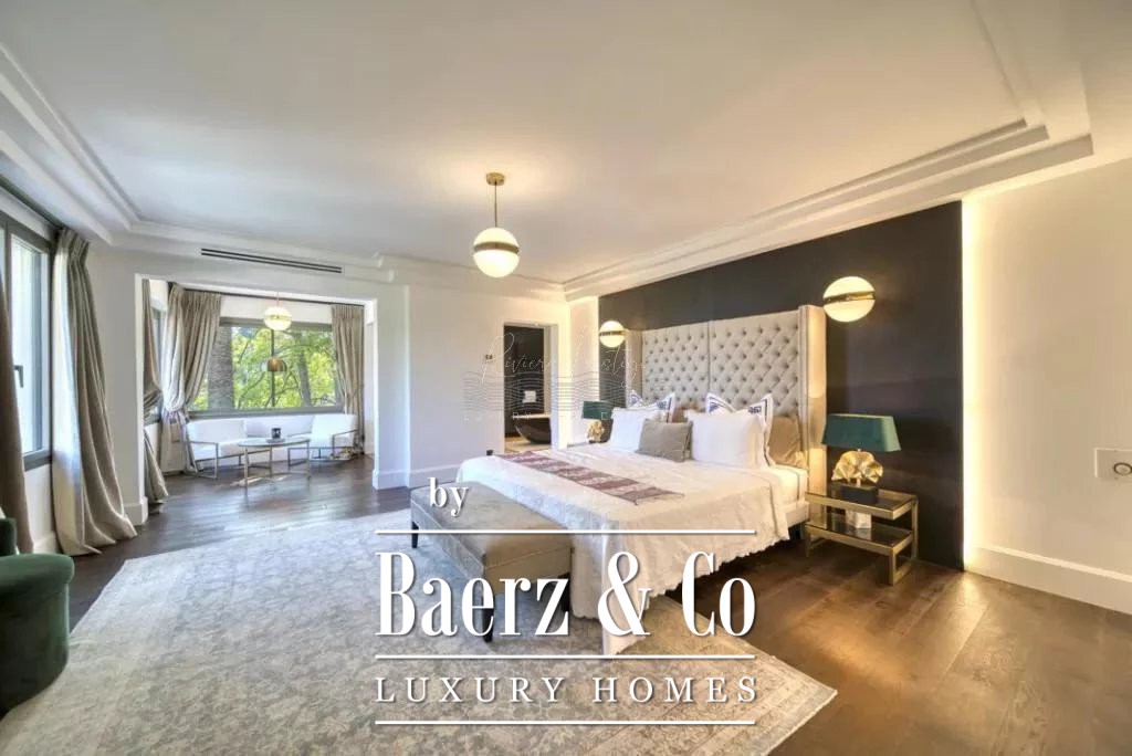On a prestigious road to Saint Paul de Vence, access to the village on foot, majestic villa of 915m2, completely restored, including an entrance, an office, 6 en-suite bedrooms including 2 masters, a huge reception area including a living room with fireplace, a reception room, an open professional kitchen, utility room, large pantry and large storage room, a dining room and library area in the winter garden, a lounge bar (safe room) hidden behind a swivel bookcase with shower room, 3 guest toilets, a large games room, a cinema room, a wine