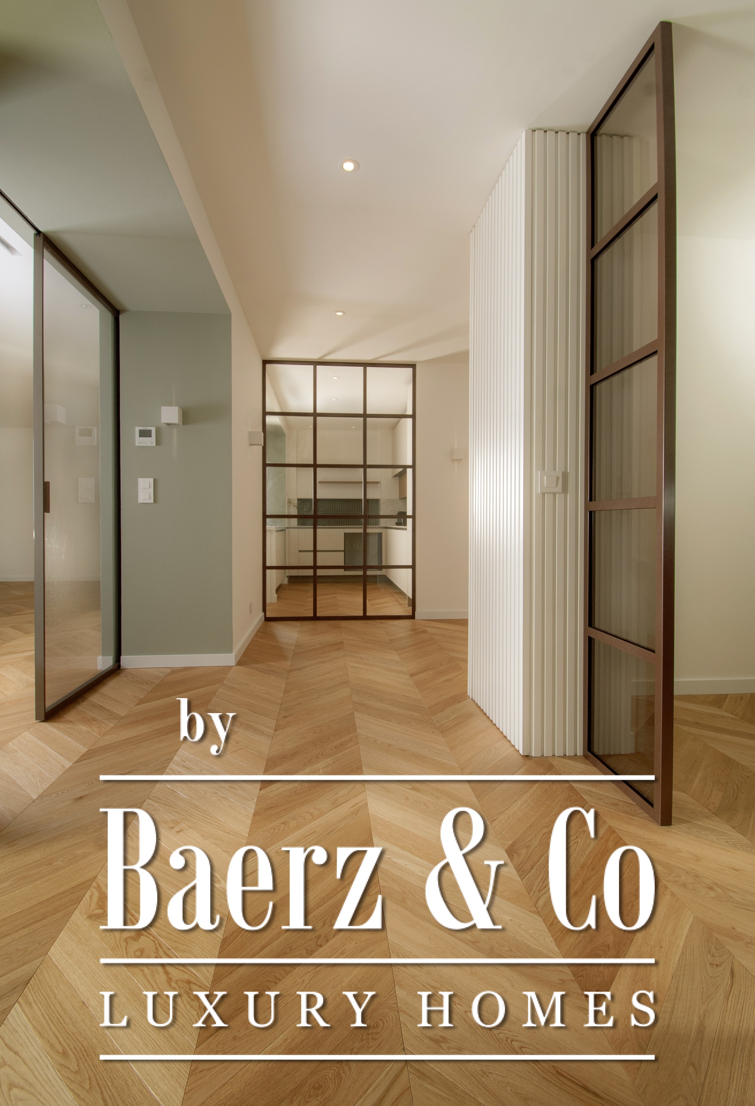 A spacious 48 m² living area with exquisite point de Hongrie parquet flooring