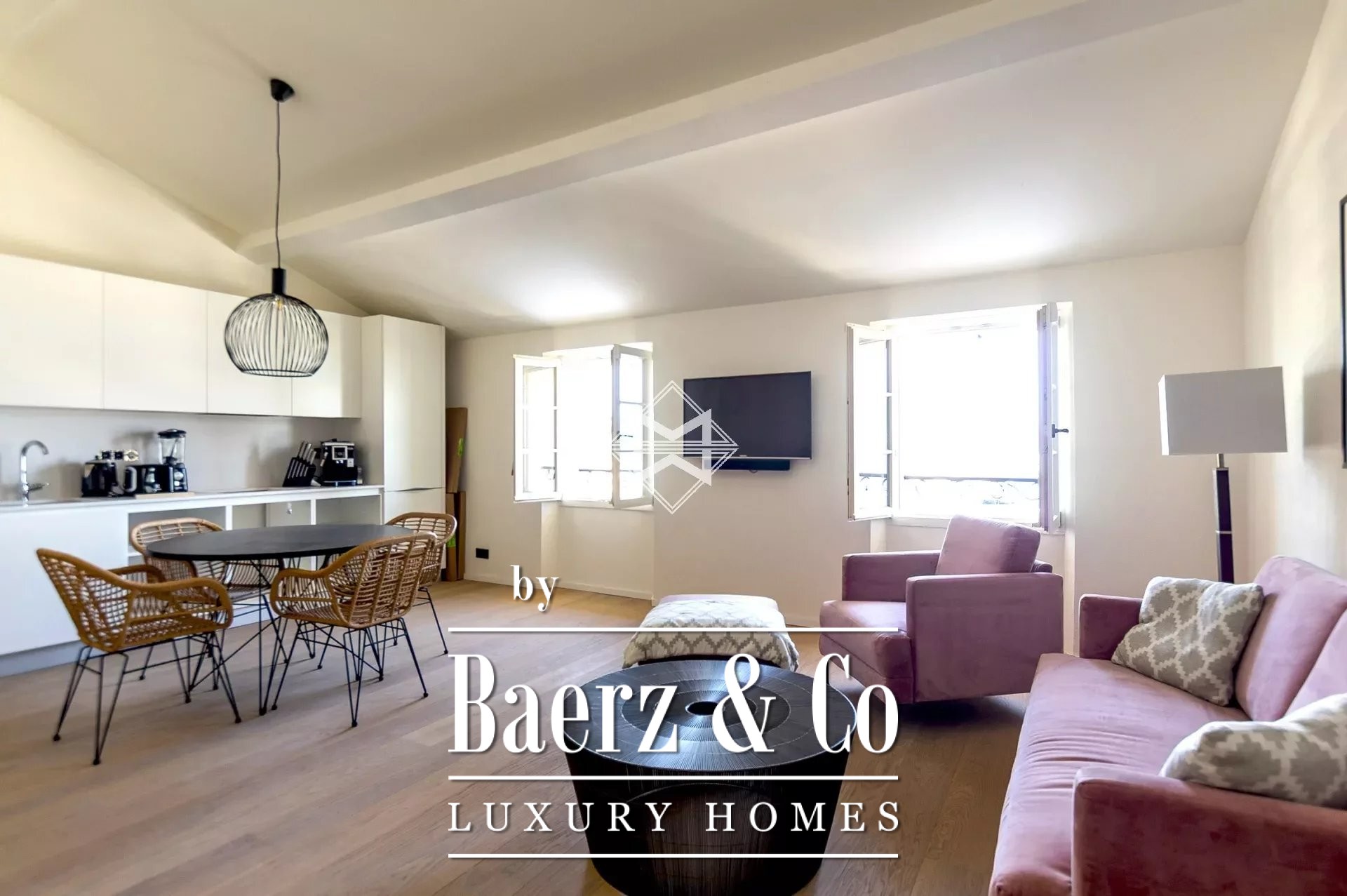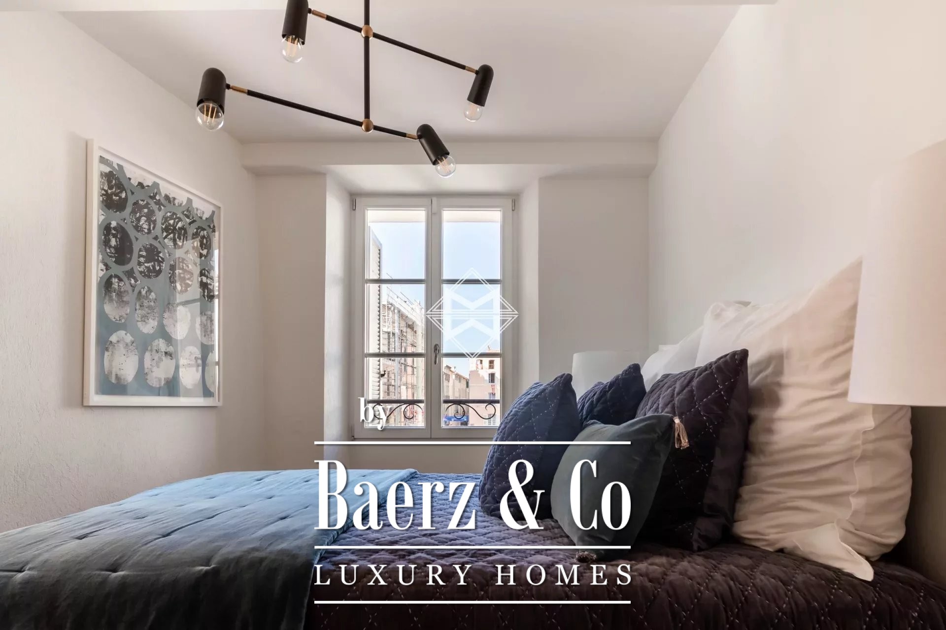 Above, three upper floors reveal a sequence of refined apartments, each composed of a light-filled living room and fully equipped kitchen that frame views across the animated port. Two bedrooms in each residence look over the town square, creating a vivid connection to the rhythm of daily life. Each floor includes a full bathroom, while the top apartment introduces a mezzanine bedroom, adding an extra dimension to the living experience.