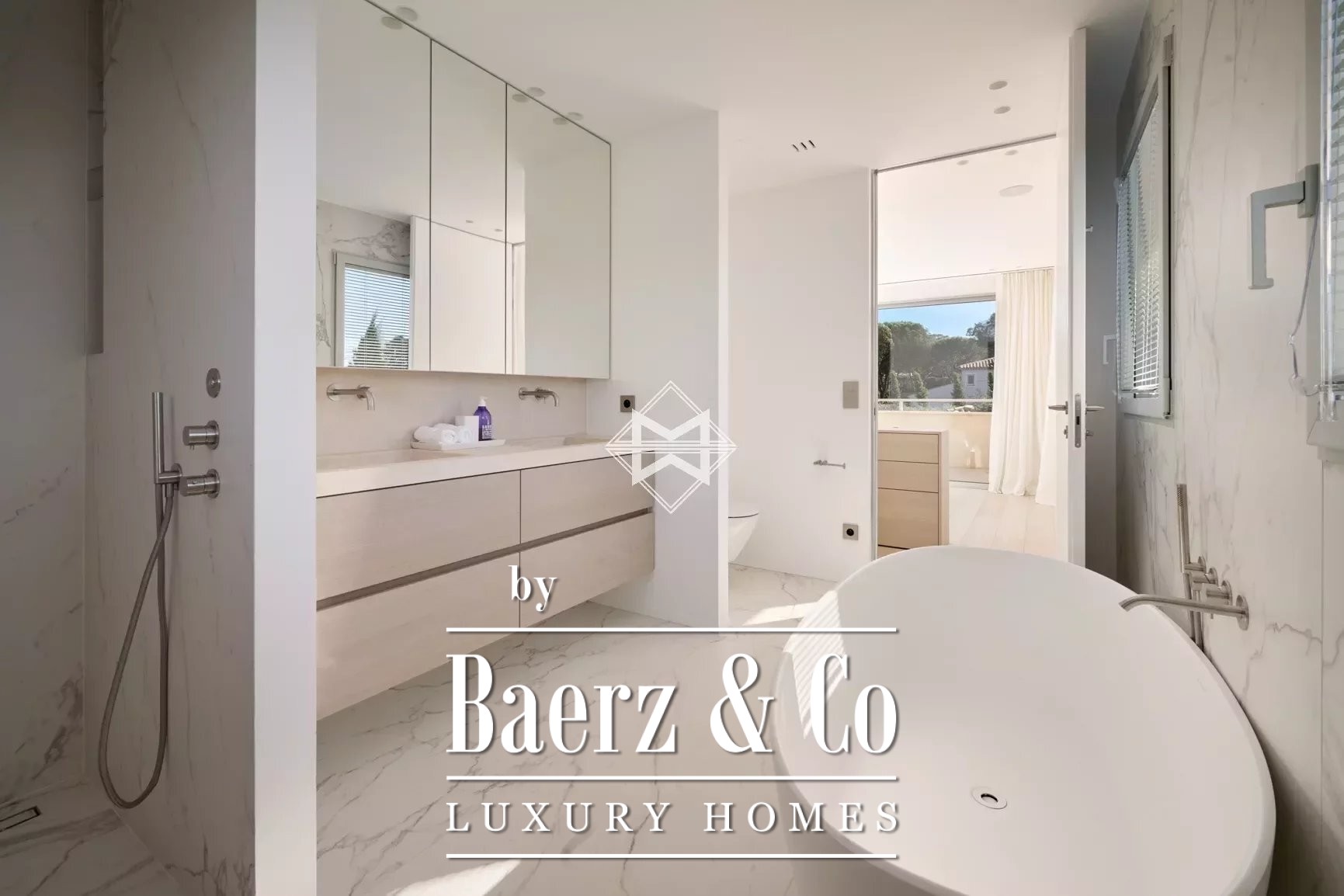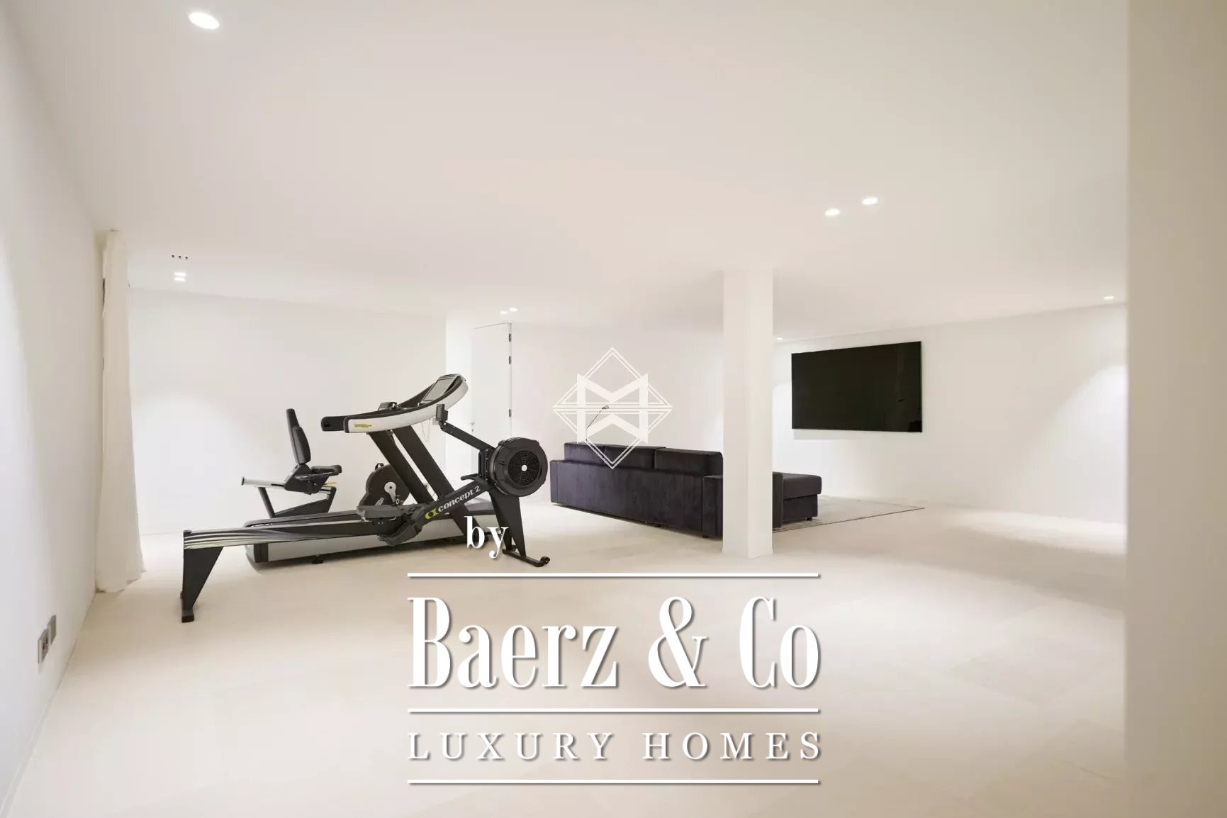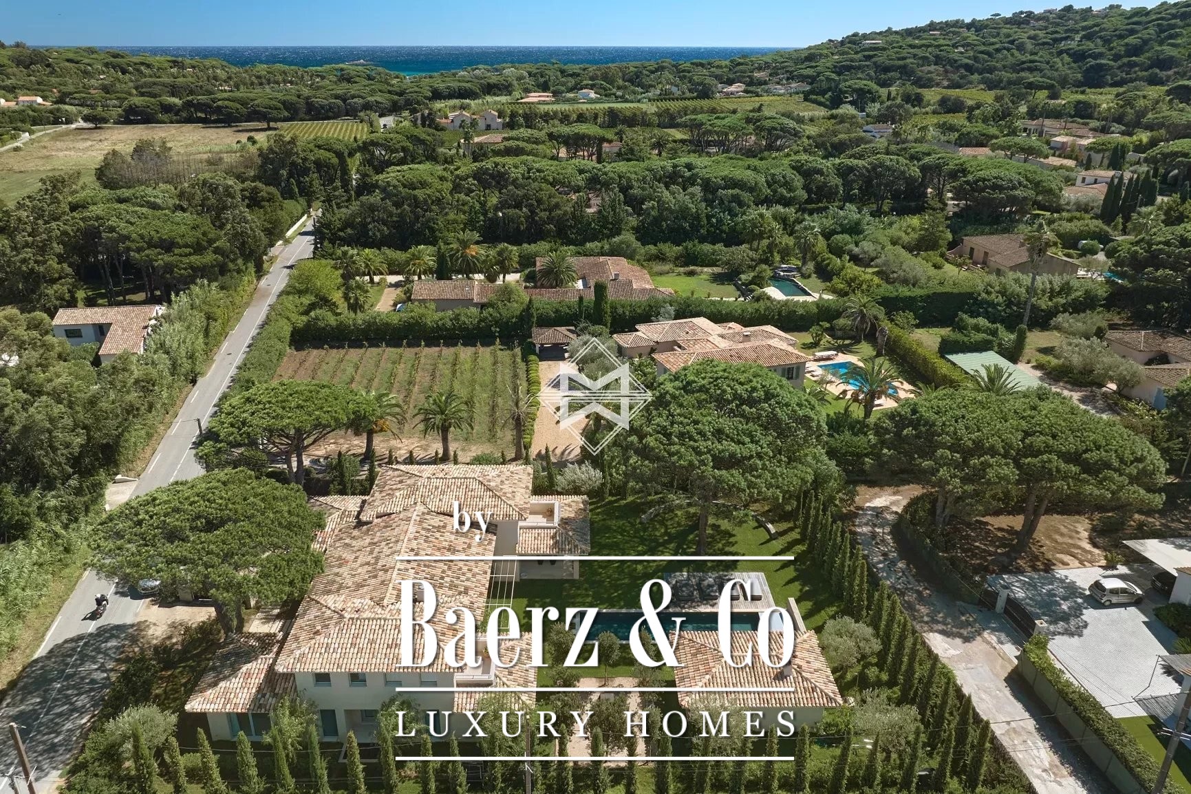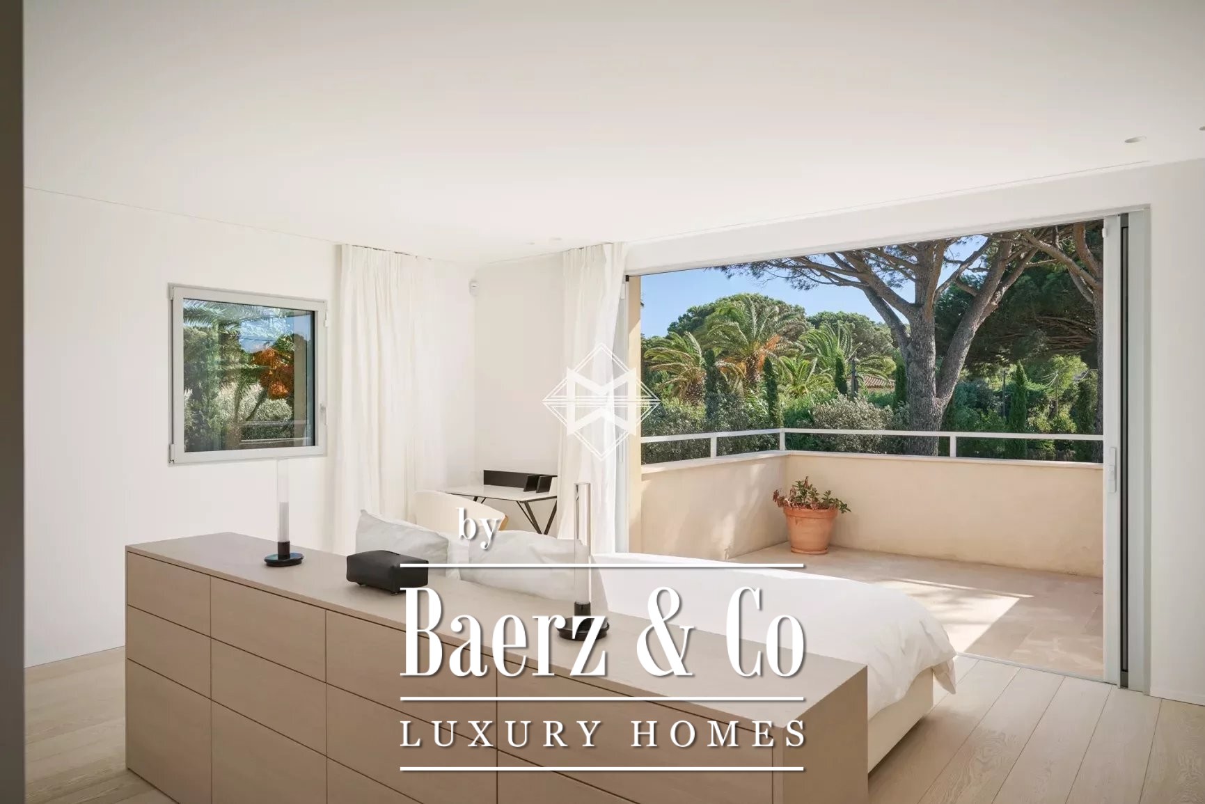 In the lower level, a games room, gym, spa, sauna, hammam, massage room, and wine cellar bring a sense of wellbeing and conviviality. Outdoors, landscaped grounds combine a heated swimming pool, pool house, and barbecue with a bowling green, inviting extended gatherings and quiet repose. The property is fitted with refined amenities including home automation, air-conditioning, double glazing, security, and optical fiber connectivity. For those seeking a villa for sale in Saint-Tropez—where light, space, and proximity to the Riviera’s finest beaches converge—this address offers a discreet and contemporary haven.