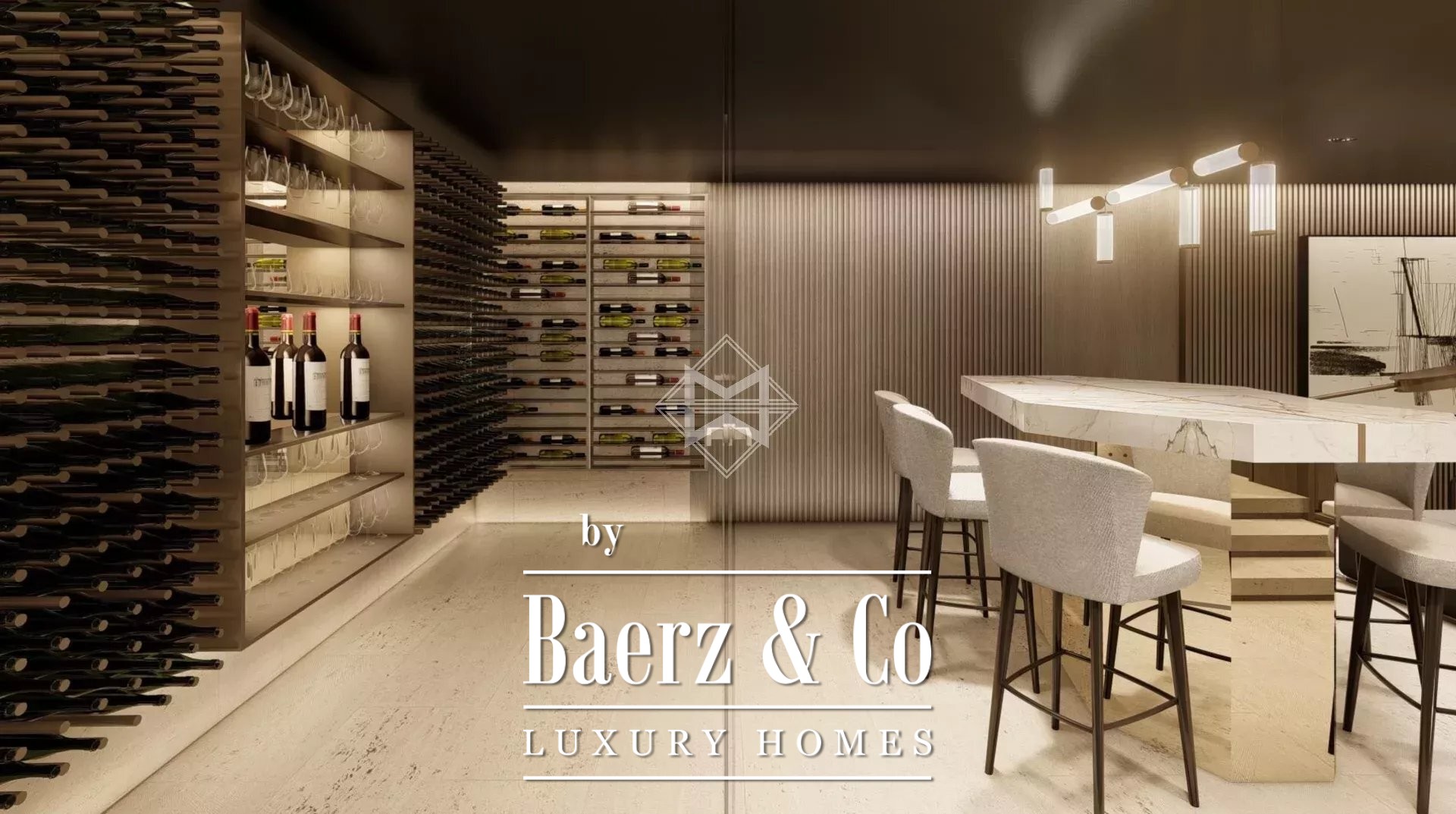 Upstairs, the master suite opens to sea views and features a walk-in closet, bathroom, gym and spa. The basement is dedicated to leisure and wellbeing, comprising a cinema room, wine bar and dance floor, wellness area with sauna, hammam, cold plunge, massage room, and a large laundry space.