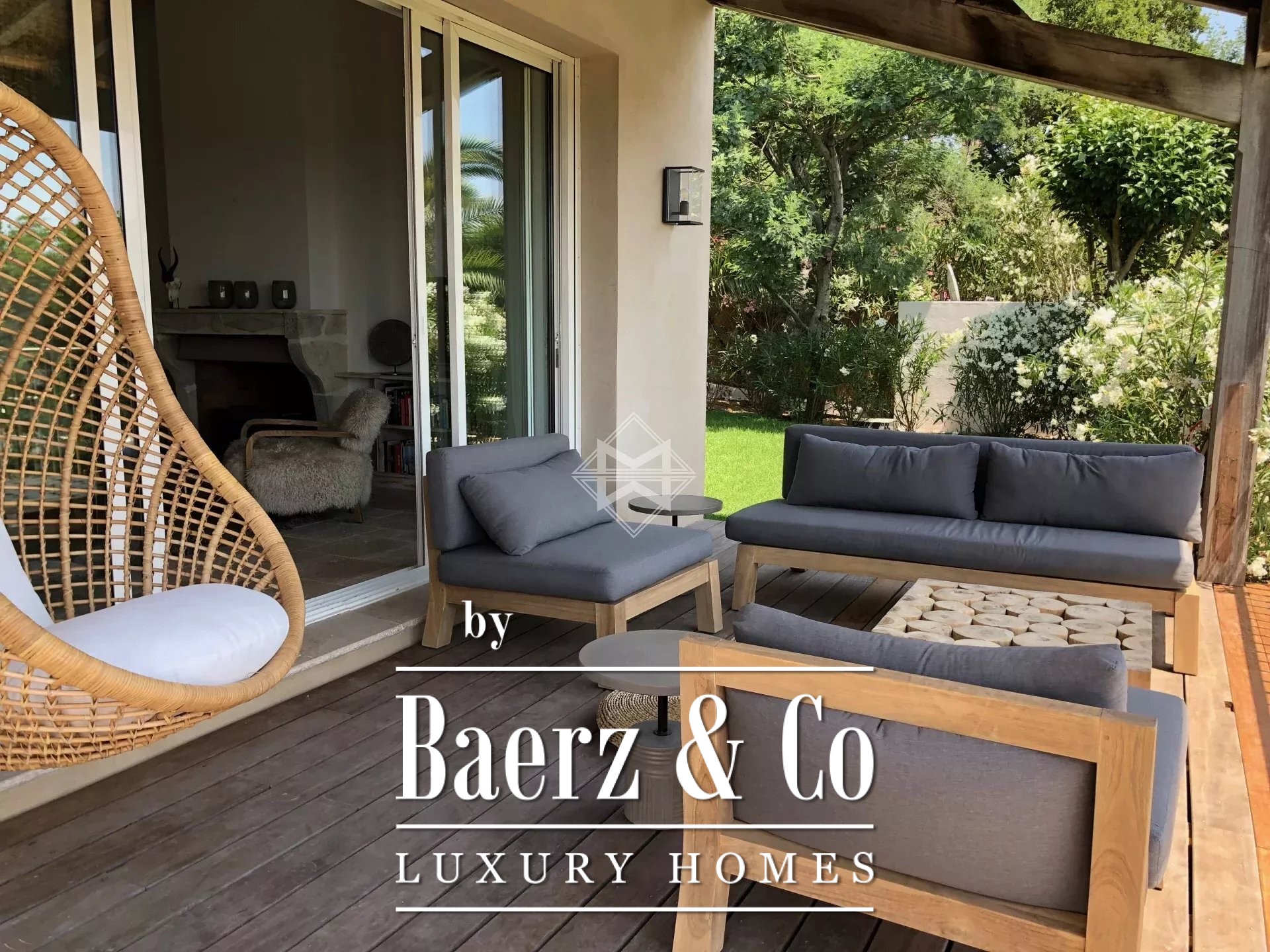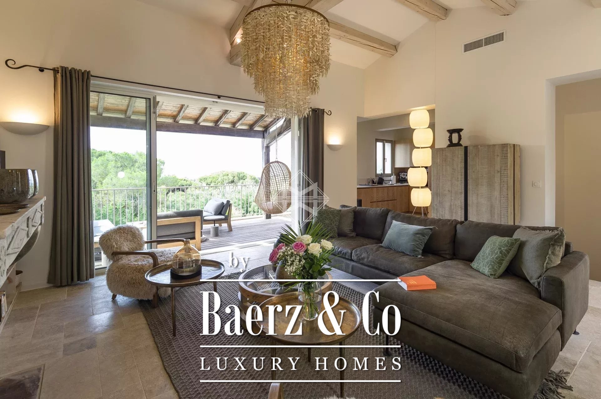 Recently renovated, this stunning 160 m² villa with 5 bedrooms is the perfect place to relax. Surrounded by lush greenery, the property offers an exclusive and intimate atmosphere, where charm and tranquility blend harmoniously. Its ideal location between the village and the beaches offers a spectacular 270-degree panoramic view of the surrounding hills and the Château de la Messardière. The villa boasts a charming garden and a heated pool, completely secluded from view, ensuring total privacy.