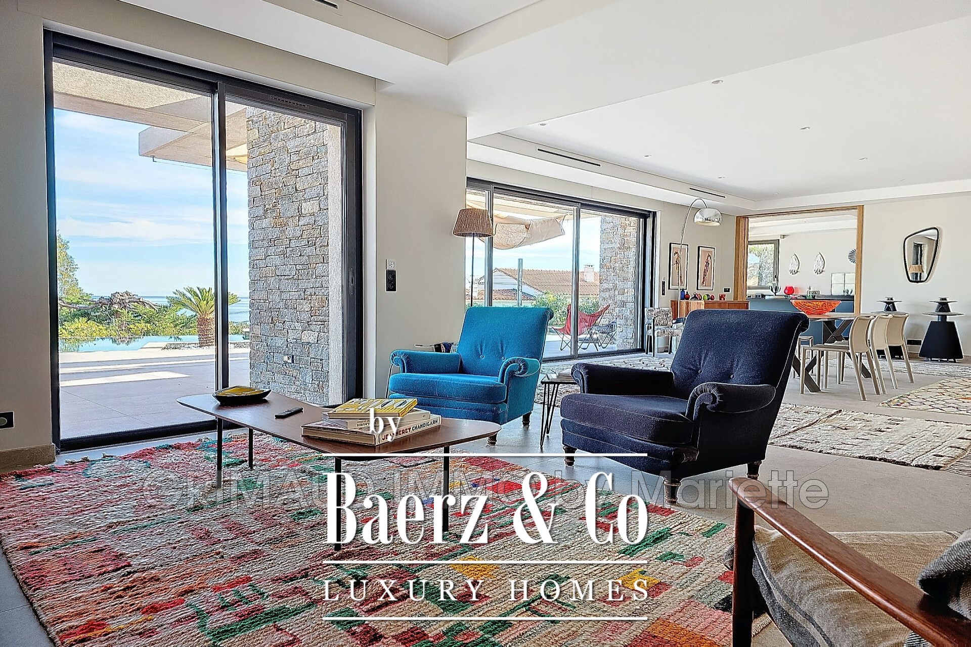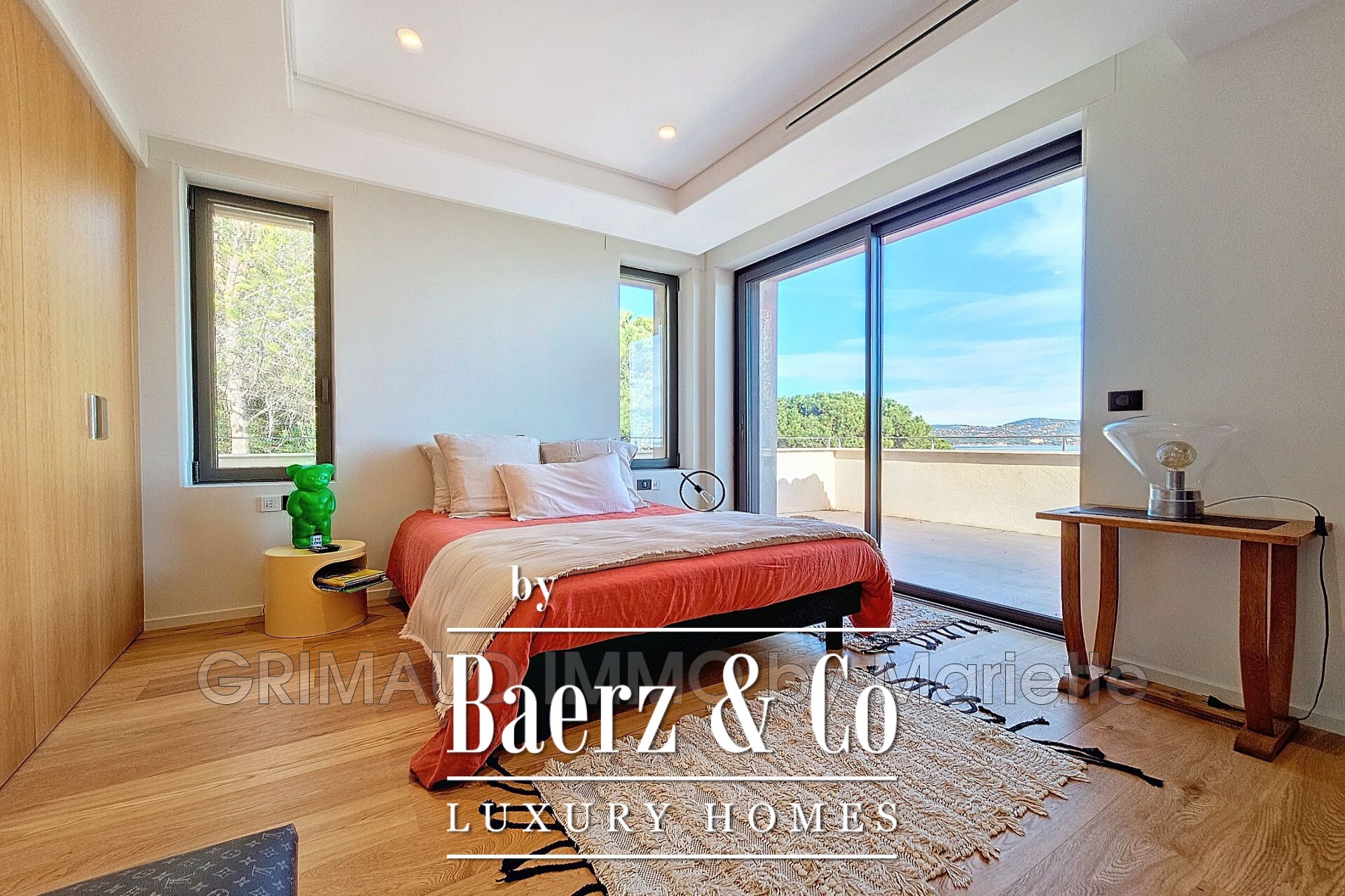 Modern villa Sainte-Maxime defines the quiet sophistication of Côte d’Azur living. This 2022-built residence, spanning 280 m² across two levels, commands sweeping east-facing sea views and welcomes light at every turn. The living spaces unfold with purpose, anchored by a fully equipped kitchen and tranquil outlooks from four terraces. Five bedrooms, one bathroom, four showers, and five toilets are integrated with clarity, while ground floor bedrooms enhance accessibility.