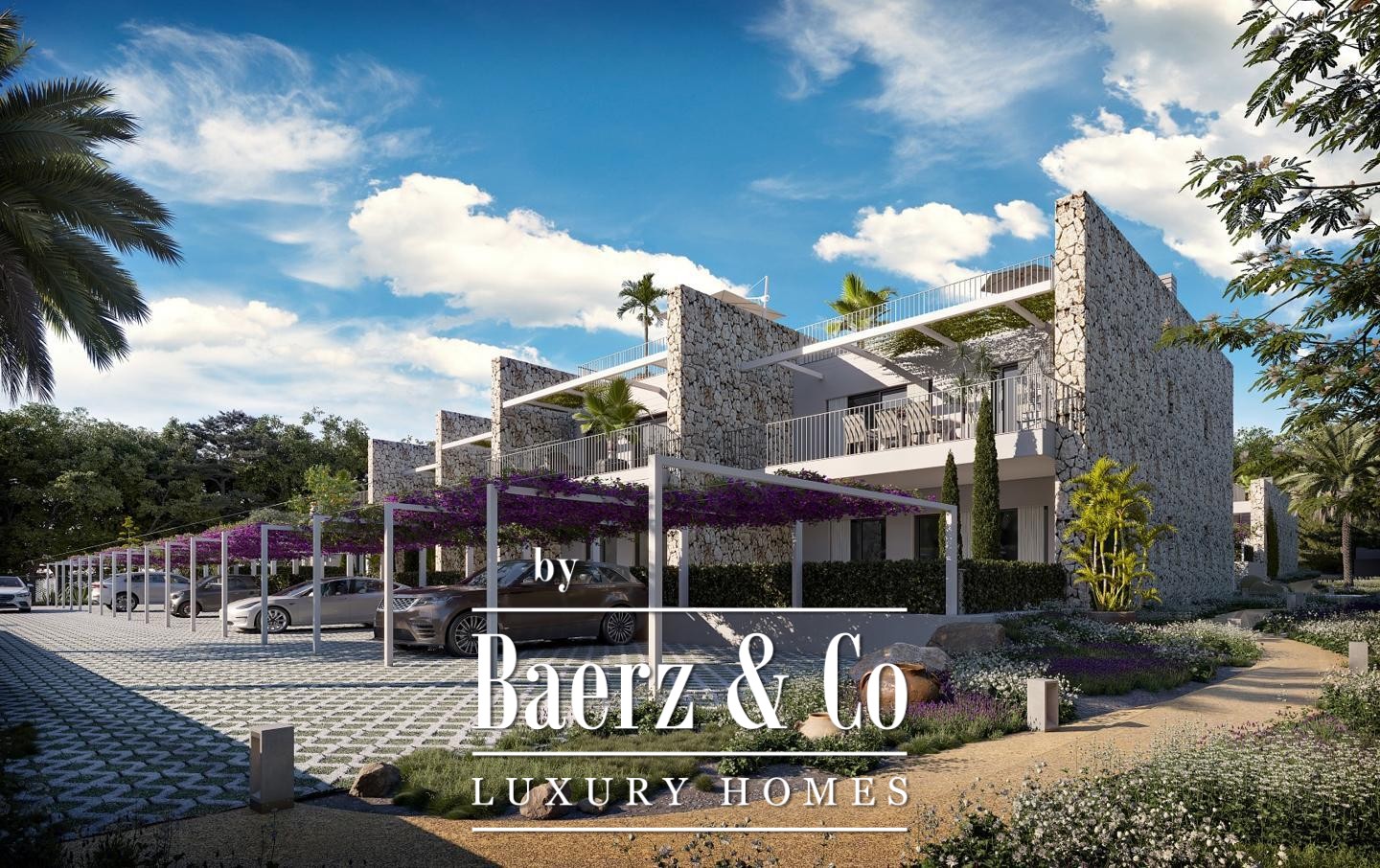 All properties, facing southeast, are distributed between ground floors, penthouses and terraced houses, with layouts of three double bedrooms and two full bathrooms.