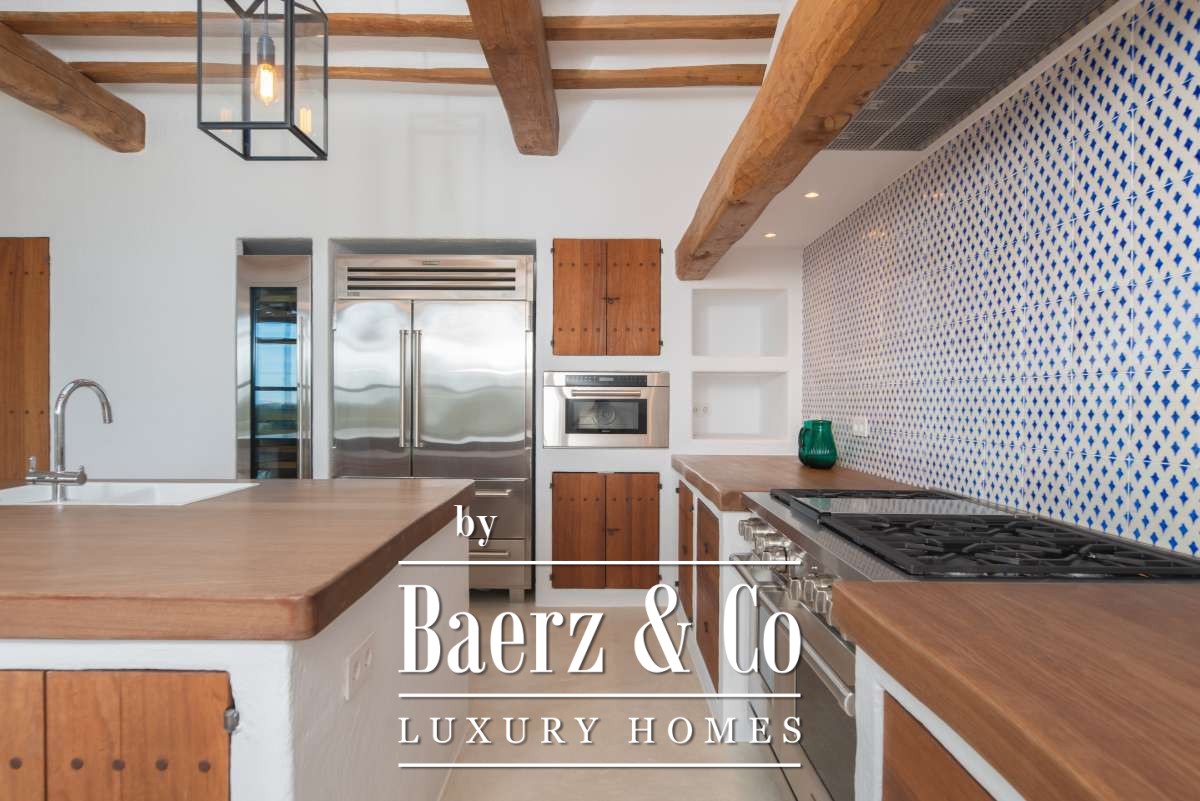 This farmhouse Sant Llorenç de Balàfia resides at the island’s highest valley point, where rolling agricultural land meets forest and mountain views. The property’s terraces open onto a tapestry of olive groves and fruit trees, with vistas extending to the church tower of Balafí and historic walls in the far distance. On the opposite side, the springs of San Rafael bring freshness to the landscape, softening the horizon. Quiet and privacy envelope this 24,215 m² estate, though Eivissa and Santa Gertrudis remain easily within reach.
