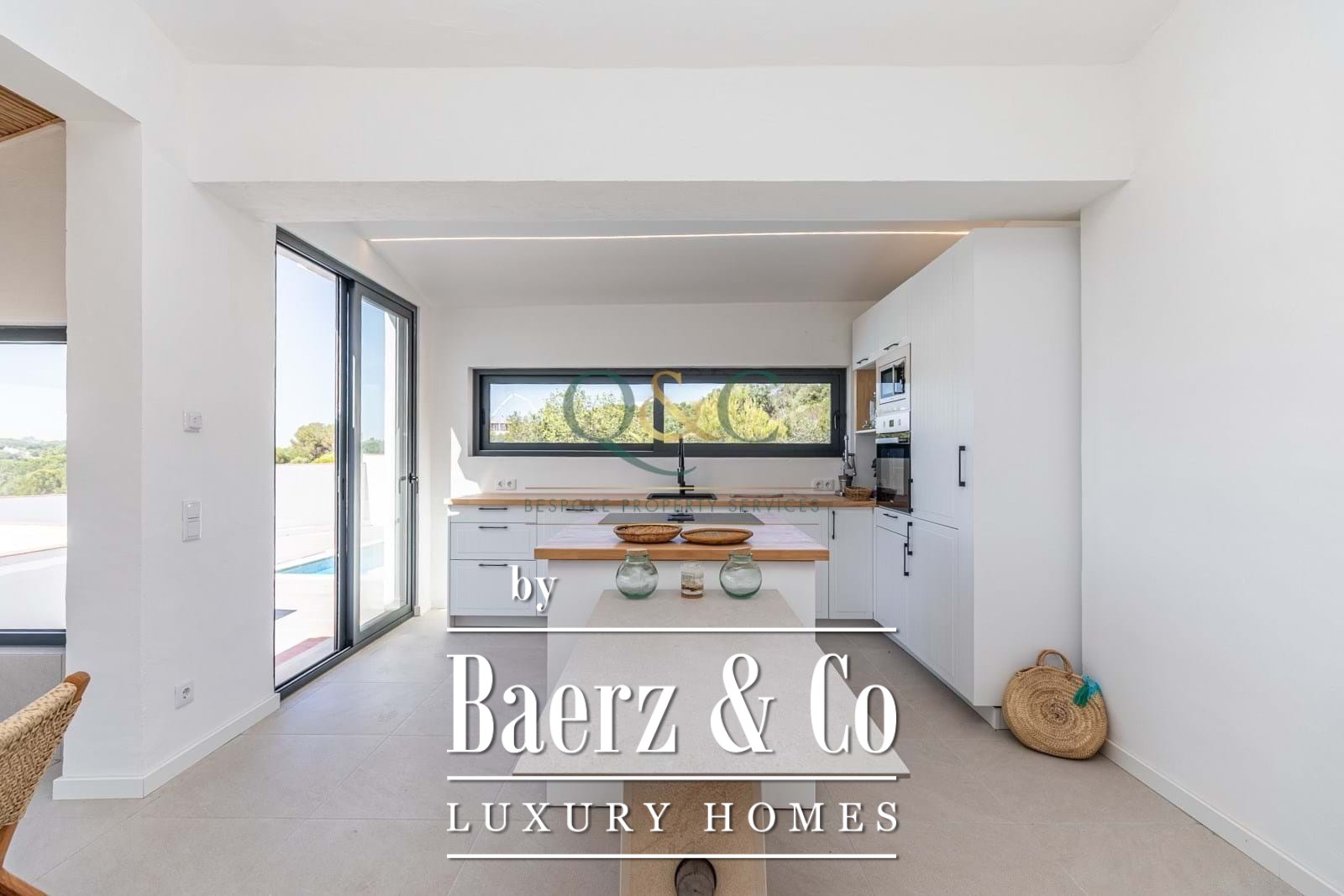 The house is bright and spacious, with a pleasant and large living room that has been designed with the possibility of being divided to create an additional bedroom (4th). Fully furnished and equipped open-plan kitchen with access to the terrace and swimming pool. There is a guest bathroom, a master bedroom with wardrobes and an en-suite bathroom, plus 2 further bedrooms, one of which has access to the terrace, and a bathroom with a shared shower between both bedrooms.